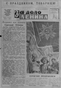 Ут'.У. С ПРАЗДНИКОМ, ТОВАРИЩИ! ОРГАН СЕВЕРНОГО РА Й К О М А КПСС И РАЙОННОГО СОВЕТА Н А Р О Д НЫ Х Д Е П У Т А Т О В НО ВОСИБИРСКОЙ ОБЛАСТИ Выходит по в т ор н ика м , че тверга м и субботам. Пролетарии всех с т р а н , сое ди н яй т е с ь ! « Я Г а з е т а основана 20 июля 1935 года № 56 (5 3 4 0 ) С У Б Б О Т А 8 М А Я 1 9 8 2 года Цена 2 коп» 0 П о д в и г в о с л а в у Советской Отчизны Д е н ь Победы — э т о п р а з д н и к в сен ар о д ны й . «Н е т в нашей огромной ст р а н е ни одного у г о л к а , нет советской з ем ли . — говорил тов. Л . И. Б р е ж н е в , — где э т о т п р а з д н и к не о тм е чал с я бы с глубоким д уш ев ны м волнением , с чувством с в я т о й печали и в еликой патриотичес кой гордости . Д а , э т о т пропахший порохом п р а з д н и к для всех н ас, к а к п о ется в песне, — р а д о с т ь со с л е з а м и на г л а з а х » . Советский н ар о д , воины В о о р у ж ен н ы х Сил в стр еч аю т 37-ю годовщину р а з г р о м а ф а ш и з м а в о б с т а н о в к е высокого политического и т р у д о в о г о п о д ъ е м а , в ы з в ан н о г о п одготовкой к з н а м е н а т ельн ом у юбилею — 60 -летию о б р а з о в а н и я СССР. 22 июня 1941 г о д а ф аш и с т с к а я а рм ия в ероломно н а п а л а на н ашу Родину. Упоенные с воими успехами в Европе, гитлеровцы ■■Vчитали, что они т а к ж е л егко о с у щ е с т в я т свои аг рессивны е планы и в отношении Советского Союза. О д н ак о враги просчитались. На з ащ и т у сво его О т е чес тв а в первые ж е дни войны п о д н я л с я весь сов етский н ар о д . В невиданно к о р о т к о е время с т р а н а п р е в р а т и л а с ь в единый боевой л а г е р ь , охваченный единым порывом, — р а з б и т ь в р а г а , и з г н а т ь его с родной земли . В борьбе против ф аш и з м а мы были не одиноки. Мы помним н аших б есс тр аш ны х с о р а т н и к о в — п а р т и з а н , героев Сопр о ти вл ения во многих с т р а н а х , о к к у п и р о в ан ны х ги т ле р о вц а м и . Мы п о м ним с о л д а т наших сою зников по ан ти гитл е р о в с к о й коа лиции . Но мы не мож ем з а б ы т ь и т о г о очевидн ого ф а к т а , что г л а в н а я т я ж е с т ь в войне п а л а на д о лю с о в е т с к о г о ч е л о в е к а . И э то т ф а к т никому не д а н о ни о п р о в е р г н у т ь , ни з а м о л ч а т ь . В еличайшая з а с л у г а с о в е т с к о г о н а р о д а и его арм ии перед чел овечеством со с т о и т в том , что они своей с а м о о т в е р ж е н н о й борьбой сорв али з а м ы с л ы п ре т ен д ен т о в н а м и р о во е госп одство, остановили мутную волну ф аш и с т с к о г о наш е с тв ия . не дали ей Г . ' -п р о с т р ан и т ь с я на д ругие с т р а ны и конти ненты . Это была ч резвычайно т р у д н а я з а д а ч а , п о т р е б о в а в ш а я о громн ого м у ж е с т в а , стойкости и ж е р т в . Д в а д ц а т ь миллионов св оих сы нов и дочерей п о т е р я л а в минувш ей войне С о в е т с к а я Р о д и н а - м а т ь . Наш н арод н и к о г д а не з а б у д е т п о дв и г а героев Брес тской к|)епост„ч, м у ж е с т в е н н ы х з а щ и т н и к о в Л е н и н г р а д а и Одессы, К и е в а и С ев а с то п о л я , Мал ой з ем ли . Р а з г р о м ф аш и с т с к и х з а х в а т ч и к о в под Москвой р а з в е я л миф о непобедимости г и т л е р о в с кой армии. Это было первое крупное п о р аж е н и е в р а г а . О громное военно - с т р а т е г и ч е с к о е зн ач ен ие и м е л а п о бе да н аших войск под С та л и н г р а д о м . Она п о л о ж и л а н а ч а л о коренному п е р е л о м у в хо д е Великой О течественной и в торой мировой войны в целом. О с ущ ес твлен ны е в п оследующ ем см елые и реш ите льны е н а с т у п а т е л ь н ы е о перации под Л е н и н г р а д о м , на П р а в 