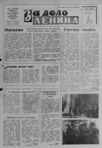 ОРГАН С Е В Е Р Н О ГО РАЙКОМА КПСС И РАЙОННОГО С О В Е Т А НАРОДНЫХ Д Е П У Т А Т О В НОВОСИБИРСКОЙ ОБЛАСТИ Вы ходи т по вторникам, четвергам и субботам. 1 Пролетарии всех стран, соединяйтесь! Д С У 1 V М WW Г аз е та основана 20 июля 1935 года \№ 57 (5341 ) С Р Е Д А 12 МАЯ 1 9 8 2 года Цена 2 коп. О б р а щ е н и е жив отнов одов к о л х о з а им. М. Горького ко всем работникам ф ерм района Светлая память Т р у ж е н и к и к о л х о з а и м е н и М Г о р ь к о г о , п р е т в о р я я в ж и з н ь р е ш е н и я X X V I с ъ е з д а К П С С , з а б о т я с ь о д а л ь н е й ш е м р а з в и т и и с е л ь с к о х о з я й с т в е н н о г о п р о и з в о д с т в а , на о с н о в е в о з р а с т а ю щ е й м а т е р и а л ь н о - т е х н и ч е с к о й о с н а щ е н н о с т и д о б и л и с ь о п р е д е л е н н ы х у с п е х о в в р а з в и т и и ж и в о т н о в о д с т в а З а г о д ы д е с я т о й п я т и л е т к и н а д о и на ф у р а ж н у ю к о р о в у у в е л и ч и л и с ь на 173 к и л о г р а м м а . П е р в ы й г о д о д и н н а д ц а т о й п я т и л е т к и т а к ж е з а в е р ш е н у с п е ш н о . В х о з я й с т в е в ы р о с л и н а с т о я щ и е м а с т е р а с в о е г о д е л а . Э т о — д о я р к и А . И . З о л о т у х и н а , В. А В и н о г р а д о в а , И. Л М и х а й л о в а , с к о т н и к д о й н о г о г у р т а В Н. Н и к о л а е в и д р у г и е Г о т о в я с ь д о с т о й н о в с т р е т и т ь 6 0 - л е т и е о б р а з о в а н и я С С С Р , м ы о б я з у е м с я п л а н п р о д а ж и г о с у д а р с т в у м о л о к а з а в т о р о й к в а р т а л и п о л у г о д и е в ц е л о м в ы п о л н и т ь к 20 и ю н я 19 82 г о д а , к д н ю в ы б о р о в в м е с т н ы е С о в е т ы н а р о д н ы х д е п у т а т о в . П о л у ч и т ь з а п о л у г о д и е по 11 95 к и л о г р а м м о в м о л о к а на ф у р а ж н у ю к о р о в у Н е м е н е е 9 0 п р о ц е н т о в м о л о к а с д а т ь п е р в ы м с о р т о м В к о л х о з е и м е ю т с я в с е в о з м о ж н о с т и д л я п о л у ч е н и я н а и в ы с ш и х п о к а з а т е л е й в п р о и з в о д с т в е п р о д у к ц и и ж и в о т н о в о д с т в а . Д о б р о с о в е с т н о е о т н о ш е н и е к с в о и м о б я з а н н о с т я м , р а ц и о н а л ь н о е и с п о л ь з о в а н и е к а ж д о г о к и л о г р а м м а к о р м о в — э т о з а л о г у с п е ш н о г о з а в е р ш е н и я з и м о в к и б е з п о т е р и п р о д у к т и в н о с т и Мы о б р а щ а е м с я к о в с е м р а б о т н и к а м ж и в о т н о в о д с т в а р а й о н а о з н а м е н о в а т ь п р а з д н и к д е м о к р а т и и — д е н ь в ы б о р о в в м е с т н ы е С о в е т ы — в ы п о л н е н и е м п о л у г о д о в ы х п л а н о в и с о ц и а л и с т и ч е с к и х о б я з а т е л ь с т в по п р о д а ж е г о с у д а р с т в у ж и в о т н о в о д ч е с к о й п р о д у к ц и и . Мы у в е р е н ы , ч т о р а б о т н и к и ф е р м р а й о н а п о д д е р ж а т н аш п р и з ы в , п р и л о ж а т с в о и з н а н и я и о п ы т , п р и в е д у т в д е й с т в и е н е и с п о л ь з о в а н н ы е р е з е р в ы д л я д о с р о ч н о г о в ы п о л н е н и я н а м е ч е н н ы х р е ш е н и й . Т о в а р и щ и ж и в о т н о в о д ы ! В ы ш е з н а м я с о ц и а л и с т и ч е с к о г о с о р е в н о в а н и я ! В т о р о м у г о д у п я т и л е т к и — у д а р н ы й т р у д , д н ю в ы б о р о в — д о с т о й н у ю в с т р е ч у ! О б ращ ени е обсуждено и принято на с о б р а нии коллективов животноводческих ферм . ^ А Г Р О Н О М Ы Д Е Р Ж А Т СОВЕТ 3 м а я с о с т о я л о с ь с о в е щ а н и е пр и р а й к о м е К П С С , на к о т о р о м п р и с у т с т в о в а л и ч л е ны р а й к о м а п а р т и и , п р е д с е д а т е л и , г л а в н ы е с п е ц и а л и с т ы , с е к р е т а р и п а р т и й н ы х о р г а н и з а ц и й к о л х о з о в , р у к о в о д и т е л и и п а р т о р г и п р е д п р и я т и й , о б с л у ж и в а ю щ и х с е л ь с к о е х о з я й с т в о О б с у ж д а л с я