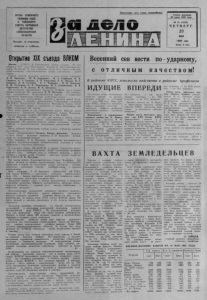 *>г*г1-..<-уаь.у rr;i т.д. ОРГАН СЕВЕРНОГО РАЙНОМА КПСС И РАЙОННОГО СОВЕТА НАРОДНЫХ Д Е П У Т А Т О В НОВОСИБИРСКОЙ ОБЛАСТИ Выходит по вторникам, четвергам и субботам. Пролетарии всех стран, соединяйтесь! ц х к и / ш т Газета основана 20 июля 1935 года № 61 (5 3 4 5 ) Ч Е Т В Е Р Г 20 МАЯ 1 9 8 2 года Цена 2 коп. Открытие XIX съезда ВЛКСМ ,Москва. (ТАСС). В Кремлев ск ом Д во р ц е съ е з д о в 18 мая откры лся XIX с ъ е з д Всесоюзного Ленинского Коммунистического Союза М олодежи . В з а л е со брались около пяти тысяч делегатов , представляющ их многомиллионную армию комсомолии нашей страны. Бурной овацией встретили де л е г а ты и гости с ъ е з д а товарищей Л. И. Б р е ж н е в а , Ю. В. Андропова, М. С. Горбачева . В. В. Гришина, А. А. Громыко, А. П. Кириленко, А. Я. Пельше. Н. А. Тихонова, Д . Ф. Устинова, К. У. Черненко , П. Н. Д емичева , В. В. Кузнецова, Б. Н. Пономарева, М. С. Соломенцева, И. В. Капитонова, В. И. Долгих , М. В. Зимянина . По поручению Ц ентр а льн о го Комитета ВЛКСМ съ е зд открыл первый с е к р е т а р ь Ц К комсомола Б. Н. Пастухов. Он сообщил, что руководители Коммунистической партии и Советского го су д ар с тв а единодушно избраны д е л ег атам и съ езд а . От имени всех комсомольцев, юношей и д евуш ек нашей Р о д и ны он горячо и сердечно прив етствовал Генерального с е к р ета р я Ц К КПСС, П р е д с е д а т е л я П ре зид и ум а Верховного Совета СССР Л. И. Б р е ж н е в а , членов и к а н д и д а т о в в члены Политбюро ЦК КПСС, секретарей ЦК партии. . Под звуки ма рша в з а л торж е с т в ен н о вносят Красное зн ам я Всесоюзного Л енинс кого Коммунистического Союза Молодежи , п амятны е К васные зн ам ена ЦК Р К П (б) и ЦК КПСС. Ь. Н. Па стухов сообщил, что д л я участия в работе съ е зд а прибыли представители шести м еж д у на р о дны х молодежных о рганизаций , 140 коммунистических союзов молодежи, д е м о к р а тических и социалистических м олодежны х о р г ан и з ац ий из 110 стран. Пыли избраны р у к о в о д ящ и е органы съ е зд а , у т в е р ж д ен п орядок его работы . Слово п р ед о став л я е тся Л еониду Ильичу Бр еж не ву . Д ел ег аты и гости с ъ е з д а встречают то в а р и щ а Л. И. Б р е ж н е в а бурной, д олго нс смолкающей овацией. Речь то в а р ищ а Л. И. Б р е ж н е в а , н еоднок ратн о п рерывавшуюся бурными, п родолжительными ап лодисментами , д елегаты и гости выслушали с огромным вниманием. С д о к л а д о м «Отчет Ц К ВЛКСМ и з а д а ч и Ленинского к ом с о мола по формированию поколения людей политически активных, знающих дело, любящих тр у д и умеющих р а б о т а т ь , всегда готовых к защ ите своей Родины» выступил первый с е к р е т а р ь ЦК ВЛКСМ Б. Н. Пастухов. Вся жи зн ь нашего Коммунистического Союза Молодежи , его с л а в н а я пЪтория от первых революционных боев до се годняш них свершений в борьбе з а коммунизм , с к а з а л д о к л а д чи к , озарены ленинским вниманием партии, требов ательным и мудрым р у ковод ством . Речь т о в ар ищ а Л. Й. Б р е ж н е в а , приветегвие ЦК КПСС XIX съ е з д у В Л К С М - — документы огромной мобилизующей силы. Это — боев ая п рограмма д еяте льности ленинского к ом с о м о л а , отеческое нап утствие мо л о д ежи 80-х. Д о к л а д ч и к говорил д а л е е о в к л а д е комсомольцев и мо л о д ежи в ра зв и т и е экономики. ' Шири тся патриотическое д виж ени е «Один надцатой п ятилетке — ударный т руд , зн ан ия , инициативу и творчество молодых!». Пос л' едователцно о с у щ е с т в л я я ленинскую а г р а р н у ю политику» п р о д о л ж а л Б. И. П
