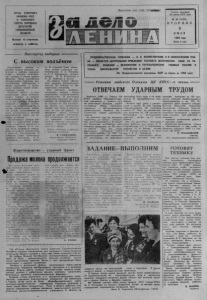 ОРГАН СЕВЕРНОГО РАЙКОМА КПСС И РАЙОННОГО СОВЕТА НАРОДНЫХ ДЕПУТАТОВ НОВОСИБИРСКОЙ ОБЛАСТИ В ы х о д и т по в то рн и к ам , четве рга м и субботам. Пр о л е та рии всех с т р а н. ja x s i i U Г а з е т а основана 20 июля 1935 г о д а № 69 ( 5 3 5 3 ) К Т О Р Н И If 8 и ю н я 1 9 8 2 года Ц е н а 2 коп. ---------------------Н авст реч у выборам С высоким ПРОДОВОЛЬСТВЕННАЯ ПРОБЛЕМА — И В ХОЗЯЙСТВЕННОМ, И В ПОЛИТИЧЕСКОМ П Л А НЕ — Я ВЛЯЕТСЯ ЦЕНТРАЛ ЬНОЙ ПРОБЛЕМОЙ Т Е К У Щ Е Г О - ДЕСЯТИЛЕТИЯ. ЗАЛОГ ЕЕ У С ПЕШНО ГО Р Е Ш Е Н И Я — В Ы П О Л Н Е Н И Е И П ЕР ЕВЫ П О Л Н ЕН И Е ГОДОВЫХ ПЛАНОВ И П Л АН А ОДИННАДЦАТОЙ П Я Т И Л Е Т К И В ЦЕЛОМ. ( И з Продовольс твенной про граммы СССР на период до 1 9 9 0 го д а ) . = Решения м а й с к о го Пленума ЦК КПСС—в жизнь = О ТВЕЧА ЕМ УДАРНЫМ ТРУДОМ Предстоящие выборы в местные Советы народных д е пу тато в и выборы народных судей — большое политическое событие в жизни нашего общес тв а. П е р ед партийными о р ганизациями . Советами, идеологическими р аботник ами в период подготовки и п р о в едения выборов встают о т в е т ственные з а д а ч и . Большую р а б о т у в этом нап рав лении ведет исполком нашего Совета . С момента опубликов ания в печати У к аз а о дне выборов проведены со б р ан и я в трудовы х к о л л е к т и в а х , где были выдвинуты в с о с тав избирательных ком иссий лучшие п р едставители из числа колхозников и местной интеллигенции. С р азу ж е о т крыли агитпункт. О р г ан и зо в ан но прошли с о б рания по выдвижению к а н д и д а т о в в депутаты районного и сельского Советов. В их с о с т а в были выдвинуты передо вики колхозн ого производства и сельской интеллигенции. В районный Совет единогласно выдвинут комсомолец В. И. П оздняков — шофер ко л х о - подъемом за. В сельский Совет выдвинуты лучшие работн ики ж и в отновод ств а Т. А. Ч и г ар е ва и Л . А. Е вдоким ова , механи з а то ры Н. В. Коростел ев и В. Н. Бирю ков и другие. По нашему Совету о б р а з о вано д в а д ц а т ь избирательных округов. Н а к а ж д о м из них за к реп лены агитаторы . И д я нав стречу выборам , труж ени ки к о л х о з а брали повышенные социалистические о б я з а т е л ь с т в а . И резуль таты достигнуты неплохие. За пять месяцев на ф у р аж н у ю к о р о ву над оен о по 10,4 ки л о г р ам ма молока , что значительно больше , чем было в прошлом г о д у на э то т ж е период. В настоящ ее врем я суточный надой на ко р о в у составляет 12,7 килограмм а. На днях б у д е т выполнен полугодовой . план по п р о д а ж е государству молока . Досрочно р а с п и т а - емся и с мясом. Н а р о д гото витс я к выборам с высоким подъемом. И. ГЛАМ А ЗД ИН , п ред сед ате ль Остяцкого сельского Совета. М а й с к и й (1 982 г . ) П л е н у м ЦК К П С С о д о б р и л - П р о д о в о л ь с т в е н н у ю п р о г р а м м у и н а м е т и л п у ти е е р е а л и з а ц и и . Б о л ь ш и е з а д а ч и п о с т а в л е н ы п е р е д к о л х о з а м и , с о в х о з а м и и о б с л у ж и в а ю щ и м и о р г а н и з а ц и я м и . К а с а е тс я э т о и к о л л е к т и в а н а ш е й р а й с е л ь х о з - т е х н и к и За п р о ш л ы й г о д м ы д о с р о ч н о с п р а в и л и с ь с о с в о и м и п л а н а м и О н и б ы л и в ы п о л н е н ы к 26 д е к а б р я . Р е м о н т н а я м а с т е р с к а я р е а л и з о в а л а п р о д у к ц и и на 322 т ы с я чи р у б л е й . П я т ь лет н а з а д р е а л и з а ц и я с о с т а в л я л а в с е г о 286 т ы с я ч р у б л е й . За 1981 г о д о т р е м о н т и р о в а н о 156 т р а к т о р о в , 21 а в т о м о б и л ь , 46 т р а к т о р н ы х д в и г а т е л е й ( х о т я п л а н и н е д о в о д и л с я ) , 35 з е р н о у б о р о ч н ы 