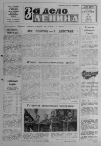 X сессия районного Совета С о сто я л а сь внеочередная, X сессия (XVII с о зы в а ) С е верного районного С овета н а родных депутатов . Сессия рас см о тр е ла о р г а низационный вопрос. С информацией по д а н н о му вопросу выступил первый се крета рь районного ком итета КПСС М. Л. Борисов. Он з а ч и т а л з а я в л е н и е б ы в шего п ред сед ате ля исполкома районного Совета н ародных д еп у т а т о в Г. И. Иваш кевича с просьбой об о с в о б ож д ен и и его от за н имаемой д о л ж н о с ти по состоянию зд о р о в ь я . Сессия у д о вл е т во р и л а просьбу Г. И. И в аш кеви ча . П ре дс е д а т е л ем р а й и с п о л к о ма избран Е. А. Б а г р о в , р а нее работавш и й в торым с е к р етарем р а й о н н о г о , комитета партии. 10' (OBEY f КОМ V Х е р с о н . Х о р о ш о р а з в и в а ю т с я п о с е в ы к у к у р у з ы н а п о л я х с о в х о з а и м е н и 6 0 - л е т и я С о в е т с к о й У к р а и н ы Б е л о з е р с к о г о р а й о н а . Н е с м о т р я н а х о л о д , н у ю в е с н у , м е х а н и з а т о р ы п р о в е л и с е в в с т р о г о м с о о т в е т с т в и и с т р е б о в а н и я м и н о в о й т е х н о л о г и и , к о т о р у ю о н и р а з р а б о т а л и в м е с т е с У к р а и н с к и м Н И И о р о ш а е м о г о з е м л е д е л и я . К у р г а н , П о с л е о б и л ь н ы х д о ж д е й м е х а н и з а т о р ы о б л а с т и п р о д о л ж а ю т у х о д з а п о с е в а м и з е р н о в ы х и к о р м о в ы х к у л ь - ТУР. С е й ч а с а г р о х и м и к и г о т о в я т с я о б р а б а т ы в а т ь п о л я г е р б и ц и д а м и , П о л н ы м х о д о м и д е т р ы х л е н и е м е ж д у р я д и й н а п о л я х п р о п а ш н ы х . И з 2 5 7 т ы с я ч г е к т а р о в к у к у р у з ы о б р а б о т а н ы п е р в ы е д е с я т к и т ы с я ч г е к т а р о в . К и ш и н е в . В к о л х о з е «1 м а я » С л о б о д з е й с к о г о р а й о н а в ы ш л и п е р в ы е к о м б а й н о в ы е а г р е г а т ы н а у б о р к у о в о щ н о г о г о р о х а . С к а ж д о г о г е к т а р а с о р т а « р а н н и й г р и б о в с к и й » о в о щ е в о д ы п о л у ч а ю т н е м е н е е 7 0 ц е н т н е р о в п р о д у к ц и и . Е щ е б о л е е в е с о м ы й у р о ж а й п р и н е с « к у б а н е ц » . Н а у б о р к у о в о щ н о г о г о р о х а в р а й о н е н ы н ч е в ы й д у т 8 5 а г р е г а т о в . Э т о п о з в о л и т с н я т ь у р о ж а й в с ж а т ы е с р о к и К у б о р к е о в о щ н о г о г о р о х а п р и с т у п и л и Г р и г о р и о п о л ь с к и й , К р и у л я н с к и й и д р у г и е о в о щ е в о д ч е с к и е р а й о н ы р е с п у б л и к и ( Т А С С ) ОРГАН СЕВЕРНОГО РАЙНОМА НПСС И РАЙОННОГО СОВЕТА НАРОДНЫХ Д Е П УТ А Т О В НОВОСИБИРСКОЙ ОБЛАСТИ Выходит по вто рникам, четвергам и субботам. Пролетарии всех стран, со единяй тесь ! Решения майского Пленума ЦК КПСС — в жизнь Впервые за посл едние дни колхоз «Борьба за мир» у с т у пил первенство по суточным н ад о ям ж и вотновод ам из «Пути к коммунизму» . П я т ь хозяйств за это время суточные надои уменьшили. Такой ф ак т , п р е ж де всего о б ъ я с н я е т с я появлени ем гнуса. О днако д в а колхоза , « Н о в а я жизнь» и имени К. М а р к ез, в с л ожи вш и х ся условиях сумели ув еличить производство молока . ИДУЩИЕ ВПЕРЕДИ Д о к о н ц а п е р в о г о п о л у г о д и я о с т а л о с ь п о л м е с я ц а Д л я ж и в о т н о в о д о в р а й о н а н а с т у п и л и с а м ы е г о р я ч и е д н и : з а в е р ш а ю т с я п л а н ы п о п р о д а ж е м я с а и м о л о к а З а п я т ь п р е д ы д у щ и х м е с я ц е в к о П х о з и ^ е н и X X I I с ъ е з д а К П С С р е а л и з о в а л г о с у д а р с т в у 6 2 9 8 ц е н т н е р о в м о л о к а , ч т о с о с т а в л я е т 73,4 п р о ц е н т а к з а д а н и ю . Ч т о б ы у с п е ш н о з а к о н ч и т ь в т о р о й к в а р тал, н е о б х о д и м о о т п р а в и т ь н