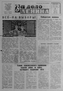 Пролета рии всех стран, соединяйтесь! ОРГАН СЕВЕРНОГО РАЙНОМА КПСС И РАЙОННОГО СОВЕТА НАРОДНЫХ ДЕПУТАТОВ НОВОСИБИРСКОЙ ОБЛАСТИ Вы хо ди т по вто р н и н ам , четвергам и субботам. щя i l CrЛ ijyp Г а з е т а основана 20 июля 1935 го д а № 74 (5 3 5 8 ) С У Б Б О Т А 19 И Ю Н Я 1 9 8 2 года Цена 2 коп. B C E - Н А В Ы Б О Р Ы ! З а в т р а у н а с б о л ь ш о й п р а з д н и к — в ы б о р ы д е п у т а т о в в м е с т н ы е С о в е т ы и н а р о д н ы х с у д е й в н а р о д н ы е с у д ы . П о д г о т о в к а к н и м п о в с ю д у п р о х о д и л а п р и в ы с о к о й п о л и т и ч е с к о й а к т и в н о с т и в с е х л ю д е й , п о д з н а к о м м о б и л и з а ц и и т в о р ч е с к о й э н е р г и и т р у д я щ и х с я н а у с п е ш н о е в ы п о л н е н и е и с т о р и ч е с к и х р е ш е н и й X X V I с ъ е з д а К П С С и м а й с к о г о ( 1 9 8 2 г . ) П л е н у м а Ц К . Г о р я ч е е о д о б р е н и е в ы з в а л а у в с е х л ю д е й П р о д о в о л ь с т в е н н а я п р о г р а м м а . О н и в о с п р и н я л и е е к а к с в о е р о д н о е , к р о в н о е д е л о . Т р у ж е н и к и с е л и д е р е в е н ь г о т о в ы с д е л а т ь в с е н е о б х о д и м о е д л я в ы п о л н е н и я п р и н я т ы х р е ш е н и й . П р о д о в о л ь с т в е н н у ю п р о г р а м м у в н и м а т е л ь н о и з а и н т е р е с о в а н н о о б с у ж д а ю т на п а р т и й н ы х с о б р а н и я х , в т р у д о в ы х к о л л е к т и в а х , в с е м ь я х . К о м м у н и с т и ч е с к а я п а р т и я в с е г д а и с х о д и л а и з т о г о , ч т о л ю б о й н а ш С о в е т е с т ь ч а с т и ц а в е р - l в н о й в л а с т и , ч т о о н н е т о л ь к о н а д е л е н п о л н о м о ч и я м и р е ш а т ь в с е в о п р о с ы , о т н е с е н н ы е к е г о к о м п е т е н ц и и , н о и в ы с т у п а е т к а к п р о в о д н и к о б щ е г о с у д а р с т в е н н ы х р е ш е н и й . Т а к о е е д и н с т в о в ы с ш и х и м е с т н ы х о р г а н о в о т р а ж а е т г л а в н у ю с у т ь С о в е т о в — и х н е р а з р ы в н у ю с в я з ь с н а р о д н ы м и м а с с а м и . П о с а м о й с в о е й с у т и С о в е т ы я в л я ю т с я о р г а н а м и н а р о д а , в с я и х д е я т е л ь н о с т ь п о д ч и н е н а е г о н у ж д а м и и н т е р е с а м . И м е н н о п о э т о м у т а к а к т и в н о п р о х о д я т у н а с в ы б о р ы в о р г а н ы г о с у д а р с т в е н н о й в л а с т и . С а м и т р у д я щ и е с я п р о в о д я т в с ю о р г а н и з а ц и о н н о - т е х н и ч е с к у ю п о д г о т о в к у к в ы б о р а м , с а м и н а з ы в а ю т и м е н а с в о и х и з б р а н н и к о в , д а ю т и м н а к а з ы . З а в т р а в р а й о н е г о с т е п р и и м н о р а с п а х н у т Д в е р и д в а д ц а т ь и з б и р а т е л ь н ы х у ч а с т к о в . К а н д и д а т а м и в д е п у т а т ы с е л ь с к и х С о в е т о в з а р е г и с т р и р о в а н о 305 ч е л о в е к . В р а й о н н ы й С о в е т в ы д в и н у т о 50 к а н д и д а т о в . В их ч и с л е р а б о ч и х — 16 п р о ц е н т о в , к о л х о з н и к о в — 4 8 , ж е н щ и н — 4 8 , к о м с о м о л ь ц е в — 22 п р о ц е н т а . К о м м у н и с т ы н а з а в т р а ш н и х в ы б о р а х , к а к и в с е г д а , в ы с т у п а ю т в е д и н о м б л о к е с б е с п а р т и й н ы м и . С р е д и к а н д и д а т о в в Д е п у т а т ы 48 п р о ц е н т о в с о с т а в л я ю т к о м м у н и с т ы . С р е д и в ы д в и н у т ы х к а н д и д а т о в в д е п у т а т ы — п е р е - * д о в и к и к о л х о з н о г о п р о и з в о д с т в а , п р е д с т а в и т е л и и н т е л л и г е н ц и и , р у к о в о д и т е л и х о з - я й с т в , п а р т и й н ы е и с о в е т с к и е р а б о т н и к и . Э т о — п р е д с е д а т е л ь к о л х о з а « V I I с ъ е з д С о в е т о в » Ф . Е. Д р е - б е н н о в , п р о д а в е ц В е р х - К р а с н о я р с к о г о т о р г о в о г о п р е д п р и я т и я Н. Е. Ч е р н о ш в е ц , д и р е к т о р С е в е р н о г о л е с п р о м х о з а В . Н . Л у ш о в , д о я р к а к о л х о з а и м