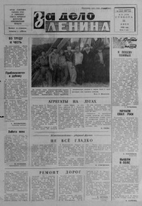 Г а з е т а осн о в ан а . 20 июля 1935 года_ № 92 (5 3 7 6 ) С У Б Б О Т А 31 И Ю Л Я 1982 года Ц ена 2 коп. ОРГАН СЕВЕРНОГО РАЙКОМА КПСС И РАЙОННОГО СОВЕТА НАРОДНЫХ Д Е П У Т А Т О В НОВОСИБИРСКОЙ О Б Л А С Т И В ы х о д и т по вторникам, четвергам и субботам. Пролета р ин всех стран, срединай тесь ! ПО Т Р У Д У И ЧЕСТЬ По представлению обкома профсоюза работник ов с е ль ского х о з я й с т в а , коллегии управлен и я сельского х о з яй с т в а облисполком а з а успехи , д о с ти гнутые на з а г о т о в к е сена, колхоз «З а в е ты Ильича» Северного р ай о н а занесен на областную д оску Почета. ' В х о зяй с т в е з а с к и р д о в ан о более 20 тысяч центнеров грубого корм а, что больше плана. З а г о т о в к а кормов будет п р о д о л ж а т ь с я и дальше. Приближаю тся к р у б е ж у В тр удных условиях п р о х о дит в этом г о д у се н о з а го т о вк а в ко л х о з е «V II с ъ е з д С оветов». Н о м е х ан и з а т о ры и п о леводы неуклонно п р и б л и ж а ются к з а в е т н о м у р у б е ж у — выполнению плана . Им нужно з а го т о в и т ь 10000 центнеров сена. Если на 26 июля было з а го т о в л ен о 6500 центнеров сена, т о на 30 июля — 7415 , З а п ят и дн е в к у з а с к и р д о в а н о 915 центнеров кормов. Н а сенокосе з а н я т о д в а звен а — В. И. Мосиявича и В. А. К о р ж о в а . С н а ч а л а они вмес те р а б о т а л и на л у г а х близ се ла , а з а т е м зв ен о В. А. К о р ж о в а пер ее х ал о в у рочи ще Н ово _ К оролево , где з а го то в и л о 2970 цен тнеров се на. Всего с нач ал а с е н о з а г о товительной кампании это |Звено з а с к и р д о в а л о 4152 центнера. Зв ено В. А. К о р ж о в а — лидер социалистического соревнов ания . Е. МАХНЫТКИНА , б у х г а л т е р к о лхоза . Забота всех Колхоз « Н о в а я жи зн ь» з а с ки р д о в а л к зим о в к е 1982—83 го д а 8140 центнеров сена. Это с о с т а в л я е т 70,8 процента к плану. По сравн ению с п р ош лым го д ом темп за г о т о в ки к орм ов более высокий. Н е плохо т р у д и т с я м е х ан и з и р о в ан ное звено члена п р а в л ен и я В. Н. Я к о вл ев а . Оно у л о ж и ло в стога 3,5 тысячи центнеров корма. Четвертый год в о з г л а в л я е т Владимир Н и к о лаевич зв ен о во вр ем я с ено косной с тра ды . И с о с тав его, в основном, не меняется . П о этому р а б о т а идет с л а ж е н но. В. СТЕПАНОВ , п р е д с е д а т е л ь ко л х о з а . Л е т о — г о р я ч а я по р а д л я до р ож н ик о в . Трас сы нашего р ай о н а требуют постоянного внимания в лю бое в р ем я г о д а , но основные раб о ты по их ремонту и восстановлению ве- ф д у т с я , в основном, с м а я по о к т я б р ь , и ме х ан из а то ры Д Р С У в полную меру использую т бла гопри ят ны е погодные ' у сл о ви я , чтобы успешно с п р а вить ся с план ами и с о ц и а листическими о б я з а т е л ь с т в а ми. Г лавный объек т , где сей час сосредоточена техн и ка — улица Л ен и на в Сев ерном. З д е с ь готовитс я основание д о рожн о го полотна под асфаль - На снимке: звено сено з а го то ви тел ей к о л х о з а «Восход», которым р у к о в о д и т Владимир Попов (в т о р о й с л е в а ) . Р а б о т а я д р у ж н о , стремяс ь еж ед не вн о п еревы полн ять нормы в ы р а бо т к и , м е х ан из а то ры у л ож и л и в скирды более 5 тысяч центнеров се на хорошего каче ств а . Фото А. Ш маенк ова . АГРЕГАТЫ НА Кол х о з имени К. М а р к с а д о л ж ен з а г о т о в и т ь на п редстоящ ую зи м о в к у 16 тысяч цен тнеров сена. П л аны нап ряж енны е , о со бенно если учесть, что т р а в о стой нынешнего г о д а довольно скудный. Но несмотр я на с л о ж ности, ме хан иза торы х о з яй с т в а у ж е сейчас з а с т о г о в а л и 10 т ы ся