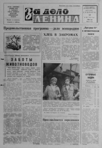 Газета основана 20 июля 1935 года__ № 98 (5382 ) С У Б Б О Т А 14 А В Г У С Т А 1 9 8 2 года Цена 2 коп. „ П р о г р е с с - 1 4 “ в автоматическом полете 11 а в гу ста после з а в е р ш е ния п рограммы совме стного п о ле та про извед ен о отд ел ение ав тома тичес кого тран сп о р т н о го к о р а б л я «Прогресс-14» от орбита льн ого комплекса « С а лют-7» — «Союз Т-5». П р о цесс расстыковки и отход грузового к о р а б л я ко н тр о л и р о в ал и сь сп ециалистами Ц е н т ра у п р ав л ен ия полетом и к о см о н ав там и Б ер е зо вы м и Лебедевы м . З а время совместного п о л е та' все зап л ан и р о в а н н ы е р а б о ты, включавшие р а з г р у з к у тран сп ортн ого к о р а б л я , д о з а п р а в к у объединенной д в и г а те льной у стано в ки то пливом и п ерек ач ку д о с т а в л ен н о й в о ды в емкости станции, вы п о л нены полностью. По данным те леметрических измерений, полет пил о ти р у емого ком плек са «С алют-7» — «Союз Т-5» и а в т о м а т и ч е с к о го к о р а б л я «Прогресс-1 4» п роходит н ормально. (ТАСС) С У Т О Ч Н Ы Е Н А Д О И молока на корову на 13 а в г у с т а (в килограммах) Колхозы 1982 г. 1981 г. нм. М. Горьк ого 9,2 6,4 им. К. М а р к с а 8,8 7,4 П а м я т ь Л ен и на 8,7 9,1 П у ть к ко м м у н и зм у 8,6 ю ос Н аш а Р одина 7,9 6,7 З а в е т ы Ильича 7,7 5,6 мм. XXII с ъ е з д а КПСС 7,5 8,2 Б о р ь б а з а мир 7,3 8,4 Восход 7,3 5,8 Н о в а я жизнь 7,2 6,6 V 11 съ езд Советов 7,0 8,4 По рай ону 7,9 7,4 З а последние две. недели про ду к тивн о сть дойного с т а д а снизила сь во многих х о з я й с т вах района. Если ж и в о т н о в о ды колхоза имени М. Горь-' кого н а д аи в а л и по 10,2 ки л о гр ам м а молока от коровы, то теперь ■— по 9,2. Умен ьшились надои почти на к и л о грамм в ко л х о з е имени К а р л а М арк са . Т ак ое ж е я в л е ние н а б лю д ае тся и в к о л х о з а х «Путь к коммунизм у», « Н о в а я жизн ь» , имени XXII с ъ е з д а КПСС и других . О с о . бенно резко изм енилось п о л о ж ен и е в «VII с ъ е з д е С о в е тов», где сейчас получают от коровы н а ’ 1,7 ки л о гр амм а мо л о ка меньше, чем в конце июля. Только одно хозяйство — « Н аш а Р о ди н а» — имеет н е которую п р и б а в к у суточных надоев. Если ж е ср а вн и т ь п о к а з а т е л и прошлого года и нынешнего, то видно, что уменьшилось п роизводство продукции в тр ех к о л х о з а х : «П а м я т ь Ленина», имени XXII с ъ е з д а КПСС и «VII с ъ е з д Советов», ю ссгл З В Е З Д А Т Р УД О В ОЙ С Л А ВЫ З А Ж Ж Е Н А В ЧЕ СТ Ь К О ЛХО ЗА ИМЕНИ КАРЛА МАРКСА, З А К О Н Ч И В Ш Е Г О У БО Р КУ О ЗИ М О Й Р Ж И И П О Л У ЧИ ВШ Е Г О С Р Е Д Н Ю Ю У Р О Ж А Й Н О С Т Ь 15,7 Ц Е Н Т НЕРА С ГЕКТАРА. ПО Л Е В О Д Ы ! Ш И Р Е Р А З МАХ С О Ц И А Л И С Т И Ч Е С К О ГО С О Р ЕВН О В АНИ Я НА У Б О Р К Е ЗЕ Р Н О ВЫ Х ! Продовольственная программ а— дело всенародное ОРГАН СЕВЕРНОГО РАЙКОМА КПСС И РАЙОННОГО СОВЕТА НАРОДНЫХ ДЕПУТАТОВ НОВОСИБИРСКОЙ ОБЛАСТИ В ы х о д и т по в то рн и к ам , четверга м и субботам. Х Л Е Б В З А К Р О М А Х Хлеборобы ко л х о з а «Путь к коммунизм у» за кончили уборку озимой ржи , к о т о р а я з ан и м а л а 491 г е к т а р пашни. В аловой намолот с о с тав ил 4610 центнеров, то ес ть в среднем с одного г е к т а р а собирали по 9,4 цен тнера зерна . В Веселовской бригаде у р о ж а й ность выше, чем в Биазинской — 10 центнеров против 9. В первой бр иг а де р о ж ь н у ж но было у б р а т ь на п лощ ади 288 гек таров . Н а косовицу х л ебов вышло четыре ж а т к и . Р я дом с опытными комбайнерами М. Н. Ив анченко и В. А. Андреевым набира лис ь м а стер с тва А. Д . Ч е р в я т ки н и В. С. С т е панов. Н а смену им на поля вышло звено В. П. Кульпина , в состав 