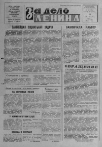 ОРГАН СЕВЕРНОГО РАЙКОМА КПСС И РАЙОННОГО СОВЕТА НАРОДНЫХ Д ЕП УТ А Т О В НОВОСИБИРСКОЙ ОБЛАСТИ Выходит по вторникам, четвергам и субботам. Про летарии всех стран, соединяйтесь! X A t r / I V Г азета основана 20 июля 1935 года № 104 (5388) С У Б Б О Т А 28 а в г у с т а 1 9 8 2 года Цена 2 коп, ВАЖНЕЙШАЯ СОЦИАЛЬНАЯ ЗАДАЧА Ц е н т р а л ь н ы й К о м и т е т К П С С и С о в е т М и н и с т р о в С С С Р п р и н я л и п о с т а н о в л е н и е « О д о п о л н и т е л ь н ы х м е р а х п о у л у ч ш е н и ю о х р а н ы з д о р о в ь я н а с е л е н и я » . В п о с т а н о в л е н и и о т м е ч а е т с я , ч т о б л а г о д а р я п р о в о д и м ы м п а р т и е й и п р а в и т е л ь с т в о м к р у п н ы м с о ц и а л ь н о - э к о н о м и ч е с к и м м е р о п р и я т и я м в. о б л а с т и з д р а в о о х р а н е н и я д о с т и г н у т ы п о л о ж и т е л ь н ы е р е з у л ь т а т ы в с о с т о я н и и з д о р о в ь я с о в е т с к и х л ю д е й . З н а ч и т е л ь н о е р а з в и т и е п о л у ч и л а м а т е р и а л ь н о - т е х н и ч е с к а я б а з а з д р а в о о х р а н е н и я . В м е с т е с т е м о т м е ч е н о , ч т о в о з м о ж н о с т и „ п о в ы ш е н и я к а ч е с т ва о к а з ы в а е м о й н а с е л е н и ю м е д и ц и н с к о й п о м о щ и р е а л и з у ю т с я д а л е к о н е п о л н о с т ь ю . М е д л е н н о у с т р а н я ю т с я н е д о с т а т к и в о р г а н и з а ц и и р а б о т ы б о л ь н и ц , п о л и к л и н и к , с е л ь с к и х а м б у л а т о р и й , у ч р е ж д е н и й с к о р о й м е д и ц и н с к о й . п о м о щ и , в п р о в е д е н и и п р о ф и л а к т и ч е с к о й р а б о т ы . Ц е н т р а л ь н ы й К о м и т е т К П С С и С о в е т М и н и с т р о в С С С Р о б я з а л и п а р т и й н ы е и с о в е т с к и е о р г а н ы , м и н и с т е р с т в а и в е д о м с т в а о б е с п е ч и т ь с о в м е с т н о с п р о ф с о ю з н ы м и , к о м с о м о л ь с к и м и и д р у г и м и о б щ е с т в е н н ы м и о р г а н и з а ц и я м и п р о в е д е н и е д о п о л н и т е л ь н ы х м е р о п р и я т и й п о с о в е р ш е н с т в о в а н и ю о р г а н и з а ц и и м е д и ц и н с к о й п о м о щ и н а с е л е н и ю . П р е д л о ж е н о с о с р е д о т о ч и т ь в н и м а н и е н а д а л ь н е й ш е м у с и л е н и и п р о ф и л а к т и к и з а б о л е в а н и й , п р е д у п р е ж д е н и и т р а в м а т и з м а , о з д о р о в л е н и и о к р у ж а ю щ е й с р е д ы , у л у ч ш е н и и ' у с л о в и й т р у д а , б ы т а и о т д ы х а , в о с п и т а н и и у с о в е т с к и х л ю д е й с о з н а т е л ь н о г о о т н о ш е н и я к с о х р а н е н и ю и у к р е п л е н и ю з д о р о в ь я . П р и н я т ь д о п о л н и т е л ь н ы е м е р ы к в ы п о л н е н и ю у с т а н о в л е н н ы х п л а н о в с т р о и т е л ь с т в а и о б е с п е ч е н и ю с в о е в р е м е н н о г о в в о д а в э к с п л у а т а ц и ю б о л ь н и ц , п о л и к л и н и к , а м б у л а т о р и й , а п т е к . , Н а м е ч е н ы м е р ы д л я с о з д а н и я н а д л е ж а щ и х т р у д о в ы х и б ы т о в ы х у е л о в и й в р а ч а м , с р е д н е м у м е д и ц и н с к о м у п е р с о н а л у и ф а р м а ц е в т и ч е с к и м р а б о т н и к а м , о с о б е н н о р а б о т а ю щ и м в с е л ь с к и х у ч р е ж д е н и я х з д р а в о о х р а н е н и я . М и н и с т е р с т в у з д р а в о о х р а н е н и я С С С Р и С о в е т а м М и н и с т р о в с о ю з н ы х р е с п у б л и к п р е д л о ж е н о , в ч а с т н о с т и , о с у щ е с т в и т ь в с е л ь с к и * р а й о н а х м е р о п р и я т и я п о с о в е р ш е н с т в о в а н и ю у п р а в л е н и я з д р а в о о х р а н е н и е м , р а с ш и р е н и ю с е т и в р а ч е б н ы х а м б у л а т о р и й , р а з в и т и ю с к о р о й и н е о т л о ж н о й м е д и ц и н с к о й п о м о щ и ; у с и л и т ь п р о ф и л а к т и ч е с к у ю д е я т е л ь н о с т ь а м б у л а т о р н о - п о л и к л и н и ч е с к и х у ч р е ж д е н и й , п о в ы с и т ь к а ч е с т в 