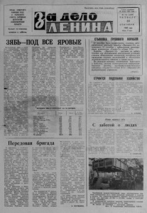 ОРГАН СЕВЕРНОГО РАЙКОМА КПСС И РАЙОННОГО СОВЕТА НАРОДНЫХ ДЕПУТАТОВ НОВОСИБИРСНОЙ ОБЛАСТИ В ы х о д и т по в т о р н и к а м , четверга м и субботам. Пролетарии всех стран, соединяйтесь! Г а з е т а основ ана 20 июля 1935 года__ № 115 (5 3 9 9 ) Ч Е Т В Е Р Г 23 С Е Н Т Я Б Р Я 1 9 8 2 года Ц ена 2 коп. З Я Б Ь - П О Д ВСЕ ЯРОВЫЕ «Кировцы», все гусеничные т р а к т о р ы . Именно этим можно об ъ я с н и т ь , что к олхоз «V I I с ъ е з д Советов» в сп а х а л лишь 154 г е к тар а зяб и из 1200, 13,7 процента з а д а н и я . Об этом ж е го во р ят и 20,5 процента плана вспашки зяби, имеющиеся у ко л х о з а «З а в е ты Ильича», Колхоз одним из первых у б р ал з е р новые, а вот о будущем у р о ж а е з а б о т и т с я плохо, не торопится з аго то в и ть землю иод посев яровых. То же с а мое м ож но с к а з а т ь о к о л х о з а х «Б о р ь ба за мир», «П ам я ть Ленина», «Н о в ая жизнь», имени М. Горького. Но ес ть и другие примеры. Колхоз «Наша Родина» , н а пример, д о лж ен поднять в этом году 1250 гек таров з я би, Вспахано на 20 число — 650, что с ос тавило 52 процента к плану. Это — третий р е з у л ь т а т после колхоза «Восход», выполнившего план в з м е т а зяби на 61,3 процента, и кол х о з а «Путь к ком м у ни з му», поднявшего 1050 г е к т а ров зяб и из 2000 плановых. З д е с ь еж ед не вн о р аб о таю т д е в я т ь тр а к т о р о в : три К-700 и о стальные гусеничные. О р ган и зо в а но два зв ена, к о т о рые ведут п а х о т у в Болыпе - « Куликовской и Ново -Н иколь- сцой б риг а да х . М еханизаторы з а полный св етовой день всп ахи ваю т по 50—60 г е к т а ров. З а 10 дней, к а к предпол а г а ю т специалисты к о л х о з а , з я б ь буде т п о дн ята п о л ностью. Три «Кировца» и все гу с е ничные тр ак то ры , свободные от дру гих с е ль ск о х о зяй ств ен ных работ, пущены на п а х о т у в колхозе имени К. Марк са. К аж ды й механизатор это го х о зяй с т в а п р ил а га ет м а к си мум усилий, чтобы как м о ж но скорее з ак ончи ть вспашку зяби . Например, трак торис т А. А. Якимов уж е всп ахал на К-700 более ста гектаров земли, то есть, пятую часть того, что п одн ято всеми т р а к тористами этого хозяйств а . З а д а ч а руководителей х о зяйства* специалистов, п а р т и й ных орг ан и з ац и й — з н а ч и тельно ак т и в и зи р о в а т ь р а б о ты на осенних полях. Н е о б ходимо в к а ж д о м колхозе добиться того, чтобы звен ья по вспашке з я б и работали и полную силу, чтобы техника не п р о стаи в ал а . Это позволит провести сев яровых в л у ч шие, кра тчайш ие сроки, о б еспечить посевы необходимым за пас ом влаги. ВСПАШКА ЗЯБИ В КОЛХОЗАХ НА 20 СЕНТЯБРЯ М а л о сн еж н а я зима и сухое лето отри ца тельно с к а з а л и с ь на у р о ж а е зеоновых культур: собрано д а л е к о не ст олько, на ск олько рассчитывали. И если в р я д е хозяйств гек тар о к а з а л с я богаче, чем в оста льных, то немалую долю успеха надо отнести на счет рано поднятой, хорошо о б р а ботанной зяби. Высококачественная зяб!, имеет неоценимое значение д ля получения высоких и устойчивых у р о ж а е в всех с е л ь ск охозяйственных ку льтур , д ля выполнения го с у д а р с т в е н н ы х з а д а н и й но произв одству и п р о д а ж е зерна, обеспечения ко лхозов семенами, ж и в о т н о в о д с т в а — ф у р аж ом . В с р е д ней полосе, к а к у т в е р ж д а е т п ракти ка пер ед овых хозяйств , ранняя з я б ь но ср авнению с веснов спашкой на треть пощи п ает у р о ж а й хл еба, а н ш Р ’М л и в ы е годы у д в а и в а е т их. У нас ж е п р иб авк а от зяби — в три-четыре центнера. Но в е д ь и это д о п о л н и тельн