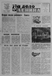 ОРГАН С Е В Е Р Н О ГО РАЙКОМА КПСС И РАЙОННОГО С О В Е Т А НАРОДНЫХ Д Е П У Т А Т О В НОВОСИБИРСКОЙ ОБЛАСТИ Вы ходи т по вторникам, четвергам и субботам. Пролетарии всех стран, соединяйтесь ! ^ | | i b m / S h Г Г Т1 Г а з е т а основ ана 20 июля 1935 года № 116 ( 5 4 0 0 ) С У П Б О Т А 25 С Е Н Т Я Б Р Я 1 9 8 2 года Ц е н а 2 кои. Вторая сессия районного Совета 22 се н т я бр я и актовом з а л е Д о м а Советов со с т о я л а с ь II сессия (XVIII с о зы в а ) Северного районного Совета народных депутатов . Сессия рас смотре ла следующие вопросы: «Информация о Выполнении решения первой сессии ( Х \ III со зы в а ) Северного районного Совета народных депутатов , критические зам ечан ия , высказанны е д еп у татам и п о работе исполкома в межсессионный период», «О дал ьнейшем с о вершенствовании работы с письмами, з а я в л е н и ями и ж а л о б а м и тр у д ящ и х с я в с в ете решений ХХ \ I с ъ е з д а КПСС», «О ме роприятиях по выполнению н а к а зо в избирателей», «Сообщение д еп у тата» , «Утверждение повестки д н я на очередную сессию рай совета». С д о к л ад ом «О дал ьнейшем совершенств овании работы с письмами, з а я вл е н и ям и и ж а л о б ам и т р у д ящ и х с я в свете решений XXVI с ъ е з д а КПСС» выступил за м ести тель п р ед сед ате л я райисполкома В. М. Груенко. В прениях по д о к л а д у выступили деп у таты Ф. А. Симонов п р ед сед ате л ь ком итета н а р о д ного контроля , В. А. Шишлова пекарь, бригадир б рига ды булочных изделий хлеб о к ом бината , А. Е. Андреев — р едак тор районной газеты, 3. Д. Борисова — п рода вец промышлен ных т о в а р о в Биазинского т о ргового п р е д п р и я тия, Г. Д. Костина в о спита тельница детск ого с а д а , \s 1, А. А. З а й ц е в — п р ед сед ате л ь колхоза НМ. XXII съ е зд а К I ICC, В. В. Антипина бухгалтер колхоза «Борьба за мир». На сессии с большой речью выступил первый с е к р ета р ь райкома КПСС Н. А. Борисов. С д о к л ад ом «О мероприятиях по выполнению н ака зо в избирателей» выступил председатель райисполкома Е. А. Багров. По о б суж д аемы м вопросам сессия прин яла соответствующие решения. С сообщением о выполнении своих о б я з а н ностей на сессии выступила д еп у т а т 3 . К. Чернова. Сессия ут в е р д и л а повестку д н я очередной сессии районного С о ве та нар о д ны х депутатов. Она состо итс я в д е к а б р е 1982 года, па ней будут о б суждены вопросы «О плане социально- экономического р а з в и т и я р айона па 1983 год и выполнение п лан а социал ьно-экономического р азв и тия з а 1982 год» и «О бю дж ете района па 1983 год и об исполнении бю дж ета за 1981 год». М ате р иа лы сессии б у ду т опубликованы в б ли ж а йш е е время . « Сообщение д еп у т а т а 3. К. Черновой п у б л и к у ется в данном номере на вто рой полосе. ПОСЛЕДНИЕ По сути дела сейчас надо говорить о полной готовности животноводческих помещений к зимнему содержанию скота: наступают ночные заморозки, животных необходимо подкармливать, доить в тепле. В колхозе «НЬша Родина»,' как сообщил его пр е д с е д а тель Г. И. Хрущев, произведен капитальный ремонт двух корпусов: коровника в Ново-Никольске и откррмочника ПРИГОТОВЛЕНИЯ в Больших Куликах Будет введен в эксплуатацию к о р пус на 200 коров и здание для откормочного гурта С т р о и тельство закончено. Теперь устанавливают оборудование Бригада ПМК по животноводству ведет водопровод. С а н техники дали слово за десять дней закончить все работы Доярки, телятницы в эти дни белят корпуса, клетки для телят, обмазывают стен
