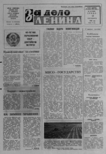 -> Wh m. ОРГАН СЕВЕРНОГО РАЙКОМА НПСС И РАЙОННОГО СОВЕТА НАРОДНЫХ ДЕПУТАТОВ НОВОСИБИРСКОЙ ОБЛАСТИ В ы х о д и т по в т о рн и к ом , четве рга м и субботам. I I Пролетарии всех стран, соединяйтесь! Д б Л и Газета основана 20 июля 1935 года № 123 (5407] С Р Е Д А 13 О К Т Я Б Р Я 1 9 8 2 года Цена 2 коп. Правофланговые коллектива ГЛАВНАЯ ЗАДАЧА ЖИВОТНОВОДОВ М е ж к о л х о з н ы й л е с х о з н а р я д у с о х р а н о й , п о с а д к о й л е с о в з а н и м а е т с я з а г о т о в к о й и в ы в о з к о й д е л о в о й д р е в е с и н ы . Т о л ь к о з а д е в я т ь м е с я ц е в з а г о т о в л е н о 7 4 6 4 , 7 к у б о м е т р а п р и п л а н е 57 50 . В о с н о в н о м в с я д е л о в а я д р е в е с и н а . д о с - т а в л е н а н а т е р р и т о р и ю . Д л я к о л х о з о в и п р е д п р и я т и й р а й о н а п р о и з в е д е н о с т о л я р н ы х и з д е л и й На с у м м у 13 1,5 т ы с я ч р у б л е й , п л а н в ы п о л н е н н а 3 0 4 , 6 п р о ц е н т а . Р е а л и з о в а н о п р о д у к ц и и на 4 6 3 , 4 т ы с я ч и р у б л е й , ч т о на 134 т ы с я ч и р у б л е й б о л ь ш е п л а н о в ы х . Все э т о д о с т и г н у т о , к о н е ч н о , о б щ и м с т р е м л е н и е м к о л л е к т и в а и о с о б е н н о с а м о о т в е р ж е н н ы м т р у д о м п е р е д о в и к о в п р о и з в о д с т в а . З а м е ч а т е л ь н ы х р е з у л ь т а т о в д о б и в а л и с ь на л е с о з а г о т о в к е В. А Е г е р ь , А . Т. Ч е р т к о в , на в ы в о з к е — Г. И. Б е з д е н е ж - В а в г у с т е и с е н т я б р е к и р п и ч н ы й з а в о д на н е к о т о р о е в р е м я б ы л п р и о с т а н о в л е н : ш е л р е м о н т п е ч е й о б ж и г а . Э т о , б е з у с л о в н о , с к а з а л о с ь на р а б о т е в с е г о п р е д п р и я т и я . П л а н р е а л и з а ц и и за д е в я т ь м е с я ц е в в ы п о л н е н в с е г о л и ш ь н а 9 2 , 2 п р о ц е н т а . В а л о в о й п р о д у к ц и и в ы п у щ е н о на 14 2,6 т ы с я ч и р у б л е й . Э т о д а е т о с н о в а н и е с д е л а т ь в ы в о д , ч т о г о д о в о е з а д а н и е к и р з а в о - д о м м о ж е т б ы т ь в ы п о л н е н о . НА ЗИМ Н Е Е З а к о н ч и л а с ь у б о р о ч н а я с т р а д а в к о л х о з е « П а м я т ь Л е н и н а » , и н а п р я ж е н н ы й р и т м т р у д а п е р е м е с т и л с я с п о л е й в м а с т е р с к и е . З д е с ь г о т о в и т с я т е х н и к а к с е л ь с к о х о з я й с т в е н н ы м р а б о т а м б у д у щ е г о г о д а . П е р в ы м п о с т а в и л н а х р а н е н и е з е р н о в о й к о м б а й н А . Н. С м е т а н и н , в т о р ы м — Д . П. Н и ч к о в , п е р е д о в ы е м е х а н и з а т о р ы х о з я й с т в а . В с л е д з а н и м и т е х н и ч е с к и й о с м о т р к о м б а й н о в о р г а н и з о в а л о з в е н о В. М . П а с ь к о . С е й ч а с в а н г а р е с т о я т 18 э т и х м а ш и н , д е с я т ь и з н и х п о л н о с т ь ю о т р е м о н т и р о в а н ы . О с т а л ь н ы е б у д у т г о т о в ы к 1 я н в а р я 1983 г о д а . С л о ж н е е о б с т о и т д е л о с р е м о н т о м т р а к т о р о в . В м а с т е р с к о й н а х о д я т с я д в а к о л е с н и к а . Ю . М . У з к и х и В. Н. С и л а к о в з а м е н я ю т в н и х и з н о ш е н н ы е д е т а л и . Г у с е н и ч н ы й т р а к т о р р е м о н т и р у е т А . Т и - ш е ч к о . Р а б о т ы в м а с т е р с к о й з и м о й н е м а л о . Н о к о л л е к т и в н ы х , И. Г. С а н н и к о в , А . Т. М а с л о в . В ы с о к о п р о и з в о д и т е л ь н о р а б о т а л и на и з г о т о в к е ш т у к а т у р н о й д р а н и , ш т а к е т а и д р у г и х и з д е л и й Т. Ф . Я к о в л е ва, О . И. М а л ы ш е в а , Г. Г. К а з а н ц е в и Ю . Д . П я т а н о в . К о л л е к т и в м е ж к о л х о з н о г о л е с х о з а г о р д и т с я с в о и м и п р а в о ф л а н г о в ы м и : м а с т е р о м д е р е в о о б р а б о т к и к о м м у н и с т о м А . С . И л ь и н ы м , р а м щ и к а м и А . А . У р а з б а е в ы м и 3 . X. А б л я е в ы м . Ч е т к о в ы п о л н я ю т с в о и о б 