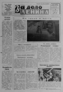 20 июля 1935 год а _ № 125 (5409 ) С У Б Б О Т А 16 О К Т Я Б Р Я 1 9 8 2 года Цена 2 коп. ОРГАН СЕВЕРНОГО РАЙКОМА НПСС И РАЙОННОГО СОВЕТА НАРОДНЫХ ДЕПУТАТОВ НОВОСИБИРСКОЙ ОБЛАСТИ Выходит по вторникам, четвергам и субботам. Пролетарии всех стран, соединяй тесь ! Основа урожая З а б о т а о семенах — это з а б о т а о будущ ем урожае^ Поэтому не удивительно, что все лучшее, убранное с поля з а сып ае тся на семена. Ж а р к о е лето нынешнего года сп особство ва л о тому, что зерновые куль туры хорошо вызрели. И все-таки р а б о т а с семенами пред стоит б о льш а я и кропот л и в а я . И х сортность, . в схо ж е сть и в л а ж н о с т ь должны с оотв етс твова ть нужной к о н диции, п р еж д е чем семена б у дут засыпаны в с к л а д д ля х Ра ” е ' ния В кол х о з е имени XXII съ е зд а КПСС р а б о т а с семенами ов са проведена пол ностью. Их засыпано 3200 центнеров. 1200 центнеров прошли вторым классом. - ^ Н е с к о л ь к о ниже кондиционная ' " в с х о ж е с т ь остальных. Все семена ов са, ржи, пшеницы хорошо по др а бо таны и очищены. Б о л ь ш а я часть п ш е н и ц ы п о к а з а л а у д о в л е т в о рительную в схожесть. 1600 цен тнеров сейчас н а х о д я т с я на проверке в семенной л а б о р а тории, но д л я полного о б еспечения х о зяй с т в а семенами этой к у л ь ту ры необходимо з ап ас тис ь еще 250 ц е н т н е р а ми. Весь семенной фонд п рохо дит очистку и сушку на г р аж д а н ц е в с к о й сушилке, поэтому его кон д иц и онн ая в сх ож е сть во многом за ви си т от соблюдения технических норм эксп луатац и и сушильной установки . И особенно вни ма тельными • д о лж ны быть те, ^ к то непосредственно осущест- ™ нляет процесс сушки. В Г р а ж д а н ц е в о опер ато р ам и на у с т а н о в к а х К ЗС -2 0 «б» К ЗС -1 0 «м» р аб о таю т Д. А. Моисеев и Н. С. Безгин. В кол х о з е з ер н о ск л ады д ля хранения семян едв а л ц не лучшие в районе. Н а ц ен т ральной у с а д ь б е их четыре, они способны вмес тить 10' тысяч центнеров. Складские помещения просторные и в них исключаетс я малейшее попадание влаги, к о т о р а я всегда губите льн а д л я зе рна. Г. П Е Т Р О В А . Подработка зерна К посевной будущего года го т о в я т с я з ем ледельцы к о л х о з а « П а м я т ь Ленина». Их основная з а д а ч а сейчас— п о д р а ботать семена д о высших п о севных кондиций. В хозяйстве за сып ан о на хранение 2200 центнеров пшеницы, 4000 — овса, 1220 — ржи. По в с х о жести зерн о отнесено ко в т о рому к л ас су посевной к о н д и ции. Его подра ботк ой з а н и м а лись м а с т е р а зернотока М. П. Ж у р а в л е в , И. А. Юдин, Ю. Н. Шеин, Н. Н. Головачев. ' В коротк ий срок выполнили они это большое и в аж н о е дело. Р у к о в о ди л р а б о т о й заведующий током А. М. Опарин. Семена засыпаны неплохие, но вы зы в аю т тревогу с к л а д ские помещения . Они в неприглядном состоянии, т ребую т или н ео тл ож н о го р ем о нта , или полной замены. А. К Л Е Щ Е Н К О , аг роном-с еменовод. П о т р у д у и Коммунист Н и к о л а й И в а н о в и ч Ц и п л а к о в работает . в <гТ р а н с се льхозт ехн ике» о к о л о десяти лет. З а это время и с к о л е с и л он н е м а л о дорог. В рай о н е нет такого к о л х о з а , к у д а не п р и в о з и л бы о н гр у зы : стройматериалы, о б о р у д о в а н и е д л я ферм. И в с е г да н е изм ен ным оставалось его отношение к д е л у : работает Н и к о л а й И в а н о в и ч на совесть. Поэтому мо ло д о го коммуниста товарищи по труду неоднократно и з б и р а л и депутатом райо н н о го Совета. В п е р и о д заготовки кормор И. И. Ц и п л а к о в , И. И. К у л а к о в и 