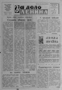 ОРГАН СЕВЕРНОГО РАЙКОМА КПСС И РАЙОННОГО СОВЕТА НАРОДНЫХ Д Е П УТ А Т О В НОВОСИБИРСКОЙ ОБЛАСТИ Выходит по вторникам, ч е т в ^ г а м и субботам. Пролетарии всех стран, соединяйтесь! f M I B H Завтра — День рождения комсомола Служить общему д е л у В к а л е н д а р е В е л и к о й Р е в о л ю ц и и м н о г о д о р о г и х п а м я ти и с е р д ц у д а т . О д н а и з н и х — 29 о к т я б р я 1 9 1 8 г о д а . Д е н ь р о ж д е н и я Р о с с и й с к о г о К о м м у н и с т и ч е с к о г о С о ю з а М о л о д е ж и , н а ш е г о к о м с о м о л а , н а ч а л о е г о г е р о и ч е с к о й б и о г р а ф и и . И с т о р и я е г о н е р а з р ы в н о с в я з а н а с Л е н и н с к о й п а р т и е й , с и с т о р и е й п е р в о г о в м и р е с о ц и а л и с т и ч е с к о г о г о с у д а р с т ва, с б о р ь б о й е г о р а б о ч е г о к л а с с а , т р у д я щ и х с я за т о р ж е с т в о к о м м у н и с т и ч е с к и х и д е а л о в , с и с т о р и е й м е ж д у н а р о д н о г о к о м м у н и с т и ч е с к о г о д в и ж е н и я м о л о д е ж и . Т а к м ы г о в о р и м с е г о д н я , п о д ч е р к и в а я с а м о е г л а в н о е , ч т о х а р а к т е р и з у е т н а ш к о м с о м о л , о б о з р е в а я п р о й д е н н ы й и м п у т ь , т р у д н ы й и с ч а с т л и в ы й . П у т ь в 64 г о д а , н а ч а в ш и й с я в т о т у ж е д а л е к и й , н о н е з а б ы в а е м ы й о к т я б р ь с к и й д е н ь , к о г д а н е с к о н ч а е м ы е а п л о д и с м е н т ы з в у ч а л и в з а л е Д о м а с ъ е з д о в Н а р к о м п р о с а . П а р н и и д е в ч а т а в ш и н е л я х , в а т н и к а х , к о ж а н ы х к у р т к а х в е д и н о м п о р ы в е в с т а л и с о с в о и х м е с т . И х б ы л о 195, д е л е г а т о в п е р в о г о к о м с о м о л ь с к о г о с ъ е з д а . О н и п р е д с т а в л я л и о р г а н и з а ц и и , в р я д а х к о т о р ы х б ы л о ч у т ь б о л ь ш е 22 т ы с я ч ч е л о в е к . Т а к р о ж д а л с я С о ю з , с о з д а н и е к о т о р о г о с т а л о б о л ь ш и м с о б ы т и е м в о б щ е с т в е н н о - п о л и т и ч е с к о й ж и з н и м о л о д о й р е с п у б л и к и С о в е т о в , в м е ж д у н а р о д н о м п р о л е т а р с к о м ю н о ш е с к о м д в и ж е н и и . « О б р а з о в а н и е к о м с о м о л а , — п и с а л М и х а и л И в а н о в и ч К а л и - н и н , — п о с у щ е с т в у я в л я л о с ь н о в ы м ш а г о м в п е р е д , п о п у т и п о с т р о е н и я с о ц и а л и з м а в н а ш е й с т р а н е . Э т о и с т о р и ч е с к о е с о б ы т и е в н е с л о п р и н ц и п и а л ь н о н о в о е в в о п р о с о р о л и м о л о д е ж и в о б щ е с т в е н н о й ж и з н и . К о м с о м о л с п л о т и л р а б о ч е - к р е с т ь я н с к у ю м о л о д е ж ь в о д н о ц е л о е и к р е п к и м и у з а м и с в я з а л е е с К о м м у н и с т и ч е с к о й п а р т и е й » . С в о и п е р в ы е ш а г и к о м с о м о л д е л а л в г о д ы , к о г д а м о л о д а я С о в е т с к а я р е с п у б л и к а в е л а б о й н е на ж и з н ь , а на с м е р т ь п р о т и в и н т е р в е н т о в и б е л о г в а р д е й ц е в . « Т о г д а , п и с а л Н и к о л а й О с т р о в с к и й , — в м е с т е с к о м с о м о л ь с к и м и б и л е т а м и м ы п о л у ч а л и в и н т о в к у и д в е с т и п а т р о н о в » . Л е г е н д а р н о й 30 д и в и з и е й , в з я в ш е й в п л е н К о л ч а к а , к о м а н д о в а л д е в я т н а д ц а т и л е т н и й м о с к о в с к и й к о м с о м о л е ц А л ь б е р т Л а п и н . В д в а д ц а т ь о д и н г о д И в а н Ф е д ь к о б ы л в ы д в и н у т г л а в н о к о м а н д у ю щ и м в о й с к С е в е р н о г о К а в к а з а . В ч е т ы р н а д ц а т ь л е т в з я л в р у к и в и н т о в к у , с т а в с о л д а т о м р е в о л ю ц и и , п и с а т е л ь А р к а д и й Г а й д а р . И д у т г о д ы . С м е н я ю т с я э т а п ы с о ц и а л и с т и ч е с к о г о с т р о и т е л ь с т в а . С л е д у я л е н и н с к и м з а в е т а м , п о м н я , ч т о т о л ь к о в т р у д 