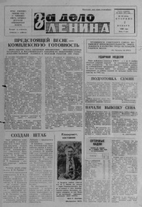 ОРГАН СЕВЕРНОГО РАЙКОМА КПСС И РАЙОННОГО СОВЕТА НАРОДНЫХ ДЕПУТАТОВ НОВОСИБИРСКОЙ ОБЛАСТИ Выходит по в т о р н и к а м , , четвергам и субботам. Пролетарии всех с тран, соединяйтесь! Г аз е та основана 20 т оля 1935 го д а __ № 132 [ 5 4 1 6 ] В Т О Р н и к Н О Я Б Р Я 1 9 8 2 года Цена 2 коп. ПРЕДСТОЯЩЕЙ ВЕСНЕ — КОМПЛЕКСНУЮ ГОТОВНОСТЬ БЮРО ОБКОМА КПСС О Д О Б Р И Л О ИНИЦИ А Т ИВ У МЕХАНИЗ АТ ОР ОВ ТАТАРСКОГО И МА СЛ ЯНИНСК ОГ О Р АЙОНОВ ПО ПОД Г ОТОВКЕ СЕЛЬС К ОХО З ЯЙС Т В Е ННОЙ ТЕХНИКИ К ПОЛЕВЫМ РАБОТАМ 1983 ГОДА. В п р и н я т о м п о с т а н о в л е н и и о т м е ч а е т с я , ч т о м е х а н и з а т о р ы , р а б о ч и е и и н ж е н е р н о - т е х н и ч е с к и е р а б о т н и к и к о л х о з о в , с о в х о з о в и о б ъ е д и н е н и й с е л ь х о з т е х н и к и Т а т а р с к о г о и М а с л я - н и н с к о г о р а й о н о в , о т в е ч а я д е л о м на р е ш е н и я м а й с к о г о ( 1 9 8 2 г . ) П л е н у м а Ц К К П С С , в ы с т у п и л и с и н и ц и а т и в о й с в о е в р е м е н н о и с в ы с о к и м к а ч е с т в о м п о д г о т о в и т ь в е с ь м а ш и н н о - т р а к т о р н ы й п а р к к п о л е в ы м р а б о т а м 1983 г о д а . И н и ц и а т о р ы с о ц и а л и с т и ч е с к о г о с о р е в н о в а н и я р е ш и л и д о 25 д е к а б р я в ы п о л н и т ь п л а н I V ' к в а р т а л а т е к у щ е г о г о д а п о р е м о н т у т р а к т о р о в и а в т о м о б и л е й , а к 30 д е к а б р я — к о д н ю 6 0 - л е т и я о б р а з о в а н и я С С С Р — п о д г о т о в и т ь в с е с е я л к и , 80 п р о ц е н т о в п о ч в о о б р а б а т ы в а ю щ и х о р у д и й , б о л е е 60 п р о ц е н т о в з е р н о у б о р о ч н ы х к о м б а й н о в и п о л н о с т ь ю з а в е р ш и т ь р е м , о н т э т и х м а ш и н д о 1 а п р е л я 1983 г о д а , м а я п о д г о т о в и т ь к о р м о з а г о т о в и т е л ь н у ю и к у и а г р е г а т ы п о п р и г о т о в л е н и ю в и т а м и н н о й т р а в я н о й м у к и , д о 1 и ю л я о т р е м о н т и р о в а т ь в с е с и л о с о у б о р о ч н ы е и д р у г и е с п е ц и а л ь н ы е к о м б а й н ы , р я д к о в ы е ж а т к и , з е р н о о ч и с т и т е л ь н о е и с у ш и л ь н о е о б о р у д о в а н и е . В о б я з а т е л ь с т в а х п р е д у с м а т р и в а ю т с я о б е с п е ч е н и е в ы с о к о г о к а ч е с т в а р е м о н т н ы х р а б о т , у л у ч ш е н и е э к с п л у а т а ц и и м а ш и н н о - т р а к т о р н о г о п а р к а , п о в ы ш е н и е п р о и з в о д и т е л ь н о с т и м а ш и н в 19 83 г о д у н е м е н е е ч е м н а 5 п р о ц е н т о в , с н й ж е н и е з а т р а т на и х р е м о н т и т е х н и ч е с к о е о б с л у ж и в а н и е на 3 п р о ц е н т а , э к о н о м и я 2 — 3 - х п р о ц е н т о в д и з е л ь н о г о т о п л и в а , в ы п о л н е н и е н е о б х о д и м ы х о б ъ е м о в р а б о т н а п р е д п р и я т и я х с е л ь х о з т е х н и к и п о р е м о н т у у з л о в и а г р е г а т о в к т р а к т о р а м , а в т о м о б и л я м и д р у г и м м а ш и н а м , и о б е с п е ч е н и е п о с т а в о к з а п а с н ы х ч а с т е й и м а т е р и а л о в д л я т е х н и к и , р е м о н т и р у е м о й в х о з я й с т в а х . О с о б о е в н и м а н и е у д е л я е т с я п о д г о т о в к е м е х а н и з а т о р с к и х к а д р о в и п о в ы ш е н и ю их к в а л и ф и к а ц и и . Б ю р о о б к о м а К П С С о д о б р и л о и н и ц и а т и в у • ю х а н и з а т о р о в , р а б о ч и х и и н ж е н е р н о - т е х н и ч е с к и х р а б о т н и к о в к о л х о з о в , с о в х о з о в и о б ъ е д и н е н и й с е л ь х о з т е х н и к и Т а т а р с к о г о и М а с л я - н и н с к о г о р а й о н о в и р е к о м е н д о в а л о р а й к о м а м и г о р к о м а м п а р т и и , р а й и с п о л к о м а м о р г а н и з о в а т ь ш и р о к о е о б с у ж д е н и е и х о б я з а т е л ь с т в п о р а з в е р т ы в а н и ю м а с с о в о г о с о ц и а л и с т и ч е с к о г о с о р е в н о в а н и я с р е д и м е х а н и з а 