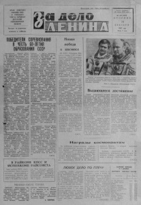 Газета основана 20 июли 1935 года № ISO ( 5 4 3 4 ) В Т О Р II и к 1 4 Д Е К А Б Р Я 1982 года Ц е н а 2 к о п . ОРГАН СЕВЕРНОГО РА Й КОМ А КПСС И РАЙОННОГО СОВЕТА НАРОДНЫХ Д Е П УТ А Т О В НОВОСИБИРСКОЙ ОБЛАСТИ Выходит по вторника м, четвергам и субботам. Пролетарии всех стран, соединяйтесь! ПОБЕДТИЕИЛ СОРЕВНОВАНИЯ В ЧЕСТЬ 60-ЛЕТИЯ ОБАРЗОВАНИСЯССР Ц е н т р а л ь н ы й К о м и т е т К П С С , С о в е т М и н и с т р о в С С С Р , В Ц С П С и Ц К В Л К С М р а с с м о т р е л и и т о г и В с е с о ю з н о г о с о ц и а л и с т и ч е с к о г о с о р е в н о в а н и я в о з н а м е н о в а н и е 6 0 - л е т и я о б р а з о в а н и я С о ю за С о в е т с к и х С о ц и а л и с т и ч е с к и х Р е с п у б л и к . В п р и н я т о м в с в я з и с э т и м п о с т а н о в л е н и и о т м е ч а е т с я , ч т о с о в е т с к и х н а р о д с а м о о т в е р ж е н н о т р у д и т с я н а д п р е т в о р е н и е м в ж и з н ь р е ш е н и й X X V I с ъ е з д а К П С С , м а й с к о г о и н о я б р ь с к о г о ( 1 9 8 2 г . ) П л е н у м о в Ц К К П С С . Р а б о т н и к и п р о м ы ш л е н н о с т и , с е л ь с к о г о х о з я й с т в а , с т р о и т е л ь с т в а , т р а н с п о р т а и д р у г и х о т р а с л е й н а р о д н о Г о х о з я й с т в а д о б и л и с ь в ю б и л е й н о м г о д у н о в ы х т р у д о в ы х у с п е х о в . О б е с п е ч е н р о с т о б ъ е м о в и э ф ф е к т и в н о с т и о б щ е с т в е н н о г о п р о и з в о д с т в а , п о в ы ш е н и е м а т е р и а л ь н о г о б л а г о с о с т о я н и я т р у д я щ и х с я , д а л ь н е й ш е е р а з в и т и е п о л у ч и л и п р о с в е щ е н и е , к у л ь т у р а , з д р а в о о х р а н е н и е , б ы т о в о е о б с л у ж и в а н и е н а с е л е н и я . В х о д е с о ц и а л и с т и ч е с к о г о с о р е в н о в а н и я я р к о п р о я в и л и с ь н е р у ш и м а я д р у ж б а , с о т р у д н и ч е с т в о и б р а т с к а я в з а и м о п о м о щ ь м е ж д у в с е м и н а ц и я м и и н а р о д н о с т я м и н а ш е й с т р а н ы . К р а с н ы м и з н а м е н а м и Ц К К П С С С о в е т а М и н и с т р о в С С С Р , В Ц С П С и Ц К В Л К С М н а г р а ж д е н ы в с е 15 с о ю з н ы х р е с п у б л и к . К р а с н ы е з н а м е н а за у с п е х и в с о р е в н о в а н и и ю б и л е й н о г о г о д а р е ш е н о о с т а в и т ь в с о ю з н ы х р е с п у б л и к а х н а в е ч н о е х р а н е н и е . П р и з н а н ы п о б е д и т е л я м и и н а г р а ж д е н ы п е р е х о д я щ и м и К р а с н ы м и з н а м е н а м и Ц К К П С С , С о - g f l f r М и н и с т р о в С С С Р , В Ц С П С и Ц К В Л К С М р я д а в т о н о м н ы х р е с п у б л и к , к р а е в и о б л а с т е й , г о р о д о в и г о р о д с к и х р а й о н о в , а в т о н о м н ы й о к р у г , 224 с е л ь с к и х р а й о н а . П р и з н а н ы п о б е д и т е л я м и и н а г р а ж д е н ы п е р е х о д я щ и м и К р а с н ы м и з н а м е н а м и Ц К К П С С , С о в е т а М и н и с т р о в С С С Р , В Ц С П С и Ц К В Л К С М 8 7 9 к о л л е к т и в о в о б ъ е д и н е н и й , п р е д п р и я т и й , о р г а н и з а ц и й и у ч р е ж д е н и й п р о м ы ш л е н н о с т и , с т р о и т е л ь с т в а , т р а н с п о р т а и д р у г и х о т р а с л е й н а р о д н о г о х о з я й с т в а , н а у ч н о - и с с л е д о в а т е л ь с к и х и д р у г и х о р г а н и з а ц и й , в т о м ч и с л е 517 с з а н е с е н и е м н а В с е с о ю з н у ю д о с к у П о ч е т а н а В Д Н Х С С С Р ; 7 5 0 к о л л е к т и в о в к о л х о з о в с о в х о з о в , а г р о п р о м ы ш л е н н ы х о б ъ е д и н е н и й , м е ж х о з я й с т в е н н ы х и д р у г и х с е л ь с к о х о з я й с т в е н н ы х п р е д п р и я т и й и o p - I г а н и з а ц и й , в т о м ч и с л е 2 5 0 с з а н е с е н и е м на В с е с о ю з н у ю д о с - I к у П о ч е т а н а В Д Н Х С С С Р . П а р т и й н ы м , с о в е т с к и м , п р о ф с о ю з н ы м , к о м с о м о л ь с к и м и х о з я й с т в е н н ы м о р г а н а м п о р у ч е н о г л у б о к о и в с е с т о р о н н е