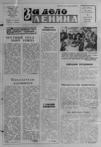 П Р Г А Н СЕВЕРНОГО РАЙКОМА КПСС И РАЙОННОГО С О В Е Т А НАРОДНЫ Х Д Е П У Т А Т О В НОВОСИБИРСКОЙ О Б Л А С Т И В ы хо д и т по вторнинам. четвергам и субботам. Пролетарии всех стран, соединяйтесь! .ЖИВОТНОВОДСТВО 523 " ф р о н т Уд а р н ы й Ч Е С Т Н Ы Й Т Р У Д З А Л О Г УСПЕХА О п р о ф е с с и и к о н ю х а т е п е р ь на с е л е г о в о р я т н е м н о го: п о с т е п е н н о т а б у н ы л о ш а д е й с о к р а т и л и с ь в к о л х о з а х д о м и н и м у м а . З а м е н и л и в е р ных п о м о щ н и к о в ч е л о в е к а с т а л ь н ы е к о н и . О н и и с и л ь н е е и в ы н о с л и в е е . Н о п о р о й н е р а з у м н о п о с т у п а ю т л ю д и , д а ж е на м е л к и х р а б о т а х и с п о л ь з у я т р а к т о р . А в е д ь л о ш а д ь к о е - гд е в п о л н е м о г л а з а м е н и т ь е го . В а с и л и й Ф е д о р о в и ч Почта- р и к о в , к о н ю х из к о л х о з а « В о с ход», в е р и т , ч т о в е р н е т с я к э т о м у ж и в о т н о м у е г о п р е ж н я я с л а в а и у в а ж е н и е . И м е н н о п о э т о м у и о с т а е т с я В. Ф . Поч- т а р и к о в в е р е н и з б р а н н о й п р о ф е с с и и в о т у ж е м н о г и е г о д ы . С е й ч а с е г о т а б у н н а с ч и т ы в а е т 60 г о л о в . И В а с и л и й Ф е д о р о в и ч в п о л н е у п р а в л я е т с я с ним . На к о н ю ш н е в с е г да п о р я д о к , ж и в о т н ы е у х о ж е н н ы е . О н и в о в р е м я н а к о р м л е н ы , н а п о е н ы . К о н е ч н о , Г л а в н о е , ч т о п о м о г а е т к о н ю ху в р а б о т е — э т о л ю б о в ь к л о ш а д и и с т а р а т е л ь н о с т ь . О н п р е к р а с н о и з у ч и л в с е п о в а д ки и о с о б е н н о с т и с в о и х п о д о п е ч н ы х , з н а е т , к а к их с о д е р ж а т ь , ч т о б ы п о л у ч и т ь к р е п к о е з д о р о в о е п о т о м с т в о . Д а и в ы р а щ и в а н и е л о ш а д е й о б х о д и т с я х о з я й с т в у д е ш е в л е , ч е м к р у п н о р о г а т о г о с к о т а . П о э т о м у в ы г о д н о у в е л и ч и в а т ь к о л х о з н ы е т а б у н ы . В п р о ш л о м г о ду, н а п р и м е р , « В о с х о д » п р о д а л 80 ц е н т н е р о в к о н и н ы . Д о б р о с о в е с т н о е о т н о ш е н и е к д е л у о тц а п о с л у ж и л о п р и м е р о м и д л я с ы н а В. Ф . П о ч - т а р и к о в а — С е р г е я . П р а в д а , он у х а ж и в а е т не з а л о ш а д ь м и , а з а т е л я т а м и , в о з р а с т к о т о р ы х с т а р ш е ш е с т и м е с я ц е в . Н о т а к ж е с ч и т а е т с я о д н и м из л у ч ш и х с к о т н и к о в х о з я й с т в а . П р и в е с ы в г р у п п е С е р г е я — в ы ш е ср е д н и х по к о л х о з у . О. С А М У Ш К И Н А . П о к а з а т е л и у л у ч ш а ю т с я П р о ш е д ш и й го д б ы л , п о ж а л у й , о д н и м и з с а м ы х з н а м е н а т е л ь н ы х д л я к о л х о з а « Н о в а я ж и з н ь » . Ж и в о т н о в о д ы не т о л ь к о у с п е ш н о с п р а в и л и с ь с г о д о в ы м з а д а н и е м по п р о д а ж е г о с у д а р с т в у п р о д у к т о в с е л ь с к о г о х о з я й с т в а , но и з н а ч и т е л ь н о п е р е в ы п о л н и л и его. Э т о г о в о р и т о т о м ч т о в н е к о т о р о й с п е т е н и п о в ы с и л а с ь о т в е т с т в е н н о с т ь т р у ж е н и к о в ф е р м з а с в о е д е л о , у л у ч ш и л а с ь и к о р м о в а я б а з а . Х о т я н у ж н о с к а з а т ь , н ы н е ш н е е л е т о б ы л о з а с у ш л и в ы м , ч т о с к а з а л о с ь на з а г о т о в к е к о р м о в , да и на у р о ж а й н о с т и с и л о с н ы х . Н о на з и м о в к у все- та к и з а г о т о в л е н о д о с т а т о ч н о с и л о с а , е с т ь с е н о . С е й ч а с д о й н о м у с т а д у в ы д а е м п о д ва к и л о г р а м м а с е н а , п я т н а д ц а т ь — с и л о с а , с о л о м у и 700 г р а м м о в ф у р а ж а на г о л о в у . В с е г р у б ы е к о р м а е щ е в д е к а б р е в ы в е з л и на ф у р а ж н ы й с к л а д . С т а р а ю т с я и н аш и д о я р к и . В Ч у в а ш и н с к о й б р и г а д е вот у ж е м 