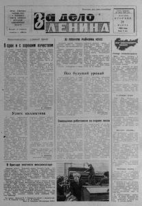 ОРГАН СЕВЕРНОГО РАЙКОМА НПСС И РАЙОННОГО СОВЕТА НАРОДНЫХ Д Е П УТ А ТО В НОВОСИБИРСКОЙ ОБЛАСТИ Выходит ПО ВТО0НИКЗМ. четвергам и су бботам. Пролетарии всех с т р а н, соединяйтесь! Газета основана __20 июля 1935 года № 38 ( 5 4 7 8 ) В Т О Р Н И К 29 . М А Р Т А 1 9 8 3 г о д а Цена 2 коп. XI ПЛЕНУМ РАЙКОМА КПСС Ж и вотноводство — ударный фронт Всрок и с хорошим качеством В трудных условиях нынешней зимовки ж ивотн оводы к о л х о з а «Б о р ь б а за мир» д ерж а т с в о е слов о. Они у в е ренно претворяют в жизнь намеченные планы. П р ош е д ший квартал принес им н о вый успех. К 24 марта к ол х оз продал г о с у д а р с т в у 980 центнеров п е рв о с ор тн о г о молока. К т ом у ж е жирность его, по сравнению . с прошлым г о д ом , значительно "увеличена. М а с тера машинного доения п о д считали свои во зм ож н о с ти и решили сд а т ь д о конца к в а р тала еще 200 центнеров продукции. О б я з а т е л ь ст в о нелегкое, но о с ущ е ствим ое , если учесть, что т о в а рн о ст ь молока в х о зяйстве возро с л а. Растел, к о торый прошел в о сновном в . феврале — марте, с п о с о б с т вовал р о с т у продуктивност и д ойного стада, И сейчас су - точный надой от коровы по * кол хоз у в среднем с о с т а в л я ет 8,7 килограмма. Эт о больше, чем на данный период прошло го года. Х о тя нужно сказать, что о б с т а н о в ка с кормами сложная. На фермах р а б о т а ю т прекрасные мастера машинного д о ения. Они ум еют беречь к а ж дый клочок сена, чтобы по- хозяйски накормить ск от. Т р у д ж и в о т н о в о д а не знает перерыва. Э т о может под27 марта животн оводы колхоза имени К. Маркса р а портовали о выполнении квар- галиного плана по прод аж е молока г о с у д а р с т в у . На приемные пункты поступило 1850 центнеров молока, что превы сило предусмотренный план на 20 центнеров. Д о конца марта о с т а е т с я три дня. Так что д о б а в о ч н о этой продукции б у д е т получено еще ^ л е е ста центнеров. Ф Бергульскне ж ивотн оводы внесли весомый вклад в в ы полнение квартального плана. Па сегодняшний день о т них поступило 1001 центнер м о лока. Э т о , конечно же, бл а годаря д о б р о с о в е с т н о м у тру - „ д у д оя р ок и скотников. М а с тером с в о е г о дела на ферме считается A. IT. ' Петрова. Много лет р а б о т а е т она д о яркой. В се гда и . в о всем яв ляется примером для других. В ее группе 25 коров. Бл а гопол учно проходит растел твердить лю ба я из д оя р ок , например, Е. А. Карецкая, кот ора я у х аж и в ае т за к о р о вами не один де ся ток лет. В о т и теперь, надои в ее группе самые высокие — по 11,6 килограмма молока в среднем получает она о т к о ровы в день. В ы с о к о несут ' звание м а с т е ро в машинного доения Л. А. Евдокимова , Е. Т. П о тапова, М. П. Макаркнна. Их т ру д олю бие сл ужи т хо рошим примером для остальных членов коллектива. Нелегко раз даивать п ерво телок. Но Т. Н. Банникова своим старанием сумела д о биться т о г о , что сейчас надаивает о т каждой из них и среднем почти по 12 ки лограммов молока в день. Па Ургульской ферме ра б о т а ю ! Г. Г. Р.ябцев и В. В Гламаздин. В сякое дело в ж и в о т н о в о д с тв е им знакомо. Справляются передовые с к о т инки и с о снабжением д о й н о го гурта кормами. А. 11. Гуляев нынче первый год выполняет обязанности скотника, по уж е сейчас ви д но, что человек он д о б р о с о вестный. Вместе с П. И. Ч е р никовым н коллективом д о я рок ст ремится успешно з а в е р шить т р у д н у ю зимовку, В. САЛ МИ Н , предс едатель колхоза. животных. Х о р о ш о р а б о т а е т и 