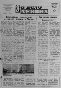 ОРГАН СЕВЕРНОГО РАЙКОМА КПСС И РАЙОННОГО СОВЕТА НАРОДНЫХ ДЕПУТАТОВ НО ВОСИБИ РСКОЙ ОБЛАСТИ Выходит но вторникам, четвергам и субботам. Г а з е т а основ ана 20 июля 1935 г о д а № 53 (5 4 9 3 ) ВТОРНИК 3 М А Я 1983 года Цена 2 коп. Первомайская демонстрация на Красной площади в Москве З е м л я в цвету и весеннем о б новлении, з ем ля мира и т р у д а , а не р а зруш ений и п ож ар ищ . С у дьб а нашей планеты — в р у к а х человека. Труд , мир, май! П р о л е т а р и а т слил воедино сл о в а, с та вш ие символом борьбы против наси ли я и угнетения, борьбы з а п обе ду б р а т с т в а и свободы. « Д в а мира с то я т д р у г против д р у г а в этой в еликой борьбе: мир к а п и т а л а и мир тр у д а » , — писал В, И. Ленин в п р о к л а м а ц и и «П е рвое М а я » в 1904 г о ду. Она была н ап е ч а т ан а от имени Ц К и Ц ен т р а л ь н о г о о р г а на Российской социал - демократической раб очей п артии после вто р о го с ъ е з д а Р С Д Р П . О т д ек р е та о мире на з а р е С о в е т ской власти до п рограммы ми ра на в осьмиде сяты е годы, п ри нятой XXVI съ ездом КПСС. — та к о в а д ис танция пути, прой денного партией коммунист ов в борьбе з а чистое небо н а д всей планетой. Голубым шатром р ас пр о с тер лось оно н ад ожившей весен ней землей. О к р аш ен н а я утрен ней з а р е й , гигантским ярким цветком п р е д с т а л а 1 М а я К р а с ная площадь. Н а три бу н ах —■ ветераны п а р тии и т р у д а , участники О к тябрь ской революции и Великой Оте честв енной войны, п р е д с т а вители партийных, советских и общес твенных организаций . Р я дом с у д а р н и к ам и первых п я тилеток — передовики производства наших дней. Здесь и многочисленные з а р у б е ж н ы е гости. В о з гл асам и «Ура!», бурными, долго не см олкающими а п л о дисмен тами москвичи и гости столицы сердечно приветствуют руководителей Коммунистической партии п С оветского г о с у д а р е в а . Н а Ц е н т р а л ь н у ю трибуну М а в зо л е я поднимаются товарищи Ю. В. Андропов, Г. А. Алиев, М. С. Г орбачев, В. В. Гришин, A. А. Громыко, Н. А. Тихонов, Д . Ф. Устинов, В. И. Д олги х , B. В. Кузнецов , Б. Н. По н ом арев, М. С. Соломенцев, М. В. Зимянин, И. В. Капитонов , К. В. Р у с а к о в , Н. И. Рыж ков . 10 часов ут р а . Бой к р е м левских ку р анто в сменяют звуки ф ан ф а р , в озвещающ их о н а ч а ле п р азд ни к а . Н а р о д и п ар ти я едины. И в этом — сила советского строя. В обрамлении к ум ача — слов а Г ен ера лыю го с е к р е т а р я Ц К КПСС Ю. В. Андропова: «...Цели и з а д а ч и , поставленные пер ед собой партией , точно в ы р а ж а ю т чаян и я , потребности всех со ветских людей». Под звуки торжеств енного ма рша на площадь вступ аю т представи тели районов столицы. Впереди — зн ам я г о р о д а -г е р о я Москвы. Н а д колонной станк острои тель ного з а в о д а имени Серго О р д ж о никид зе — т р а н сп а р а н т с н а д писью: З а д а н и е партии — выполним! Досрочно поставим обо р у до в ан и е для п роизвод ств а к ом байн а «Дон-1500»!». В к а нун П е р в о м а я з а в о д н а ч а л и з готовление шести ав том а т и ч е с ких линий д л я харъиовскопх «Серпа и молота», гд е будут вып уск ать двигатели д л я к ом байна. «Трудящиеся Советского Союза! Выше з н а м я социалистического соре внов ания з а выполнение и перевыполнение по всем п о к а з а т е л ям плана 1983 года, з а д а н и й од ин н ад ца то й п я т и л е т ки!» — з в у ч а т над , площ адью сл ова Первомайского П ризыва ПК КПСС. Н а т р а н сп а р а н т а х :— строки рапортов ко л л ек тив а а в т о з а в о д а имени Л и х а ч 