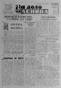 ОРГАН С Е ВЕ Р НОГ О РАЙКОМА КПСС И Р АЙОННОГ О СОВЕТА НАР ОДНЫХ ДЕПУТАТОВ НОВ ОСИБ ИР СКОЙ ОБЛАСТИ Выходит по вторникам, четвергам и с убботам. Пролетарии всех стран, соединяйтесь ! 4 1 * 7 7 1 U Г а з е т а основ ана 20 июля_1935^ года № 66 (5 5 0 6 ) Ч Е Т В Е Р Г 2 И Ю Н Я 1 9 8 3 г о д а Цена 2 коп. ТЕМПЫ И КАЧЕСТВО ГЛАВНОЕ НА СЕВЕ! О Б Р А Щ Е Н И Е Ж И В О Т Н О В О Д О В К О ЛХО ЗА «ПАМЯТЬ Л Е Н И Н А » КО ВСЕМ Т Р У Ж Е Н И К А М ФЕРМ РАЙОНА Бюро Северного р айком а КПСС, исполком районного Совета народных депутатов , президиум рай кома профсоюза ра ботников сельского х о зяй ств а и бюро райкома ВЛКСМ рассмотрели итоги соревновании ко лхозо в района на несение - полевых р а б о та х по состоянию на 30 .мая 1983 года п постановили: Присудить первое место колхозу имени М. Горького (председатель № И. Савчиц, се крета рь п арторганизации Г. Е. Аденский, председате ль се льсовета П. Ф. Тимкин, председатель профкома Н. И. Лещинский, секретарь ком- сомольской организации М. Т а р а к а н о в а , главный агроном ▼ j И. А. П а н а р и н ) , выполнившему план сева всех яровых на 63.4 процента, яровых зерновых — на 100, выполнившему план в змета паров на 100 процентов. Второе место присудить колхозу « П а м я т ь Ленина» (п редсе да тель М. В. Л у к аш о в , секретарь п арткома Я. Д. Д ьячук . председате ль сельсовета П. А. Грин, п редседатель профкома А. П. Данченко , се крета рь комсомольской о р г а низации А. Маркович, главный агроном В. М. Ш рейде р ), выполнившему план сева всех яровых на 75,1 процента, яровых зерновых — на 100 процентов. В колхозе поднято ■ 540 гек таров паров из плана 723. Третье место присудить колхозу « Н о в а я жи зн ь» (п редсе да тель А. А. Яковлев . се кретарь п арторганизации Т. Ф. Аверьянов , председате ль сель совета Ф. Е. Филиппов, председате ль профкома Н. А. Еремеев, секретарь к ом со мольской организации Н. Курнева , главный агроном А. К- П о с т ), выполнившему план сева всех яровых на 79,9, яровых зерновых — на 90,6 процента. П о д н ято на 30 ма я 185 гек таров паров. В социалистическом соревновании зв еньев и о тр яд о в , з а н я т ы х на весенне - полевых р а б о т а х , первенство п ри судить комплексному о тр яд у к о л х о з а имени М. Горького (н ачальник о т р я д а И. А. Архипов), посеявш ему . 100 п р о центов зерн овых и 33,1 процента силосных культур. ш______________ ★ ★ ★ . ____________ щ Для бу д ущ ей зимовки скота 30 ма я колхоз «Н аш а Родина» з а к о н ч и л сев зерновых. Л егл и в землю семена .овса на 711 ге к т а р а х в Большекулнковской брига де и пшеницы на 410 гект а р а х в Новоникольской. Хорошо п отрудилось на с е в е звено к а н д и д а т а в члены партии, передового механизатора Егора Михайловича Д и л я . Р а б о т а л о оно питыо агр е г а т ам и , которы ми у п р ав л ял и молодые тракто-. рнеты Сергей И в анов и Нико лай Чикунов, а т а к ж е т р а к т о ристы с богатым опытом Д. А. Л уш о в н М. Д. Абдрахман ов. На по дво зке семян были з а н я ты В, Федоров и В. Аксеньев. В полной готовности, в резерве, находился сам о св ал М. С. Хлопотова . Это па тот случай, если произо йдет з а д е р ж к а с подвозом семян* к агрегатам. По окончании сева яровых звено в полном составе переех ало на поля, отв ед енные под кормовые культуры. Сейчас оно з а с е я л о 120 гек таров по дс о л нечника. Эту ж е раб о ту в Н о воникольской бр иг а де вы п о л н я ет звено В ладими ра В а си л ь е в и ча Тучкова. М е х а н и з а т о р а м еще предстоит з а с е я т ь 250 гек таров кукурузой. На п аровом поле на четы