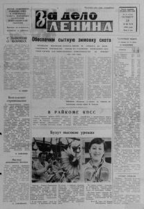 Газета основана 20 июля 1935 г о д а ЧЕТВЕРГ 2 и ю н я 1983 года Цена 2 коп. ОРГАН СЕ ВЕ Р НОГ О РАЙКОМА КПСС И РАЙОННОГО СОВЕТА НАРОДНЫХ ДЕПУТАТОВ НОВОСИБ ИР СКОЙ ОБЛАСТИ Выходит по вторникам, четвергам и субботам. П ролетарии всех стран, соединяйтесь! С З А Б О Т О Й О КО РМ АХ Обеспечим сы тную зимовку скота Суточные надои от коровы на 21 июня ОБ Р АЩЕНИЕ ПОЛЕВОДОВ КОЛХОЗА ИМЕНИ М. ГОРЬКОГО КО ВСЕМ РАБОТНИКАМ ПОЛЕВОДСТВА РАЙОНА ПО УСПЕШНОМУ ПР ОВЕДЕНИЮ ЗАГОТОВКИ КОРМОВ ДЛЯ ОБЩЕСТВЕННОГО ЖИВОТНОВОДСТВА НА ЗИМОВКУ 1983—1984 ГОДА - В к о л х о з е «Новая жизнь» н елегко п р о х о д я т зимовки скота . II основные трудности связаны с недостаточной кормовой б а зой П о э т ом у в хо зя йст в е решили поправить п ол ож ен и е с помощью АВМ -0 ,6 5 . Пуск агрегата в эксплуатацию позволит за готовку кормов вести вне зависимости от капризов п о го ды Сейчас на строительную площ адку за в е з е н о о б о р у д о в а н и е . Монтировать агрегат намерены шефы колхоза из Новосиби рска. Они у ж е наметили об ъ ем р а бот Пока не н а л аж ен о п р о и зв о д ство гранул п внтаминно - т р а вяной муки, животноводы н а деются получать высокие надои подкармливая до й но е с т а д о Д ля этой цели в хозяйст ве посеян овес с соей на тр идцати гектар ах, часть посевной площади зан ят о донником и рапсом В июле коровы б у д у т получать питательный корм. О. УХОВА Возглавляет соревнование Новым трудовым п политическим подъемом о зн ам е н о ван июньский (1 983 г ) Пле п у м ЦК КПСС П о д р у к о в о д ством партийного бюро, правления, профкома п специалистов к ол хоза механизаторы хорош о и в срок подготови ли сельскохозяйственную т е х нику, в к о л х о зе имелись высококачественные семена, были сф ор ми р ов аны : звенья на всех видах весенних п о л е вых работ, укомплектованные опытными кадрами, с о з даны н е о б х о д и м ы е - условия для тр уда , способст вующие успешном у пров едению сева яровых культур в лучшие а г ротехнические сроки и с х о рошим качеством, несмотря на трудные условия работы, вызванные майскими х о л о д а ми З а л о ж е н а основа кормовом базы для дальнейшего развития о бщ ественного ж и вотнов одства В дни, когда в столице нашей Родины Москве п ро ходили Пленум ЦК, КПСС и сессия В ер х о вн о г о Совета СССР, к о л х о з ра портовал о выполнении пол у го д о в о го плана п р одажи г о су д а р ст в у животноводческой продукции В н астоящ ее время з а в е р шается подготовка всей т е х ники дл я заготовки грубых и сочных кормов. Через п я тидн евк у агрегаты выйдут на сенокосные угодья Учитывая накопленный в прошлые годы опыт проведения важ н о й с ел ь ск о х о зяй ственной кампании, мы, ч л е ны механизированного отр я да , учитывая свои в о з м о ж ности, техническую осн ащ ен ность, наличие сенокосов, обеспеченность всем н е о б х о димым д л я нормальной р а боты, применяя прогрессивную оплату тр у д а , испольОбращение о б с у ж д е н о зу я силу социалистического соревнования , о б я з у ем с я з а готовить не менее 18 тысяч центнеров сена' 50 тысяч центнеров силосной массы, заскирдовать всю солому , з а сыпать н е о б х о д и м о е количество зе р н о ф у р а ж а . что п о з волит иметь в общей с л о ж ности на начало зимовки скота не менее 22 центнеров кормовых единиц на у с л о в ную голову Все работы проводить в лучшие сроки и с хорошим качеством Выполнить плановые з а д а н и я гг о- циалнстпческие о б я з а т е л ь с т ва Мы о д о б р я ем и п о
