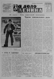 О Р Г А Н С Е В Е Р Н О Г О Р А Й К О М А К П С С И Р А Й О Н Н О Г О С ОВ Е ТА Н А Р О Д Н Ы Х Д Е П У Т А Т О В Н О В О С И Б И Р С К О Й О Б Л А С Т И Вых о ди т по в т о р н и к а м , ч е т в е р г а м и с у б б о т а м . Пролетарии всех стран, соединяйтесь! вяшшяшшшшшшяяшш Газе та основана 2 0 июля 1935 г о д а № 76 (5516 ) СУББОТА 2 5 и ю н я 1983 года Цена 2 коп. 2 6 и ю н я — Д е н ь с о в е т с к о й м о л о д ш н ш : П л ак ат ху д ожн ик а Л . Бельской) и В. Потапова. И здательство «П л ак ат» . комсомольского долга Чувство . 26 июня молодежь нашей страны о тмечает свои праздник. В едином строю а в ан г а р д а моло деж и идет Н овосибирская о б л а с т н а я ком сомоль ская ор г ан и з ац и я , маленькую крупицу ко торой с о с т а в л я е т комсомольская о р г ан и з ац ия Северного района Р у к о в о дс тву я сь главной з а д а чей, выдвинутой XXVI с ъ е з дом партии, комсомол сп особствует формированию молодого поколения, политически а к т и в ных. знающих дело, любящих труд, умеющих р аб о тать Сви детельством тому — общес твен но - полити ческая а т т е стац и я участников Ленинского за ч е т а , проведенная в я н в ар е — ф евр ал е этого года. Значком «Ленинский зачет» н агр аж дены лучшие, добившиеся высоких п о к аз а тел ей в производстве и общественной жизни. I Тол девизом «Всей ко м сомольской организацией Ленинский зачет — «на отлично»!» прошла аттестация в учительской о р г а низации Северной средней школы и финансово - банковской Лучшими в аттестации стали Сергей П рокофьев, Пе тр М ихай лов. Николай По р т н о в. Н а д е ж да Тимофеева , Николай Р ай к о в , Р ита Ягусон. Комсомол — надежны й резерв Коммунистической партии В настоящее время в сос тав е к о м сомольских организаций , к ом со мольского ак тив а р а б о т а е т с вы ше 60 молодых коммунист ов В их числе — Игорь Б я гу то из « П а мяти Ленина», Геннадий Kv p- иев из «Новой жизни». В ал ен тина Прок офьева из быткомби- пата . Суметь повести за собой м о л о деж ь — вот, пожалуй , г л а в ная черта Настоящего комсомольского в о ж а к а . И это у д а е т ся Тать ян е Ощепковой — с е к р е тарю комсомольской организации П.МК тр еста «Мелноводстрой», Алексею Г р аж д ан ки н у из «Транс- сельхозтехники», Василию 111ак- манову из райсельхозтехниктг, Александру Б е л о в у из. колхоза им К Марк са, Н а д е ж д е К ур невой из .«Новой жизни» Мi)i жители района сель ск о хозяйственного направления , II период полевых работ — о т в е т ственная у нас пора. С пристальным вниманием следим мы за работой комсомольски - молодежных звеньев, в о з г л а в л я е мых В Григорьевым, К С ередой— «Заветы Ильича», Н Петровым— «Восход», А. Антипкнным—« Б о р ь ба за мир» 11 в ж и в о тно в о д ст ве есть у нас свои маяки Это Н а д е ж д а Соколик из к о л хоза им М. Горького, Н а т а л ь я Шихалева из «Памяти Ленина», В Ожегова — из ко л х о з а имени Калинина. Неустанно светит «Комсом ольский прожектор» в. ком сомольской о рганизации колхоза « З а веты Ильича», в состав е к о т о рого Елена Л а п е н к о — н а ч а л ь ник «КП», В. Вильшкерст, В Григорьев, Г Агишев Их рейды всегда оперативны и с в о евременны. «Мой тр уд вл и в а е т с я в труд моей республики»- - - под- таким девизом в летней трудовой четверти примут уч астие более 500 школьников По в ы р а щ и в а нию зерновых п р о до лж а т р а б о ту бригады Бе ргульской и Верх- Кплсиоярской средних школ - Школа! Именно здесь под р у ководством тал антл и вы х п е д а г о гов формируется г р а ж д а н с к а я ли