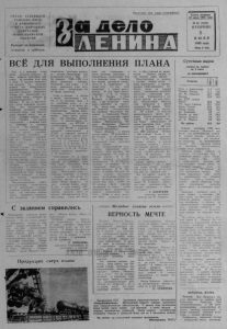 I ОРГАН С Е В Е Р НО Г О РАЙКОМА КПСС И Р АЙОННОГО СОВЕТА Н АРО ДНЫХ ДЕПУТАТОВ Н ОВ ОС ИБ ИР СК ОЙ ОБЛАСТИ Выходит по вторникам, четвергам и с у б б о т а м . Пр олетарии всех стран , соединяй тесь ! Газета основана 20 июля 1935 года № 80 (5 5 2 0 ) ВТОРНИК 5 и ю л я 1983 г о д а Цена 2 коп. ВСЁ Д Л Я ВЫПОЛНЕНИЯ П Л А Н А К а к и в прошлые годы перед началом сенокоса. 31 м а я , провели партийное с о б рание, на ко тором ш ла речь о роли и з а д а ч а х коммунистов к о л х о з а на з а го т о в к е кормов д л я общес твенного ж и в о т н о в о д с т в а . Д о к л а д ч и ком был молодой коммунист , то л ьк о что прошедший к а н д и д атс ки й с т а ж , агроном по корм о пр о и зв о дс тву Н В Обухов И он, и вы с тупаю щие з а те м то в ар ищ и подчеркнули, что м е х ан из а то р ам и х о з яй с т в а з а л о ж е н а основа кормовой базы д л я п р ед сто ящей зимовки ск ота , что ве- сснне - полевые раб о ты п р о х о д я т успешно, что к олхоз с п р а в л я е т с я с план ами посев а зе рновых и силосных к у л ь т у р . По впереди не менее в а ж н а я с е ль с к о х о зяй с т в ен н ая с т р а д а — сено у б о р ка, к о т о р а я потребует от к а ж д о г о большого н ап р яж е - * пня сил Г л авно е д ля всех т о г д а ста ло — закончить подготовку к о р м о з а г о т о в и тельной техники к сенокосу, у к ом пл ек то ва ть звенья и о т ряд . с о з д а т ь в целом н о р мальные условия • д л я т р у д а м е хан иза торов, р а з р а б о т а т ь систему оплаты т р у д а , усло вия социалистического со р е в нования, определить меры морального и ма териального поощрения, окончательно оп ределить ся по всем о р г а н и з а ционным вопросам и во пр о сам ма ссово - политической р а б о ты в отряде, М еханизированный о тряд , в о з гл а в ля ем ы й коммунист ом Н А Архиповым, сенокос в стретил хорошо по д го то вл ен ным Он выступил инициатором районного с о р е вн о в а ния полеводов з а успешное проведение за г о т о в ки к о р м о в, з а полное обеспечение ими к олхозного с т а д а с тем. чтобы з и м о в к а 1983— 1984 года была проведена успешно Коллектив д а л слово: к 25 июля выполнить план з а г о то вки сена, з а с к и р д о в а в его 18 тысяч центнеров Силы в зв ен ья х и о т р я д е в целом р ас ставлены так , что и на ко совице т р а в , и на сгребании сена, и на сволакив ании, и на метке р а ботают коммунисты, опытные м еханизаторы. П е р во е звено, например, р а б о т а е т на св а л е тр авы З д е с ь шесть а г р е г а тов: д в а т р а к т о р а « К а з а х стан» с тр ехбрусными се нокосилками, два МТЗ-50 с д в ух бр усны ми полунавесны- ми, один МТ-80 с навесной роторной сенокосилкой и ДТ-2 5 с навесной косилкой КС-2,1 В з в ен е—восемь чело век Это трак торис ты и маши нисты Н А Степанов. В. М Степан ов, Н И Вдовин. Н П. Ни колае в, А. Л Соколик. И Е Фомпшов и В. Ф Легачен Звеном р у к о в о д ит коммунист А В Васильев Член партии И. А Архипов в о з г л а в л я е т звено. Работающее на сгребании сена Оно т а к ж е обеспечено всей необходимой техникой — т р а к т о р ам и и с е ль х о зм аш и нами. Используем здесь г у сеничные тр ак то ры и грабли с з а х в а т о м в 14,5 метра, что п о зво л я е т быстро и к а че ст венно у б р а т ь п лощ адь . д е л а т ь длинные ровные валки . А это, в свою очередь, обеспечивае т необходимый темп работы третьему зв ену, з а н ятом у формированием б у д у щих ск ирд . Сюда мы п о ставили три гусеничных и шесть колесных т р а к т о р о в с то лкающими в олокуш ам и К а к и в прошлые годы, главным н а д звеном поставили к о м м у ниста И. Б . Л ещ и н ско