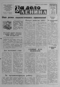 Пролетарии всех стран, соединяйтесь! № 86 ( 5526) ВТОРНИК 1 9 и ю л я 1983 года Цена 2 коп. ОРГАН СЕВЕРНОГО РАЙКОМА КПСС И РАЙОННОГО СОВЕТА НАРОДНЫХ ДЕПУТАТОВ НОВОСИБИРСКОЙ ОБЛАСТИ Выходит по вторникам, четвергам и с у бботам . Газета основана 20 июля 1935 года Шире размах социалистического соревнования! ЗВЕ З ДА ТРУДОВОЙ СЛАВЫ ЗАЖЖЕНА В ЧЕСТЬ ЗВЕНА ЛЕОНИДА ТРОФИМОВИЧА ЦЫБАКОВА ИЗ КОЛХОЗА «ПУТЬ К КОММУНИЗМУ». ЗАГОТОВИВШЕГО 128 т о н н в и - , 4 - ТАМ ИНПО ТРАВЯНОЙ МУКИ БОЛЬШЕ ЦЕННОГО КОРМА ДЛЯ КОЛХОЗНОГО ЖИВОТНОВОДСТВА! РАБОТАТЬ НА АВМ БЕЗ ПРОСТОЕВ! З а 1 3 дней у д а р н о г о м е с я ч н и к а в к о л х о з а х р а й о н а з а г о т о в л е н о 1 1 1 4 6 6 ц е н т н е р о в с е н а Ски рдование идет более быстрыми темпами, чем в прошлом году: тогда механиза торы з апас ли сена к этой д а т е менее 81 тысячи центнеров. СОРЕВНОВАНИЕ НА ЗАГОТОВКЕ КОРМОВ ВОЗ* ГЛАВЛЯЮТ КОЛХОЗЫ ИМЕНИ М. ГОРЬКОГО (п редседатель А. Н Савчнц, секретарь партбюро Г Е Алснекий), «НАША РОДИНА» (председатель Г. Н. Х ру щев, се кретарь партбюро Н. А. И в а н о в ) , ИМЕНИ КАЛИНИНА (председатель М С. Сорокин, се кретарь партбюро И. И. З а к а м с к и й ) . ПО - ПРЕЖНЕМУ ОТСТАЮТ КОЛХОЗЫ ИМЕНИ К. МАРКСА (председатель М Ф С тарков , секр етарь п а р т бюро М Е. Г олубцов ), «ПУТЬ К КОММУНИЗМУ» (п ред седате ль Н, А. Ипатьев , секретарь п артком а Н . Ф. О с т а нин), «НОВАЯ ЖИЗНЬ» (председатель А. А. Яковлев , се кретарь партбюро Т. Ф. А в ер ь ян о в ). Для колхозного стада Пленум райкома КПСС Многолетние тр авы в кол хозе «Б о р ь ба з а мир» были посеяны на 180 гек тар ах И сейчас их убо р ку вед ут оба звена сенозаготовителей- из первой и второй бригад По п я тн а д ца ть центнеров сена с г е к т а р а берут здесь полеводы Трав а скошена полностью Но ее быстрой уборке помешали дожди А вот день 14 июля выд а л с я солнечным, поэтому звено А М Антипкина р | - ботало по - ударному М еханизаторы. з ас ки р до в ал и 250 центнеров сена вмес то 220 предусмотренных н о р мой Споро шла метка и теперь на счету звен а 2900 центнеров за готовленного корма Всего ж е к а ж д о м у из двух коллективов полеводов п р е д стоит поставить в стога по 5000 центнеров сена А М Антипкин с тов арищам и д о л жны справитьс я с этим п л а ном дней через десять Все механизаторы понимают в а ж ность и ответств енность горячей сенокосной поры. и Исполком Северного районно го Совета народных депутатов и рай ком профсоюза работни ков госучреждений рас смотрели итоги социалистического соревнования • сельских Советов з а первое полугодие. В св язи с тем, что сельские Советы не выполнили все у с л о вия соревнования , было решено первого места не п р и с уж д а т ь . к а к тольк о позволяют погодные условия; т р у д я тся с полной отдачей сил В Ургульской бригаде з а готовку кормов к зимнему периоду в ед ет звено И А Санникова ’ Оно с нач ал а кампании см етало 1700 центнеров сена. Основную часть необходимого к орм а колхоз намерен в зять с болота, где у р о ж а й ность т р а в равна 20 центнерам с гек тара Там на скашивании используе тся г у сеничный тр ак то р С де рж и в а е т темпы раб о т н ех в атк а техники В ч астности, нужны колесные т р а к т о ра Приходится п ереобору д ова ть одни и те ж е на св ал и на подбор тр ав А это — потери времени, умень шение производит ельности т руда П р а в д а , недавно в х о з я й ство прибыли два колесных т р а к т о р а — из «Сельхозхи- мии» и райпо Они будут хорошим подспорьем в р а боте на лугах А вто р