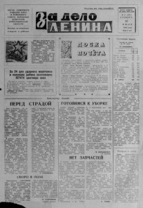 Пролетарии всех стран, соединяйтесь^ ОРГАН СЕВЕ РН О ГО РАЙКОМА КПСС И РАЙОННОГО СОВЕТА НАРОДНЫХ ДЕПУТАТОВ НОВОСИ БИ РСКО Й ОБЛАСТИ Выходит по вторникам, четвергам и с у бботам . З В Е ЗД А ТРУДОВОЙ СЛАВЫ ЗАЖЖЕНА В ЧЕСТЬ ЗВЕНА АНАТОЛИЯ АЛЕКСАНДРОВИЧА ЯКОВЛЕВА ИЗ КОЛХОЗА ИМЕНИ КАЛИНИНА, ЗАСКИРДОВАВШЕГО ОКОЛО 6000 ЦЕНТНЕРОВ СЕНА. МЕХАНИЗАТОРЫ! ПУСТЬ ДЛЯ ВАС КАЖДЫЙ ИЗ ОСТАВШИХСЯ ДНЕЙ УДАРНОГО МЕСЯЧНИКА ЗАГОТОВКИ КОРМОВ БУДЕТ ВЫСОКОПРОИЗВОДИТЕЛЬНЫМ! За 24 дня ударного месячника в колхозах района заготовлено 157 4 7 4 центнера сена Ни одни и з ко лхозо в дневного з а д ан и я за период с 25 по 29 июля не выполнил. Но наибольшую прибавку к з а с ки р до в ан н ом у д а л колхоз «ВОСХОД» (председатель В II. Д р а г а н , се крета рь п артбюро М. П. Трибуналов ) — по 433 центнера в день. Но - прежнему медленно идет за г о т о в к а сена в колхозе « Б О Р Ь Б А ЗА МИР», где в день мета ли в среднем по 50 центнеров. Решением совета РАНО и прези диума рай ком а профсо юза работник ов сельского х о зяй с т в а от 26 июля 1983 года на районную доску Почета з а н о с я т с я : Колхоз имени Максима Горького (п редсе да тель А. Н. Савчпц, с е к р ета р ь п ар то р г ан и з ац ии I'. Е. Аленский, пред с е да тел ь сель сов е та Г1. Ф. Тимкин, п р е д с е д а т е л ь профкома II. И. Лещинский, се к р е т а р ь ком сомольской организации М. Т а р а к а н о в а , главный агроном Н. А. П а н а р и н ) , выполнивший план заготовки сена на 100 процентов . Колхоз «Наша Родина» (п р ед се да тел ь Г. И. Хрущев, се крета рь парторг ан и з ац ии Н. А. Ив анов , председатель се льсовета И. А. Грмц, п ред сед ате ль профкома и главный агроном С. В. Туровец , с е к р ета р ь ком сомольской о р г ан и зации А. С тепин ), за готовивш ий сена 102,1 процента к плану. Колхоз имени Калинина (п р ед се да тел ь М. С. Сорокин, се крета рь п ар то р г ан и з ац ии II. И. З а к а м с к и й , председатель сель совета С. Д. Мизев, главный агроном А. Н. П а н а р и н ) , з аготовивший 96,3 процента сена к плану. ★ ★ ★ ______________ Я Н а в ст р е ч у ж ат ве ПЕРЕД Хоть и сч итается, что р а бота в сельском х о зяй ств е — это единый, ^ п р е к р а щ а ю щийся процесс, уборочная с т р а д а ста вит перед з ем ле дельц ам и свои определенные з ад ач и . Убра ть хлеб, со х р а нить и качественным з а с ы пать его в з а к р о м а г о с у д а р ст в а — кровное дел о се ль ского т р у ж е н и к а . В эти дни во всех х о зяй с т в а х района формируются зв енья ком бай неров, р а зр а б а т ы в а ю т с я у с л овия социалистического со рев нования , п рове ряетс я гото вность ком байнов , зерносу- ~ шилок, ск ладских помещ ений. В кол х о з е « Н о в а я жизнь» на уб о р ке у р о ж а я в первой бр иг а де буде т р а б о т а т ь Комсом оль ск е - м олодежное з в е но Геннадия К у р а е в а . П р а в ление ко л х о з а в о з л а г а е т на него большие н а д еж д ы , поск о льк у все члены звена х о рошие специалисты и положительно з а р е к ом е н д о в а л и се бя на предыдущей жатве . В течение двух л е т звено Г. К у р ц е в з у д е р ж и в а л о пер венство среди комбайнеров к о лхоза , и в районном с о ревновании комсомольско- м олодежных зв ен ьев оно т о ж е зан и м а л о клас сные места, причем с продвижением вперед. В 1981 — третье место, в прошлом — второе. Р а с с к а з а т ь о членах звеСТРАДОЙ т о в к а к нынешней ж а т в е мы попросили зв еньевого Г. Кур- цева. — На строен и е у р е б я т х о рошее, д а и нет причин д ля волнений. Комбайны п о д го товлены — хоть сегодня в поле. Я т о ж е опробов ал свою «