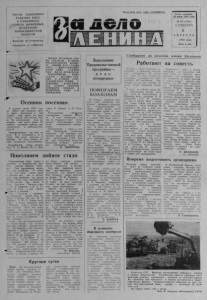 Пролетарии всех стран, соединяйтесь! ОРГАН СЕВЕРНОГО РАЙКОМА КПСС И РАЙОННОГО СОВЕТА НАРОДНЫХ ДЕПУТАТОВ НОВОСИБИР СКОЙ ОБЛАСТИ Выходит по вторникам, четвергам и субботам. Г а з е т а основана 20 июля J_935 года № 94 (5534 ) С У Б Б О Т А 6 А В Г У С Т А 1983 года Цена 2 коп. З ам еч ател ьны е люди ж и в у т и т р у д я т с я в Алексеевской бри г а д е к о л х о з а «П а м я т ь Л е н и на». Они выращиваю т м о л о д н я к для х озяй ств а . И сейчас у нас тр и гу р та . Своих коров в б ригаде нет, вот и д о с т а в ляю т нам молодня к из других бригад. Один гурт, численностью в 172 головы, мы пасем в Усть - Ургульке. П а стухи зд есь — М. Л . З ащ и т о в и И. А. Г а неев. В ст а де у них бычки- р а с т р а т ы и телочки. Усть - Ургулька — деревенька ма ле нь к а я , дворов пять, п о этому и фермы т ам нет. М. Л. З ащ и т о в и И. А. Гапее в пасут те л я т , а зимой р аб о таю т либо в З а б о е вк е , либо в другой бриг а д е к олхоза . Л ю ди они с т а р а тельные. Это еще раз по каз а л о в звешив ание м олодня ка в июле. К аж ды й из т ел я т п рибавлял в весе за су тк и в среднем по 826 граммов. Гурты мы не п одкармливаем до самой осени; но привесы неплохие. Этому способствует то , что выпаса у нас хорошие. Особенно добрые привесы ' в дву х гуртах , з а которыми у х а ж и в аю т П. Ф. Питюков, К. С. Ильиных, Г. Б. Шило, И. С. Плотников, П. С. Глинкин. На их попечении 452 головы, из н и х ' 227 нетелей и ремонтных телок. Н е да вн о ветврач х о з я й ств а с д ел ал необходимый сани- ^ Г а р н о - профилактический осмотр гуртов и пришел к выводу, что Минск. Н а круглосуточный гр аф и к работы перешли се годня все элеваторы Б е л о руссии. Э с таф е ту массовой уборки хлебов приняли се верные районы республики, где на хлебные трассы вы ведены большегрузные а в т о поезда. Многие из э ки паж ей не уступ аю т в работе В а силию М аксимчуку из РечицЗ В Е З Д А ТРУДОВОЙ СЛАВЫ З А Ж Ж Е Н А В ЧЕСТЬ МЕХАНИЗАТОРОВ КОЛХОЗА ИМЕНИ XXII СЪЕЗДА КПСС, ВЫПОЛНИВШИХ ПЛАН СЕВА ОЗИМОЙ Р Ж И НА 65 ПРОЦЕНТОВ . ТРАКТОРИСТЫ! ВАША ЗАДАЧА - ПОСЕЯТЬ О З И МЫЕ В ЛУ ЧШ И Е А ГРО Т ЕХН И Ч ЕС К И Е СРО КИ , С ХОРОШИМ КАЧЕСТВОМ, ЧТО СТАНЕТ ЗАЛОГОМ ХОРОШЕГО УРОЖ АЯ В ЧЕТВЕРТОМ ГОДУ 11 -И ПЯ ТИЛ ЕТКИ . это будут хорошие коровы. Ч а с т ь нетелей у ж е случена и р ас тел о ж и д а е т с я в октябре . Есть чем гордить ся скотника м : они вырастили крепкое пополнение д л я дойного ст а да . Всю т рудовую ж и зн ь работаю т на ферме ГГ Ф. Питюков и К. С. Ильиных. И никогда в их ад р ес небыло нареканий. В июле им был присвоен в т о рой класс жи вотновода . Обычно мы о тп р ав л я ем в бригады выросший молодняк. А вот нынче- нетелей оста вим у себя . Б у д ем восс т а н а вл и в а т ь дой ный гурт. Д л я этой цели и четырехрядный коровник д о с т р а и ваем. Строите ли обещали сд ать его к н а ч а л у стойлового п ерио да. Тогда женщинам буде т р а бота . Потре бую тс я д оярки , т е лятницы . В я н в а р е рассчитываем д ля увеличения дойного с т а д а в будущем году случить еще гр у п пу телок Третий год р аб о таю т наши ж и во тно во ды без п а д еж а . Ны н че вот только сд ал и четырех вы б рак ованных тел я т , т а к что, д у маю, сможем и дойное с т а д о сод е р ж а т ь в поряд ке. Одно т о л ь ко тревожит: корпуса старые. Один совсем з а в а л и л с я , а два других требуют ремонта . Сейчас их начали д елать , д а м а л о в а т о места буде т д ля всех г у р тов. Поэтому нужно р а с ш и р я ть строительство помещений. О. Южанина, з а в е д у ю щ а я фермой. кой автоколонны, который выступ