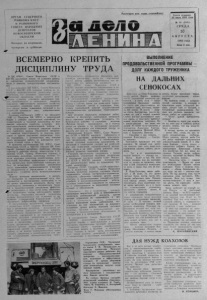 О Р Г А Н С Е В Е Р Н О Г О Р А Й К О М А К П С С И Р А Й О Н Н О Г О С ОВ Е Т А Н А Р О Д Н Ы Х Д Е П У Т А Т О В Н О В О С И Б И Р С К О Й О Б Л А С Т И Вых о ди т по в т о р н и к а м , ч е т в е р г а м и с у б б о т а м . Пролетарии всех стран, соединяйтесь ! Г а з е т а основана 20 июля 1935 года № 95 (5 5 3 5 ) С Р Е Д А 1 0 А В Г У С Т А 1983 г о д а Цена 2 коп. В С Е М Е Р Н О К Р Е П И Т Ь Д И С Ц И П Л И Н У Т Р У Д А В ЦК КПСС, Совете Министров СССР и ВЦСПС рас смотрен вопрос об усилении работы пс укреплению социалистической дисциплины т руда и приняты соотв етствующие постановления. В постановлении ЦК КПСС, Совета Министров СССР и ВЦСПС «Об усилении работы по у к реплению социалистической дисциплины труда» отмечается , что ■всемерное укрепление еоциа-' ^ в ^ г и ч е с к о й дисциплины т р у д а я в л яе тся в а ж н е й ш и м условием успешного выполнения п л а нов экономического и социального развития , повышения эффективности народного хозяйства , дал ьн ейшего, упрочения основ социалистического о б р а з а жизни, повышения трудовой и политической активности масс, со в ерш ен ство вания демократии. У казания ноябрьского (1982 г. )и июньского (1983 г.) Пленумов Ц К КПСС о решительной борьбе с любыми нарушениями партийной, государ ственной и трудовой дисциплины во всех звеньях народного х о зяй ств а , усилении м а с сово-политической, воспитательной работы в этом нап рав лении встретили широкую п о дд е р ж к у советского нар о д а . Трудящиес я п р е д л а г а ют повысить ответственность з а прогулы, о п о з дания и другие нарушения дисциплины, с т р о ж е спраш ив ать с должностных лиц, которые плохо организуют р аботу , не доби в аю тся у л у ч шения условий т р у д а и быта. В принятом постановлении П К КПСС, Совет Министров СССР и ВЦСПС о б я з а л и Ц К Ком партий союзных республик, крайкомы , обкомы, горкомы И райкомы партии, министерства и в ед омства СССР , Советы Министров союзных и автономных республик, исполкомы местных Советов народных депутатов, хозяйственных р у к о водителей, партийные, профсоюзные и комсомольские организации последовательно проводить р а боту по всемерному укреплению дисциплины т р у д а , повышению организованности и порядка на предприятиях и учр ежд ен и ях с тем, чтобы обеспечить ускорение роста производительности тр уда. Широко применяя материальное ^ и м о р а ль ное поощрение за самоотверженный труд , по д черки ваетс я в постановлении, необходимо в то же время решительно искоренять факты примиренческого отношения к нарушителям т р у д о вой и производственной дисциплины, эффектив- использовать в этих цел ях меры обществен- ■Щого воздействия , нормы действующего з а к о н о д ател ь ств а . Н арушения трудовой дисциплины должны р а с см а тр ив ать ся как уклонение от выполнения установленной Конституцией СССР обязанности доброс овестно трудить ся . В постановлении пр ед ла г аетс я министерствам и в ед омствам СССР, Советам Министров сою зных и автономных республик, исполкомам местных Советов народных деп утатов повысить отв етственность ру ководите лей предприятии, о р ганизаций, учреждений и их подразделении за состояние трудовой дисциплины и текучести ка дров. З а непринятие мер по укреплению пор яд к а и дисциплины, сокращении текучести к а дров , организации достоверного учета потерь рабочего времени лиш ать соотв етствующих РУ ководителей премий з а основные результаты работы и по