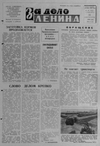 Пролетарии всех стран , со единяйтесь! ОРГАН . СЕВЕРНОГО РАЙКОМА КПСС И Р АЙОННОГ О СОВЕТА Н А РО Д Н Ы Х Д Е ПУ Т А Т ОВ Н ОВ О СИ Б И Р С К О Й ОБЛАСТИ ф, ____' _____________ Выходит по вторникам, четвергам и с у б б о т а м . Г а з е т а о сн о в ан а 20_июля 1935 года № 100 (5 5 4 0 ) С У К В О Т А 20 А В Г У С Т А 1983 года Цена 2 коп. ЗАГОТОВКА КОРМОВ ПРОДОЛЖАЕТСЯ Н а р я д у с у б о р к о й з ер н о вых в к о л х о з а х р ай о н а п р о д о л ж а е т с я з а г о т о в к а ко рмов д л я о бщ ес т венного ж и в о т н о в о д с т в а . В б о ль шинстве х о зяй ств сохранены зв ен ь я , з а н я т ы е ск ир д о в ан ием сена. Возм ожн о сти нынешнего т р а в о с т о я п о зво л яю т з а п а с т и д о с тато ч н о е ко личество г рубого к о р - ^ ^ П о оперативным д ан ны м об щ а я п р и б а в к а см етанного се на по р ай о н у з а последнюю нед елю с о с т а в и л а 14642 ц ентнера. О т р ад ны е р езу л ь таты и отдельно .по к о л х о з а м . В «Восходе» , наприм ер , •в скирды у л о ж ен о 22406 ц ен тнеров. А по п лан у п р е д п о л а г а л о с ь иметь во с ем н а д ц а т ь ты сяч. Х оро шо п о р а б о т а л о зв ен о Н и к о л а я А лек сандровича П е т р о в а . В дни , к о гд а погода б л а г о п р и я т с т в о в а л а , м е х ан из а то ры постоянно п е р е вы п о лн я ли з а д а н и я . Пе рвым выполнил план з а г о т о в ки се на к о л х о з имени1 М. Горького. А сейчас на его счету у ж е 21120 центнеров это го к о р ма, что на 3120 -ц ен т н е р о в больше зап л ан и р о в а н н о г о . Д о с т а т о ч н о е количе ство се на з а п а с л и на зи м о в к у полеводы из « З а в е т о в Ильича», гд е на л у г а х р а б о т а л и три м е х ан изи р о в ан ны х зв ен а И. П. Кочерешко, Г. Е. Н о в и к о в а и С. А. И в а н о в а . П о л о ж и т е л ь н о м ож но о тме тить и д ругие к олхозы . Но среди д в е н а д ц а т и х о з я й с т в ес ть д в а , что не то р о п я т с я с з а г о т о в к о й сена. Это « Б о р ь б а з а мир» и имени К- Марк са. Помимо сена полеводы р ай о н а с т р е м я т с я з а п а с т и н а стойловый период больше с е н а ж а . Он о б л а д а е т неоспоримыми п итательными качествами . И снова ср еди п е р вых к о л х о з «Восход». З д е с ь уло" ж;ено на х р ан ен и е 500 тонн (сена- жной массы. Кроме него з а г о т о в к а это го к орм а в е д е т с я еще в трех к о л х о з а х : имени К. М а р кса, « З а в е т ы Ильича» , имени К а линина. С к а ж д ы м годом в рай оне увели чи ва етс я число а г р е г а т о в по, приготовлению в и там и нн о -тр а вян - ной муки. Сейчас действуют четыре АВМ-0,65. З а к а н ч и в а е т с я с т р о и т е льс тво аг р е г а т а еше в одном х о з я й ств е — имени К- М а р к с а Вскоре он б у де т опробован В действии А пока лучший п о к а з а т е л ь в к о л хозе «П а м я т ь Л енина » . З д е с ь звено м е х ан из а то р о в отправило на с к л а д более 205 тонн п и т а т е льной муки. Ритмично р а б о т а е т а г р е г а т в к о л х о з е «П у ть к коммунизму», где з а г о т о в л е н о око ло 200 тонн продукции. В е сомый в к л а д в корм овую б а з у внесло зв ено, з а н я т о е на п р о и з водс тве витам и нн о -тра вяной м у ки в кол х о з е «Восход». П о л е в о ды с т р е м я т с я обеспечить полноценный рацион колхозным г у р там. Н а п о ля х р а б о т а ю т зв ен ь я по з а к л а д к е силоса. Особенно б о г атый у р о ж а й подсолнечника и к у к у р у зы у р о д и л с я в ко л х о з е имени М. Горького. У р ож ай но с ть с г е к т а р а зд е с ь с о с т а в л я е т более 400 центнеров. П о э том у ме хан и з аторы з а к ан ч и в аю т у к л а д к у в бурты четвер то й тысячи тонн зеленой массы. ^ ^ / V A A / V V V V N A A / V N A A / V V V V V V N . A / V v / y A / ' . / V V N ' I Выполнение j Продоволь
