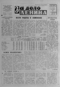ОРГАН СЕВЕРНОГО РАЙКОМА КПСС И РАЙОННОГО СОВЕТА НАРОДНЫХ ДЕПУТАТОВ НОВОСИБИРСКОЙ ОБЛАСТИ Выходит по вторникам, четвергам и субботам. Пролетарии всех стран, с о е диняйтесь! i l U / I I P Газета о с нована 20 июля 1935 года № 1 I 7 ( 5 5 5 7 ) Ч Е Т В Е Р Г 29 С Е Н Т Я Б Р Я 1983 года Цена 2 коп. С е л ь с к о х о з я й ст в е н н о е о б о з р е н и е ВЕСТИ РАБОТЫ В КОМПЛЕКСЕ % борка у р о ж а я в э т ом г о д у нера в среднем. Но з де сь еще «П а м я т ь Ленина», где все вни- года. План вспашки зяби выведется в сл ож ных погодных на корню ст ои т 232 гектара си - условиях . Одн ако в август е лосных. Ос тавшийся подсолнечимелась в о з м ож н о с т ь уб рать ник положило. и больше и с лучшим ка чеством. убирать значительно труднее. Да теперь е г о приступить к о б м о л о т у овса. Х о р о ш о организовали у б о р к у и потерь б у д е т больше. В эти п о гож и е дни надо направить максимум усилий на имени X X I I съ езда КПСС, име- лосных в к олхозе «Заветы Иль- -!1арыпку семян пшеницы и овс а. ....... . . . г __ ____________ «тгочч т * г , с „ „ „ „ „ яс с е й ч а с силосных культур кол хоз е Х у ж е всех идет у б о р к а с и ни Калинина, «Б о р ь б а за мир» где все силосные убрали зам ор озк ов . И ,£лдет хорошим, ств ах получена неплохая у р о жайнос ть . Так, например. в _ . ича», где ск ошено вс е г о 46 д о процентов уб ороч ной площади. .м° * ность во всех х озяй с тв ах качество силоса тогда как по району силосные В этих х о з я й - убраны с 79 процентов у б о р о ч - ,3™ ^ ___в а __вс ех ной площади. Зерновые культуры на 26 сен мание уд елено этой главной ра- полнен по рай ону в сего на 30 ноте, кот ора я позволила уж е процентов. С о всей о т в е т с т в е н но стью о т н о с я т ся к эт ой р а б о т е механизаторы кол хоз а имени X X I I съ езда КПСС, где зябь поднята на 893 гектарах — 64 процента к плану. в колхозе имени К. М аркса — 774 гек- п редоставляется воз - иметь собственные семена, по- тт аовр а ' к пчлт ао ну с . о с т а в и л о 59' процен Но в кол хоз е «Н аш а Родина » зерносушилках надо установить режим сушки зерна, как семенного. При о д - все е1Це не приступали к осен - ном просушивании влажность ней пахоте. Непонятно , на что колхозе имени X X I I съ е зд а тябр я по району обмолочены КПСС со б р а н о с к а ж д о г о гек - всего на 42 процентах к у б о - “ рна нельзя дове сти д о нор- “ 1п^ “ З ители х озяи с т - тара массы, с о С к и ж д ш U 1СК- п а та и у и ц с ш а л г. Vии- ........... н„ . лПлт|„з ли р тч ? по 203 центнера зеленой рочной площади. В настоящ ее мальн°и , т о есть д о 16 17 про- в к олхозе «Б о р ь б а за время в валках лежит зерновых нентов. П о э т о м у придется проМИр » ’— по 185, в к олхозе име- 3800 гектаров. В большинстве пускать зерно через сушилку - _ . П О О Т П П П О П П п т л б т т п п п т , Н ад о поставить на вспашку зяби все пахотные тракторы , раза, чтобы иметь чтобы к 10 о ктября выполнить ни Калинина — по 151 центнеру хозяйств п ереворачивают валки два трп с гектара. Самая вы сокая у р о - для т о г о . чтобы п редотвратить качественные семена по веем по- план ее взмета. ж айность к орм овы х была в кол хоз е имени М. Г о р ь к о г о , где получено с гектара по 382 центдальнейшее прорас тание зерна и се вным кондициям, быстрее просушить валки. Пра- Медленно ведется подгот овк а вильно п о ступ аю т в кол хоз е почвы иод у р ож ай б у д ущ е г о А. З АЙЦЕВ , главный агроном сельхозуправления. С ВО Д К А НА 26 СЕНТЯБРЯ ЗЕ РНОВЫ Е К о л х о з ы у б о р о ч ная п л о - о (U 3 о 1 о я 0) вал. с б о р эК £ S ща 1ь з е - о о О центы. О о Си О р н о я ы х 5 