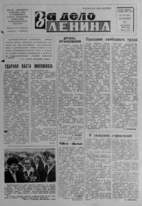 Пролетарии всех стран, соединяйтесь! ОРГАН С ЕВ Е РН ОГ О РАЙКОМА КПСС И РАЙОННОГО СОВЕТА НА Р О ДНЫХ ДЕПУТАТОВ НОВОС ИБ ИР С КО Й ОБЛАСТИ Выходит по вторникам, четвергам и с уб б о т ам. Газета основана 20 июля 1935 г ода Мй 125 (5 5 6 5 ] В Т О Р Н И К 18 ОКТЯБРЯ 1983 года Цена 2 коп. «КОММУНИСТИЧЕСКИЕ СУББОТНИКИ» ИМЕННО ПОТОМУ ИМЕЮТ Г РОМ АДНОЕ ИСТОРИЧЕСКОЕ З Н А ЧЕНИЕ, ЧТО ОНИ ПОКАЗЫВАЮТ НАМ СО ЗН АТЕЛЬ НЫЙ И Д О Б Р О В О Л Ь Н Ы Й п о ч и н р а б о ч и х В Р А З ВИТИИ П Р О И З В О Д И Т Е Л Ь Н О С Т И ТРУДА , В ПЕРЕХО Д Е К НОВОЙ ТРУДОВОЙ Д И С Ц И П Л И Н Е В ТВОРЧЕСТВЕ СОЦИАЛИСТИЧЕСКИХ УСЛОВИЙ ХОЗЯЙСТВА и ж и з н и . В. И. Л Е Н И Н . «В Е Л И К И Й ПОЧИН». УДАРНАЯ ВАХТА МИЛЛИОНОВ Праздник свободного т р у д а П р и м е р о м т в о р ч е с к о г о , с о з н а т е л ь н о г о п о д х о д а к д е л у с т а л и д л я с о в е т с к и х л ю д е Ц у д а р н ы е в а х т ы в ч е с т ь 25 - л е - т и я д в и ж е н и я з а к о м м у н и с т и ч е с к о е о т н о ш е н и е к т р у д у . В е р н о с т ь и д е а л а м э т о г о д в и ж е н и я п р о д е м о н с т р и р о в а л и 15 о к т я б р я н а с в о и х р а б о ч и х м е с т а х т р у ж е н и к и п р о м ы ш л е н н ы х и с е л ь с к о х о з я й с т в е н н ы х п р е д п р и я т и й . п р е д с т а в и т е л и и н т е л л и г е н ц и и . П е р е д о в о й о п ы т , э н т у з и а з м , в ы с о к а я д и с ц и п л и н а — т а к о в ы б ы л и о т л и ч и т е л ь н ы е ч е р т ы п р а з д н и к а т р у д а . С р е д с т в а , з а р а б о т а н н ы е на с у б б о т н и к е , б у д у т п е р е ч и с л е н ы в ф о н д с т р о и т е л ь с т в а п а м я т н и ка П о б е д ы и М у з е я В е л и к о й О т е ч е с т в е н н о й в о й н ы с з а л о м С л а в ы н а П о к л о н н о й г о р е в М о с к в е . Д а н ь ю в е л и к о м у п о д в и г у с о в е т с к о г о н а р о д а , з а щ и т и в ш е г о ц е н о ю м и л л и о н о в ж и з н ей м и р н о е н е б о п л а н е т ы , с т а н е т э т о т м е м о р и а л . Т р у д о в а я М о с к в а р а в н я л а с ь на и н и ц и а т о р о в с у б б о т н и к а — к о л л е к т и в л о к о м о т и в н о г о д е п о М о с к в а - С о р т и р о в о ч н а я . В п а м я т н у ю о с е н ь 19 58 г о д а з д е с ь з а р о д и л о с ь п а т р и о т и ч е с к о е д в и ж е н и е з а к о м м у н и с т и ч е с к о е о т н о ш е н и е к т р у д у . В с е с о ю з н о й ш к о л о й п е р е д о в о г о о п ы т а по п р а в у н а з ы в а ю т д е п о . О с о б е н но у б е д и т е л ь н о э т о д о к а з а л и > !^ ^ £ з н о д о р о ж н и к и в д е н ь с у б - И т о г т р у д о в о й в а х т ы — п е р е в ы п о л н е н ы в ы с о к и е о б я з а т е л ь с т в а , д о п о л н и т е л ь н о д о с т а в л е н о 360 т ы с я ч т о н н г р у з о в . В с е п о е з д а п р о в е д е н ы на с э к о н о м л е н н о й э л е к т р о э н е р г и и и д и з е л ь н о м т о п л и в е , о т р е м о н т и р о в а н ы 11 л о к о м о т и в о в и ж е л е з н о д о р о ж н ы й к р а н . С о т н и т ы с я ч м о с к в и ч е й у ч а с т в о в а л и на с у б б о т н и к е . Э ф ф е к т и в н о й р а б о т о й о з н а м е н о в а л и е г о к о л л е к т и в ы п р е д п р и я т и й и с т р о е к с т о л и ц ы . О т л и ч н ы х т р у д о в ы х п о к а з а т е л е й д о б и л и с ь у ч а с т н и к и с у б б о т н и к а в д р у г и х г о р о д а х с т р а н ы , с е л ь с к и е т р у ж е н и к и . У д а р н ы е в а х т ы п р а з д н и к а т р у д а п о з в о л я т л е н и н г р а д с к и м к о р а б е л а м с Б а л т и й с к о г о с у д о с т р о и т е л ь н о г о з а в о д а и м е н и С . О р д ж о н и к и д з е с ч е с т ь ю в ы п о л н и т ь о б я з а т е л ь с т в о : с п у с т и т ь на в о д у а т о м н ы й л е д о к о л « Р о с с и я » к 66-й г о д о в щ и н е В е л и к о г о О к т я б р я . Б о л е е ч е м на 125 м и л л и о н о в р у б л е й б ы л о в ы п у щ е н о п р о м ы ш л е н н о й п р о д у к ц и и в д е н ь с у б б о