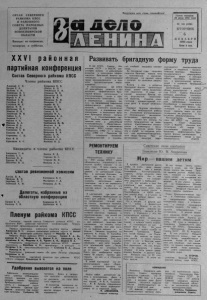 О Р Г А Н С Е В Е Р Н О Г О Р А Й К О М А К П С С И Р А Й О Н Н О Г О С О В Е Т А Н А Р О Д Н Ы Х Д Е П У Т А Т О В Н О В О С И Б И Р С К О Й О Б Л А С Т И В ы х о д и т по в т о р н и к а м , ч е т в е р г а м и с у б б о т а м . Пролетарии всех стран, соединяйтесь! Аленский Г. Е. • Кудряшов В. В. Багров Е. А. Левчук В. П. Балкина 3 . И. Лещинский Н. И. Боровская В. Т. Лукаш ов М. В. Бузюргина М. В. Лукьянчук В. И. Вертей А. А. Луш ов В. Н. Воробьев А. И. Михайлец В. М. Голубев а 3 . Н. Н а за р о в а Т. И. Голубцов М. Е. Окунев М. Е. Д р а г а н В. И. Останин Н. Ф. Д р еб ен ц о в Ф. Е. Рыльский М. М. З ави дов Н. И. Савчиц А. Н. Закамский И. И. Симонов Ф. А. Зайцев А. А. Симбирцев В. А. Зырянов Г. Г. Степанов В. А. Иванов А. А. Терехин Н. В. Иванова А . А. Трибуналов М. П, Ипатьев Н. А. Ф ед улов А. В. Ковшар М. Д . Хмелев Я. В. Коновалов А. И. Циплаков Н. И. Копытов И. И. Цирукина Е. А. Кормачева Г. И. Чуркин А. М. Шаурко В. А. Косс В. Я. Южанина 0 . П. Краюшкин А. С. Якимова Н. Д . Кандидаты в члены райкома Аверьянов Т. Ф. Блинова Г. С. Васильев П. К. Груенко В. М. Д ергачева В. Л. Дьячук Я. Д . Сорокин М. С. Старков М. Ф. Яковлев А. А. Состав ревизионной комиссии Дигина П. Я. Ефимова В. Н. З а р у б и н а Н. Т. Зеленский А. Ф. Капориков В. Е. Маляревич Г. Д . Останина Л . И. Д е л е г а т ы , избранные на о б л а с т н у ю конф ер е н цию Багров Е. А. Балкина 3 . И. Боровская В. Т. Д р е б е н ц о в Ф. Е. Пленум райкома КПСС С о с т о я л с я п е р в ы й п л е н у м С е в е р н о г о р а й к о м а К П С С , и з б р а н н о г о X X V I р а й о н н о й п а р т и й н о й к о н ф е р е н ц и е й . П л е н у м р а с с м о т р е л о р г а н и з а ц и о н н ы й в о п р о с . П е р в ы м с е к р е т а р е м р а й о н н о г о к о м и т е т а п а р т и и и з б р а н а Боровская В. Т.г в т о р ы м с е к р е т а р е м р а й к о м а п а р т и и — Михай- лец В. М., с е к р е т а р е м р а й к о м а п а р т и и — Федулов А. В. И з б р а н о б ю р о р а й к о м а К П С С в с о с т а в е : Багров Е. А., Боровская В. Т.( Воробьев А. И., Драган В. И., Коновалов А . И., Михайлец, В, М.( Федулов А. В., Чуркин А . М„ Шаурко В. А. У т в е р ж д е н ы з а в е д у ю щ и е о т д е л а м и р а й к о м а К П С С : о р г а н и з а ц и о н н ы м — Воробьев A t И., п р о п а г а н д ы и а г и т а ц и и — Назарова Т. И., с е л ь с к о х о з я й с т в е н н ы м — Степанов В. А., о б щ и м — Копытов И. И. Р е д а к т о р о м р а й о н н о й г а з е т ы « З а д е л о Л е н и н а » у т в е р ж д е н Коновалов А. И. П р е д с е д а т е л е м п а р т и й н о й к о м и с с и и п р и р а й к о м е К П С С п л е н у м у т в е р д и л Лукьянчука В. И. i l C / I U Газета основана 20 июля 1935 г о д а № 146 (5586) В Т О Р Н И К ' 6 Д Е К А Б Р Я 1 9 8 3 г о д а Цена 2 коп. У д о б р е н и я вывозятся на поля Работники эксплуатационн о го участка « О б л в о д х о з » о с е н ь ю вывезли на поля * ° " х° з а имени Калинина К уйбыш евского района, шесть с половиной тысяч тонн органики Ц е н н о е удо" б р е н и е вносится п о д с и л о с ные культуры. У д о б р е н о 180 г е к т а р о в . В с е г о в ч е т в е р т о м к в а р т а л е з а п л а н и р о в а но д о с т а в и т ь на п о л я 8 0 0 0 т о н н п е р е г н о я , В х о з я й с т в е п о л н о с т ь ю г о т о в ы к р а б о т е с н е г о п а х и и д р у г и е о р у д и я д л я с н е г о з а д е р ж а н и я . • X X V I р а й о н н а я партийная конференция Состав Северного райкома КПСС Члены райкома КПСС Развивать бригадную ф орм у т р у д а в Ц К К П С С , С о в е т е М и н и с т р о в С С С Р и В Ц С П С р а с с м о т р е н в о п р о с о д а л ь н е й ш е м р а з в и т и и и п о в ы ш е н и и э ф ф е к т и в н о с т и б р и г а д н о й ф о р м ы о р г а н и з а ц и и и с т и м у л и р о в а н и я т р у д а п р о м ы ш л е н н о с т 