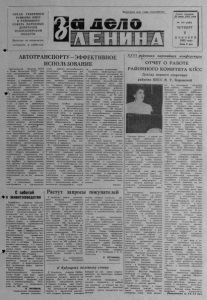 О Р Г А Н С Е В Е Р Н О Г О Р А Й К О М А КПСС И Р А Й О Н Н О Г О СОВЕТА Н А Р О Д Н Ы Х Д Е П У Т А Т О В Н О В О С И Б И Р С К О Й О Б Л А С Т И Выходит по вторникам, четвергам и субботам. Газета основана 20 июля 1935 г о д а № 147 | 5 5 8 7 | ЧЕТВЕРГ 8 Д Е К А Б Р Я 1983 года Цена 2 коп. А В ТО Т Р А Н С П О Р ТУ— ЭФ Ф ЕКТИВНОЕ И С П О Л Ь ЗО В А Н И Е Ц е н т р а л ь н ы й К о м и т е т К П С С и С о в е т М и н и с т р о в С С С Р п р и н я л и п о с т а н о в л е н и е « О п о в ы ш е н и и э ф ф е к т и в н о с т и и с п о л ь з о в а н и я а в т о т р а н с п о р т н ы х с р е д с т в в н а р о д н о м х о з я й с т в е , у с и л е н и и б о р ь б ы с п р и п и с к а м и п р и п е р е в о з к а х г р у з о в а в т о м о б и л ь н ы м т р а н с п о р т о м и о б е с п е ч е н и и с о х р а н н о с т и г о р ю ч е - с м а з о ч н ы х м а т е р и а л о в » . W В п о с т а н о в л е н и и о т м е ч а е т с я , ч т о з а п о с л е д н и е г о д ы а в т о м о б и л ь н ы й т р а н с п о р т п о л у ч и л ш и р о к о е р а з в и т и е и П р е в р а т и л с я в о д н о и з в а ж н е й ш и х з в е н ь е в е д и н о й т р а н с п о р т н о й с и с т е м ы с т р а н ы . З н а ч и т е л ь н о у к р е п и л а с ь е г о м а т е р и а л ь н о - т е х н и ч е с к а я б а з а , п а р к с и с т е м а т и ч е с к и п о п о л н я е т с я с о в р е м е н н ы м и а в т о т р а н с п о р т н ы м и с р е д с т в а м и , п о в ы ш а ю т с я т е х н и ч е с к и й у р о в е н ь а в т о м о б и л е й , к а ч е с т в е н н ы е и э к с п л у а т а ц и о н н ы е п о к а з а т е л и и х р а б о т ы В м е с т е с т е м в и с п о л ь з о в а н и и п о д в и ж н о г о с о с т а в а г р у з о в о г о а в т о м о б и л ь н о г о т р а н с п о р та и м е ю т м е с т о с е р ь е з н ы е н е - д о р т а т к и . В с е е щ е н е п о л у ч и л и д о л ж н о г о р а з в и т и я э к о н о м и ч е с к и в ы г о д н ы е ц е н т р а л и з о в а н н ы е п е р е в о з к и г р у з о в , н е о б е с п е ч и в а ю т с я п р е и м у щ е с т в е н н о е р а з в и т и е а в т о м о б и л ь н о г о т р а н с п о р т а о б щ е г о п о л ь з о в а н и я и к о н ц е н т р а ц и я п о д в и ж н о г о с о с т а в а в к р у п н ы х а в т о х о з я й с т в а х . П о - п р е ж н е м у в е л и к и п о р о ж н и е п р о б е г и и с в е р х н о р м а т и в н ы е п р о с т о и а в т о м о б и л е й п о д п о г р у з к о й и в ы г р у з к о й , д о п у с к а ю т с я м н о г о ч и с л е н н ы е с л у ч а и н е р а ц и о н а л ь н о й э к с п л у а т а ц и и а в т о т р а н с п о р т н ы х с р е д с т в , и с п о л ь з о в а н и е и х н е п о н а з н а ч е н и ю . Н е п р и н и м а е т с я д о л ж н ы х м е р к п о в ы ш е н и ю к а ч е с т в а п л а н и р о в а н и я и о р г а н и з а ц и и С заботой -♦ о животноводстве Т р у ж е н и к и к о л х о з а « П а м я т ь Л е н и н а » п р и л а г а ю т м н о г о у с и л и й к т о м у , ч т о б ы с ч е с т ь ю в ы п о л н и т ь д о в е д е н н ы е з а д а н и я и в з я т ы е с о ц и а л и с т и ч е с к и е о б я з а т е л ь с т в а к а к н а э т о т г о д , т а к и н а п я т и л е т к у . Э т о м у с п о с о б с т в у ю т и н о в ы е ф о р м ы о р г а н и з а ц и и т р у д а , и д е й с т в е н н о е с о ц и а л и с т и ч е с к о е с о р е в н о в а н и е , и в н е д р е н и е м е х а н и з а ц и и . В п о с л е д н и е г о д ы н а ш е х о з я й с т в о и д е т с п е р е в ы п о л н е н и е м п л а н а п о п р о и з в о д с т в у ж и в о т н о в о д ч е с к о й п р о д у к ц и и . П л а н т е к у щ е г о г о д а п о п р о д а ж е г о с у д а р с т в у м о л о к а в ы п о л н е н е щ е в о к т я б р е . Д о с р о ч н о д о л ж н ы р а с ч и т а т ь с я и с м я с о м . М ы и м е е м н е о б х о д и м о е к о л и - ч е с т в о к о р о в , е с т ь н е т е л и д л я о б н о в л е н и я с т а д а , д о с т а т о ч н о 1, и м о л о д н я к а д л я о т к о р м а Н а д о й н ы х г у р т а х р а б о т н и к и о б ъ е д и н и л и с ь в з в е н ь я . С е 