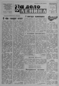 Пролетарии всех стран, соединяйтесь! ОРГАН СЕВЕРНОГО РАЙКОМА КПСС И РАЙОННОГО СОВЕТА НАРОДНЫХ ДЕПУТАТОВ НОВОСИБИРСКОЙ ОБЛАСТИ Выходит по вторникам, четвергам и субботам. Г азета основана 20 июля 19?5 года N» 149 (55891 ВТОРНИК 13 Д Е К А Б Р Я 1983 года Ц ена 2 коп. Сельскохозяйственное обозрение О чём говорят итоги А н а л и з и р у я итоги работы за 11 м е с я це в , отр адн о отметить, что ряд коллективов у ж е с п ра вились с годовыми планами по п р о д а ж е ж и в о т н о в о д ч е с к о й п р о д у к ц и и Так, когусозы « П а мять Л енина» , имени М . Горьк о г о и «Восход» завершили з а дания по сд а че м о л о к а и'*мяса, «Новая ж и з н ь » и «Борьба за мир» выполнили план п р о д а ж и м о л ок а , а «Заветы Ильича» и «Путь к к о м м у н и з м у » — мяса. В ц е л о м хозяйства района план п р о д а ж и м о л о к а выполнили на 94 п р о це н та , мяса — на 91,2. П р о в и з о р н ы е расчеты показывают, что за г о д * будет у с п еш н о з а в е р ш е н о только з а дание по сд а че мяса. М о л о к а колхозы н е д о д а д у т 3,5— 4 тысячи ц е н тн е р ов . П р и этом по 1100— 1200 цен тн ер ов з а д о л ж а ют колхозы «Заветы Ильича», «Н аша Родина», им ени Кали нина, им ени К . М а р к с а . Н е к о торые хозяйства не справятся с: планом п р о д а ж и м я са г о с у дарству, хотя в ц е л о м по р а й ону он, к а к у ж е говорилось, б у д е т выполнен. О с новной причин ой невыполнения заданий по с д аче м о л ок а является с н и ж е н и е п р о д у к т и в ности д о й н о г о стада в с р е д нем по райо ну на 80 к и л о г р а м мов по сравнению с данным п е р и о д о м п р о ш л о г о го д а . Больш о е с н и ж е н и е надоев д оп у с тили колхозы им. К. М а р к с а — на 300 к и л о гр а м м о в , «Путь к к о м м у н и з м у » — на 249, « V I I съезд Советов» — на 180, «Борьба за м и р » — на 137 к и л о г р а м мов. Если бы продуктивность ко р ов за 11 м еся цев оставалась на у р о в н е п р о ш л о г о год а , план был бы з а в е р ш е н к 22— 25 д е к а б р я . На с н и ж е н и е удоев , в основном , повлияла слабая к о р м о - обеспечен но сть з и м о в ки 1982— 1983 год а , н е ра с п о ря д и те л ь ность, халатн ое о т н о ш е н и е к делу н ек о т о ры х р уко в о д и т е л е й , специалистов во в р ем я п е р е вода ско та на п ас тб ищ н о е , а п отом и стойловое с о д е р ж а ние. Так, только за апрель, май, август и сентябрь по райо ну н е д о п о л у ч е н о от к а ж дой коровы в с р е д н е м по 108 ки л о г р а м м о в м о л о к а по сравнению с тем , что мы получали в эти периоды п р о ш л о го года. Часть п р о д у к ц и и т е р я е т ся из - за н а р у ш е н и я т р у д о вой и прои з во д ствен н ой д ис циплины на ф ерм ах . Н е р е д к о , н а п р и м е р , группы к о р о в оста вались н е до е н ны м и в колхозах «Заветы Ильича», «Восход», «Н аш а Родина». За ист екш ий п е р и о д п р о д у к тивность м о л о д н я к а к р у п н о г о р о г а т о г о скота т а к ж е с н и ж е н а . По р а й о н у н е д о п о л у ч е н о 870 ц е н тн е р ов привеса. И эт ом у есть причины , В большинств е хозяйств о т к о р м у животных не уд еля ется д о л ж н о г о внимания. Д а ж е т е колхозы, г д е есть все условия, и м ею т н из кий ср едн есуто ч ны й привес м е н ь ш е , ч е м в с р е д н е м по ра йо ну . К ним относятся «Путь к к о м м у н и з м у » , имени М . Г о р ь к о г о , «Память Л е н и н а » , им ени X X I I съезда К П С С . На с е г о д н я район не и м е е т планово го поголовья к р у п н о р о га то го скота, п от ом у что п а д е ж жи вотных все е щ е остается большим . Л у ч ш е й сохранности животных - - 97,4 п р о ц е н т а — добился к о л х о з «Память Л е н и на». Но и