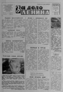 ОРГАН СЕВ ЕРНОГО РАЙКОМА- КПСС И РАЙОННОГО СОВЕТА НАРОДНЫХ ДЕПУТАТОВ НОВОСИБИРСКОЙ ОБЛАСТИ Выходит по вторникам, четвергам и субботам. Названа представителем К а к у ж е и з в е с т н о , У к а з о м П р е з и д и у м а В е р х о в н о г о С о в е т а С С С Р о б р а з о в а н ы и з б и р а т е л ь н ы е о к р у г а по в ы б о р а м в С о в е т С о ю з а и С о в е т Н а ц и о н а л ь н о с т е й В е р х о в н о г о С о в е т а С С С Р . Н а ш С е в е р н ы й р а й о н в к л ю ч е н в с о с т а в Б а р а б и н с к о г о и з б и р а т е л ь н о г о о к р у г а ( ц е н т р — г . Б а р а б и н с к ) . Н а ч а л о с ь в ы д в и ж е н и е п р е д с т а в и т е л е й в с о с т а в о к р у ж н ы х t и з б и р а т е л ь н ы х к о м и с с и й по в ы б о р а м в В е р х о в н ы й С о в е т С С С Р о д и н н а д ц а т о г о с о з ы в а . С о с т о я л о с ь о б щ е е с о б р а н и е у ч и т е л е й , на к о т о р о м с в о и м п р е д с т а в и т е л е м в о к р у ж н о й и з б и р а т е л ь н о й к о м и с с и и б ы л а н а з в а н а у ч и т е л ь н и ц а С е в е р н о й с р е д н е й ш к о л ы Мария Кондр а т ь е в н а Сидорова. О н а и м е е т в ы с ш е е о б р а з о в а н и е , ч л е н К П С С . НАДЁЖНЫЙ ЗАПАС М е х а н и з а т о р ы к о л х о з а « З а в е т ы Ильича '» р е ш и л и в с е с е н о и с о л о м у в ы в е з т и к ф е р м а м д о 15 я н в а р я . И з 24 т ы с я ч ц е н т н е р о в с е н а о с т а л о с ь д о с т а в и т ь в о с е м ь т ы с я ч . Н а в ы в о з к е з а н я т ы т р а к т о р и с т ы И. П . К о ч е р е ш к о , Н . И. Н о в и к о в , Н. Я . К о ч е р е ш к о , В. Ф . У р с а е в , С . А . И в а н о в , Л . Ф . С и м а е в , В. С ы п к о и В. Д ю р о в . Им ж е п р е д с т о и т е щ е в ы в е з т и в о с е м ь т ы с я ч ц е н т н е р о в с о л о м ы . С л о в о м , м е х а н и з а т о р ы с о з д а л и н а д е ж н ы й з а п а с к о р м о в д л я о б щ е с т в е н н о г о ж и в о т н о в о д с т в а . П. ПЕТРОВ. ' З аб оты механизаторов В з и м н и й п е р и о д п о в ы ш а ю т с в о ю к в а л и ф и к а ц и ю не т о л ь к о ж и в о т н о в о д ы , но и т р у ж е н и к и п о л е й — м е х а н и з а т о р ы . П р и с т у п и л и к з а н я т и я м и в к о л х о з е « П а м я т ь Л е н и н а » . У ч е б у п р о в о д я т в е д у щ и е с п е ц и а л и с т ы х о з я й с т в а . Т р а к т о р и с т ы , к о м б а й н е р ы п р о х о д я т т е о р е т и ч е с к у ю п о д г о т о в к у , а в м а с т е р с к о й з н а н и я у к р е п л я ю т п р а к т и к о й , т а к к а к з д е с ь п р о д о л ж а е т с я р е м о н т т е х н и к и . О н и с т р е м я т с я п о д г о т о в и т ь т р а к т о р а , и н в е н т а р ь в к р а т ч а й ш и е с р о к и . Т е х н и к а н е о б х о д и м а не т о л ь к о в п е р и о д п о с е в н о й , но и с е й ч а с , на в ы в о з к е с е н а , д е л о в о й д р е в е с и н ы . Не з а т и х а ю т р а б о т ы и на п о л я х к о л х о з а . Их о б о г а щ а ю т о р г а н и ч е с к и м и у д о б р е н и я м и . Х о р о ш и м и п о м о щ н и к а м и з е м л е д е л ь ц а м с т а л и м е х а н и з а т о р ы из П М К « М е л н о в о д с т р о й » . Им п р е д с т о и т в ы в е з т и и р а з б р о с а т ь о к о л о 20 т ы с я ч т о н н п е р е г н о я . В. ШРЕЙДЕР , г л . а г р о н о м . Благодаря новым методам Белорусская С С Р . Годовое задание по производству свинины выполнил совхоз «Южный» Гомельского района, победитель Всесоюзного соревнования за ус пешное проведение зимовки увеличение производства и закупок продуктов живот- ноьЪдства в зимний период 1982— 83 годов. До конца года коллектив хозяйства продаст государству дополнительно 250 тонн мяса. Сейчас на совхозном комплексе содержится 24 тысячи свиней. Среднесуточный привес каждого животного превысил прош логодний на 41 грамм. Успеху животноводов содействуют п е р е ход на сбалансированное нормирова