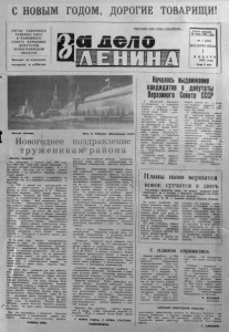 С Н О В Ы М Г О Д О М , ДОРОГИЕ ТОВАРИЩИ! ОРГАН СЕ ВЕ РН О ГО РАЙКОМА КПСС И РАЙОННОГО СОВЕТА Н А РО ДНЫ Х Д ЕПУ ТА ТОВ Н О В О СИ Б И РС КО Й ОБЛАСТИ Выходит по вторникам, четвергам и с у б б о т а м . Пролетарии всех стран, соединяйтесь! i K C / l U Красная площадь. Ф о то В. Соболева (Фотохроника Т А С С ) Новогоднее поздравление т р у ж е н и к а м ' р а й о н а Доро гие товарищи! Н а к а л е н д а р е — п е р в ы й д е н ь 1984 г о д а . Г о д 19 83 г о д с т а л е щ е о д н о й с т р а н и ц е й в л е т о п и с и и с т о р и и С о в е т с к о й с т р а н ы . И в т о ж е в р е м я д л я в с е х н а с — л ю д е й р а з н ы х п о к о л е н и й — он о с т а н е т с я н а в с е г д а ч а с т и ц е й н а ш е й ж и з н и . К а ж д ы й и з н а с м ы с л е н н о о г л я д ы в а е т с я на п р о ж и т ы й г о д и с н а д е ж д о й в с м а т р и в а е т с я в б у д у щ е е . Г о д 1983 — т р е т и й г о д о д и н н а д ц а т о й п я т и л е т к и — н о в а я с т у п е н ь в н а ш е м д в и ж е н и и в п е р е д по п у т и , у к а з а н н о м у В. И. Л е н и н ы м . В ы п о л н я я р е ш е н и я X X V I с ъ е з д а п а р т и и , п о с л е д у ю щ и х П л е ц у м о в Ц К К П С С , в к л ю ч и в Ч ш и с ь в с о ц и а л и с т и ч е с к о е с о р е в н о в а н и е за д о с т о й н у ю в с т р е ч у 66 -й г о д о в щ и н ы В е л и к о г о О к т я б р я , б о л ь ш и н с т в о к о л л е к т и в о в р а й о н а у с п е ш н о с п р а в и л и с ь с о с в о и м и п р о и з в о д с т в е н н ы м и в в е д е н и я м и . Р е а л и з о в а н о с в е р х п л а н о в о й п р о д у к ц и и на с у м м у 3 0 0 т ы с я ч р у б л е й . Н а и б о л ь ш и й в к л а д в о б щ у ю р а й о н н у ю к о п и л к у в н е с л и к о л л е к т и в ы р а ^ с е л ь х о з т е Х . н и к и , г о л о в н о г о м а с л о з а в о д а , С е в е р н о г о л е с х о з а , к и р п и ч н о г о з а в о д а , м е ж к о л х о з н о г о л е с х о з а . М н о г о с д е л а н о р а б о т н и к а м и м е д и ц и н ы , п р о с в е щ е н и я , р а б о т н и к а м и с ф е р ы о б с л у ж и в а н и я . П л а н о м е р н о р е а л и з у е т с я с о ц и а л ь н а я п р о г р а м м а , с о т н и л ю д е й с п р а в и л и н о в о с е л ь е . П о с т р о е н ы и с т р о я т с я ш к о л ы , д е т с к и е с а д ы и к л у б ы . В т е к у щ е м г о д у н а ч а л и о с у щ е с т в л я т ь с я н е к о т о р ы е м е р ы по с о в е р ш е н с т в о в а н и ю н а ш е г о х о з я й с т в о в а н и я , п о в ы ш е н и ю о р г а н и з о в а н н о с т и , у к р е п л е н и ю г о с у д а р с т в е н н о й , т р у д о в о й и п л а н о в о й д и с ц и п л и н ы . Э т о во м н о г о м с п о с о б с т в о в а л о т о м у , ч т о з а с р а в н и т е л ь но к о р о т к о е в р е м я на р я д е у ч а с т к о в у д а л о с ь п о п р а в и т ь п о л о ж е н и е д е л , п о в ы с и т ь и н и ц и а ти в у ) и о т в е т с т в е н н о с т ь к а д р о в , и«г у в е р е н н о с т ь в с в о и х с и л а х , п о д н я т ь т в о р ч е с к у ю а к т и в н о с т ь . Н е , е г к и м б ы л у ш е д ш и й г о д д л я р а б о т н и к о в с е л ь с к о г о х о з я й с т в а . Л о г о д н ы е у с л о в и я не п о з в о л и л и по о т д е л ь н ы м в и д а м п о л у ч и т ь з а п л а н и р о в а н н у ю п р о д у к ц и ю . Т е м не м е н е е , о т р а д н о с о з н а в а т ь , ч т о с и л а м п р и р о д ы б ы л а п р о т и в о п о с т а в л е н а с и л а к о л л е к т и в а , в ы д е р ж к а , н а у ч н ы й п о д х о д к в е д е н и ю с е л ь с к о х о з я й с т в е н н о г о п р о и з в о д с т в а . Э т о п о з в о л и л о к о л х о з а м р а й о н а з а г о т о в и т ь б о л ь ш е к о р м а д л я о б щ е с т в е н н о г о ж и в о т н о в о д с т в а . с д а т ь 3 0 ты с я ч ц е н т н е р о в з е р н а г о с у д а р с т в у , з а с ы п а т ь п о л н о с т ь ю с е м е н а , в ы п о л н и т ь п л а н п о п р о д а ж е м я с а . А х о з я й с т в а « П а м я т ь Л е н и н а » « в о с х о д » , и м е н и М а к с и м а Г о р 