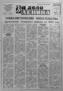 О Р Г А Н С Е В Е Р Н О Г О Р А Й К О М А К П С С И Р А Й О Н Н О Г О С О В Е Т А Н А Р О Д Н Ы Х Д Е П У Т А Т О В Н О В О С И Б И Р С К О Й О Б Л А С Т И Выходит по в торникам , четвергам и субботам. Газета основана 20 июля 1935 года № 13 (5609) ВТОРНИК 31 Я Н В А Р Я 1984 года Цена 2 коп. СОЦИАЛИСТИЧЕСКИЕ ОБЯЗАТЕЛЬСТВА тружеников Северного района на 1984 год П р е т в о р я я в ж и з н ь з а д а ч и , п о с т а в л е н н ы е X X V I с ъ е з д о м К П С С и п о с л е д у ю , щ и м и П л е н у м а м и Ц К К П С С , т р у д я щ и е с я р а й о н а п р и н и м а ю т на ч е т в е р т ы й г о д п я т и л е т к и с л е д у ю щ и е с о ц и а л и с т и ч е с к и е о б я з а т е л ь с т в а : п р о д а т ь г о с у д а р с т в у з е р н а — 86 т ы с . ц е н т н е р о в , м о л о к а — 132 ты с . ц е н т н е р о в , м я с а — 16 ты с . ц е н т н е р о в , ш е р с т и — 20 ц е н т н е р о в . Р А Й О Н Н О Е А Г Р О П Р О М Ы Ш Л Е Н Н О Е О Б Ъ ЕД И Н Е Н И Е П О Л Е В О Д С Т В О П р о д о л ж а я в н е д р е н и е з о н а л ь н о й с и с т е м ы з е м л е д е л и я , г л а в н о е в н и м а н и е у д е л и т ь э ф ф е к т и в н о с т и и с п о л ь з о в а н и я о д н о г о г е к т а р а п а ш н и , с е н о к о с н ы х у г о д и й . ' В т е к у щ е м г о д у в ы р а с т и т ь у р о ж а й з е р н о в ы х н е м е н е е 15 ц е н т н е р о в с г е к т а р а , с и л о с н ы х к у л ь т у р — п о 180, м н о г о л е т н и х т р а в на с е н о — п о 2 0 ц е н т н е р о в с г е к т а р а . Д о в е с т и в а л о в о е п р о и з в о д с т в о з е р н а д о 300 т ы с я ч ц е н т н е р о в . В ц е л я х у в е л и ч е н и я п р о и з в о д с т в а к о р м о в п р о в е с т и р е к о н с т р у к ц и ю 313 г е к т а р о в о с у ш е н н ы х з е м е л ь , к о р е н н о е у л у ч ш е н и е л у г о в и п а с т б и щ на п л о щ а д и 1100 г е к т а р о в . Д л я з а л у ж е н и я о с у ш е н н ы х и у л у ч ш е н н ы х з е м е л ь и м е т ь с е м е н н ы е у ч а с т к и м н о г о л е т н и х т р а в п л о щ а д ь ю 350 г е к т а р о в . П о д д е р ж и в а я и н и ц и а т и в у м е х а н и з а т о р о в Б о л о т н и н с к о г о и Д о в о л е н с к о г о р а й о н о в п о с в о е в р е м е н н о й п о д г о т о в к е с е л ь с к о х о з я й с т в е н н о й т е х н и к и к п о л е в ы м р а б о т а м 1984 г о д а , к о л л е к т и в ы м е х а н и з а т о р о в , и н ж е н е р н о - т е х н и ч е с к и х р а б о т н и к о в к о л х о з о в и р а й с е л ь х о з т е х н и к и о б я з у ю т с я к 15 а п р е л я з а в е р ш и т ь р е м о н т м а ш и н н о - т р а к т о р н о г о п а р к а . З а к о н ч и т ь п о д г о т о в к у к о р м о з а г о т о в и т е л ь н о й т е х н и к и и а г р е г а т о в п о п р и г о т о в л е н и ю в и т а м н н н о - т р а в я н о й м у к и к 1 м а я , у б о р о ч н о й т е х н и к и — к 1 и ю л я . П о д г о т о в и т ь н е м е н е е 60 ч е л о в е к м е х а н и з а т о р о в I и II к л а с с а . В н е с т и на п о л я 75 т ы с я ч т о н н о р г а н и ч е с к и х , 1800 т о н н м и н е р а л ь н ы х у д о б р е н и й , п о д у р о ж а й т е к у щ е г о г о д а и м е т ь с о р т о в ы е с е м е н а , а п о д у р о ж а й 1985 г о д а — 90 п р о ц е н т о в с е м я н I и I I к л а с с а . П р о в е с т и в с п а ш к у з я б и в т е к у щ е м г о д у н а п л о щ а д и 18,6 ты с . г е к т а р о в , 20 п р о ц е н т о в — в а в г у с т е . Д л я у с т о й ч и в о г о р а з в и т и я о б щ е с т в е н н о г о ж и в о т н о в о д с т в а п о с т о я н н о о б е с п е ч и в а т ь н е о б х о д и м ы м к о л и ч е с т в о м к о р м о в , н е з а в и с и м о о т п р и - р о д н о - к л и м а т и ч е с к и х у с л о в и й ; з а с ы п а т ь 98 ты с . ц е н т н е р о в з е р н о ф у р а ж а , з а г о т о в и т ь 185 ты с . ц е н т н е р о в с е н а , 7 5 0 ты с . ц е н т н е р о в с и л о с а , 90 т ы с . ц е н т н е р о в с е н а ж а , 9100 ц е н т н е р о в в и - т а м и н н о - т р а в я н о й м у к и . З а г о т о в и т ь на з и м о в к у 1984— 85 г г . в р а с ч е т е на о д 