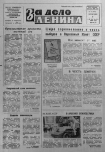 ОРГАН СЕВЕРНОГО РАЙКОМА КПСС И РАЙОННОГО СОВЕТА НАРОДНЫХ ДЕПУТАТОВ НОВОСИБИ РСКОЙ ОБЛАСТИ Выходит по вторникам, четвергам и субботам. Пролетарии всех стран, соединяйтесь! Газета основана 20 июля 1935 года № 16 (5612) ВТОРНИК 8 Ф Е В Р А Л Я 1984 г о д а Цена 2 коп. Организованно провести весенний сев С о в е т о м М и н и с т р о в СССР п р и н я т о п о с т а н о в л е н и е « О д о п о л н и т е л ь н ы х м е р а х п о п о д г о т о в к е и п р о в е д е н и ю в е с е н н и х п о л е в ы х р а б о т в 1984 г о д у » . П е р е д м и н и с т е р с т в а м и и в е д о м с т в а м и , и с п о л к о м а м и м е с т н ы х С о в е т о в н а р о д н ы х д е п у т а т о в , а г р о п р о м ы ш л е н н ы м и ' * * о б ъ е д и н е н и я м и п о с т а в л е н а з а д а ч а — о б е с п е ч и т ь , р у к о в о д с т в у я с ь р е ш е н и я м и д е к а б р ь с к о г о (1983 г. ) П л е н у м а ЦК К ПС С , у к а з а н и я м и т о в а р и щ а Ю . В. А н д р о п о в а , п р о в е д е н и е в е с е н н и х п о л е в ы х р а б о т о р г а н и з о в а н но и на в ы с о к о м а г р о т е х н и ч е с к о м у р о в н е . П о с т а н о в л е н и е м п р е д у с м о т р е н ы д о п о л н и т е л ь н ы е м е р ы к п о л н о м у о б е с п е ч е н и ю к о л х о з о в , с о в х о з о в и д р у г и х с е л ь с к о х о з я й с т в е н н ы х п р е д п р и я т и й в ы с о к о к а ч е с т в е н н ы м и с е м е н а м и и п о с а д о ч н ы м м а т е р и а л о м , с в о е в р е м е н н о м у з а в е р ш е н и ю в п о д г о т о в к е к р а б о т е м а ш и н - н о - т р а к т о р н о г о п а р к а , у к о м п л е к т о в а н и ю к а д р а м и м е х а н и з а т о р о в . Д о л ж н ы б ы т ь о с у щ е с т в л е н ы р а б о т ы п о м е л и о р а ц и и , в ы п о л н е н ы з а д а н ия п о п о с т а в к е с е л ь с к о м у х о з я й с т в у т е х н и к и , з а п а с н ы х ч а с т е й , м и н е р а л ь н ы х у д о б р е н и й , г о р ю ч е - с м а з о ч н ы х и д р у г и х м а т е р и а л о в . В к о л х о з а х , с о в х о з а х и д р у г и х с е л ь с к о х о з я й с т в е н н ы х п р е д п р и я т и х н е о б х о д и м о п р и н я т ь м е р ы по п о в ы ш е н и ю э ф ф е к т и в н о с т и и с п о л ь з о в а н и я о р о ш а е м ы х и о с у ш е н н ы х з е м е л ь , м а ш и н н о - т р а к т о р н о г о п а р к а , о р г а н и ч е с к и х и м и н е р а л ь н ы х у д о б р е н и й , х и м и ч е с к и х с р е д с т в з а щ и т ы р а с т е н и й и д р у г и х м а т е р и а л ь н ы х р е с у р с о в . Н А 1984 г о д с о х р а н е н , в в и д е и с к л ю ч е н и я , д е й с т в о в а в ш и й в п р о ш л ы е г о д ы п о р я д о к п р и з л е ч е н и я на в е с е н н и е п о л е в ы е р а б о т ы в к о л х о з ы , с о в х о з ы и д р у г и е с е л ь с к о х о з я й с т в е н н ы е п р е д п р и я т и я , и с п ы т ы в а ю щ и е н е д о с т а т о к в м е х а н и з а т о р а х , т р а к т о р и с т о в - м а ш и н и с т о в с п р о м ы ш л е н н ы х , т р а н с п о р т н ы х и д р у г и х п р е д п р и я т и й , из у ч р е ж д е н и й и о р г а н и з а ц и й . С о в е т ы М и н и с т р о в с о ю з н ы х р е с п у б л и к , у к а з а н о в п о с т а н о в л е н и и , о б я з а н ы п о в ы с и т ь т р е б о в а т е л ь н о с т ь к р у к о в о д и т е л я м м и н и с т е р с т в и в е д о м с т в р е с п у б л и к , а г р о п р о м ы ш л е н н ы х о б ъ е д и н е н и й , к о л х о з о в , с о в х о з о в и и х п е р с о н а л ь н у ю о т в е т с т в е н н о с т ь за о с у щ е с т в л е н и е м е р о п р и я т и й п о с в о е в р е м е н н о й п о д г о т о в к е и у с п е ш н о м у п р о в е д е н и ю в е с е н н е г о сева . К о м и т е т у н а р о д н о г о к о н т р о л я СССР п о р у ч е н о у с т а н о в и т ь к о н т р о л ь за в ы п о л н е н и е м з а д а н и й , п р е д у с м о т р е н н ы х п о с т а н о в л е н и е м . ( Т А С С ) Квартальный план выполнен Х озяйс тва района в ед ут п р о д а ж у мя са г о с у д а р с т в у в счет первог