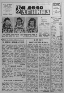 и ю л я № 24 СУББОТА 25 Ф Е В Р А Л Я 1984 года Цена 2 коп. ОРГАН С Е В Е РН О Г О РАЙКОМ А КПСС И Р АЙО ННО ГО СОВЕТА Н А РО Д Н Ы Х ДЕ П У ТА Т О В Н О В О С И Б И Р С К О Й ОБЛАСТИ Выходит оо вторникам, четвергам и с у б б о т а м . Э к и п а ж к о с м и ч е с к о г о к о р а б л я « С о ю з Т-10» (слева н а п р а в о ) к о м а н д и р к о р а б л я л е тч и к - к о см о н а в т СССР Г е р о й С о в е т с к о г о С ою з а п о л к о в н и к Л е о н и д Д е н и с о в и ч К и з и м ; б о р т и н ж е н е р В л а д им и р А л е к с е е в и ч С о л о в ь е в ; к о с монавт - ис с л е д ов а тел ь , врач, к а н д и д а т м е д и ц и н с к и х н а у к О л е г Ю р ь е в и ч А т ь к о в . Ф о т о А . П уш к а р е в а ( ф о т о х р о н и к а ТАСС) Стыковка грузового корабля 23 ф е в р а л я о с у щ е с т в л е н а а в т о м а т и ч е с к а я с т ы к о в к а г р у з о в о г о к о р а б л я « П р о г р е с с - 1 9 » с о р б и т а л ь н ы м п и л о т и р у е м ы м к о м п л е к с о м « С а л ю т - 7 » — « С о ю з Т-10», К о р а б л ь « П р о г р е с с - 1 9 » д о с т а в и л на о р б и т у т о п л и в о д л я о б ъ е д и н е н н о й д в и г а т е л ь н о й у с т а н о в к и с т а н ц и и , о б о р у д о в а н и е , а п п а р а т у р у , м а т е р и а л ы д л я п р о в е д е н и я н а у ч н ы х и с с л е д о в а н и й и о б е с п е ч е н и я ж и з н е д е я т е л ь н о с т и э к и п а ж а , а т а к ж е п о ч т у . ( Т А С С ) И С Т О К И В Ы П О Л Н Е Н И Я П Л А Н А >Вести из к о л х о з а „Память Л ен ин а“ В К Л У Б Е И З Б И Р А Т Е Л Е Й Ш и р о к о р а з в е р н у л а с ь в эти о с т а в ш и е с я д н и п о д г о т о в к а к в ы б о р а м в В е р х о в н ы й С о в е т С С С Р в В е р х - К р а с н о я р с к о м с е л ь с к о м С о в е т е . З д е с ь с о з д а н ы к л у б и з б и р а т е л е й и а г и т п у н к т , к о т о р ы е я в л я ю т с я ц е н т р а м и м а с с о в о - п о л и т и ч е с к о й р а б о т ы по м е с т у ж и т е л ь ства т р у д я щ и х с я . М н о г о л ю д н о п о в е ч е р а м в В е р х - К р а с н о я р с к о м Д о м е к у л ь т у р ы . В е г о у ю т н о м , х о р о ш о о ф о р м л е н н о м п о м е щ е н и и о т к р ы т к л у б и з б и р а т е л е й , к о т о р ы м з а в е д у е т б и б л и о т е к а р ь В. Я. Г н у т о в а . С ю д а о х о т н о п р и х о д я т ж и т е л и с е л а . О н и м о г у т п р о ч и т а т ь с в е ж и е г а з е ты и ж у р н а л ы , п о з н а к о м и т ь с я с л и т е р а т у р о й о в ы б о р а х в В е р х о в н ы й С о в е т С С С Р , п о с м о т р е т ь к и н о ф и л ь м ы . В к л у б е ч и т а ю т с я л е к ц и и , п р о в о д я т ся б е с е д ы о с о в е т с к о й и з б и р а т е л ь н о й с и с т е м е , о с о ц и а л и с т и ч е с к о й д е м о к р а т и и , о в н у т р е н н е й и в н е ш н е й п о л и т и к е н а ш е й п а р т и и . А к т и в н у ю р а б о т у в е д у т а г и т а т о р ы , к о т о р ы х т о л ь к о п о о к р у г а м н а с ч и т ы в а е т с я д в а д ц а т ь п я т ь . К р о м е т о г о , а г и т а т о р ы д е й с т в у ю т в б о л ь н и ц е , в м а с т е р с к о й , в т о р г о в о м п р е д п р и я т и и , на ф е р м а х , в ш к о л а х . Все, ч т о с д е л а н о а г и т а т о р а м и , о т м е ч а е т с я в с п е ц и а л ь н о м ж у р н а л е . Б о л ь ш у ю р а б о т у в е д е т а г и т к о л л е к т и в , к о т о р ы м р у к о в о д и т д и р е к т о р и к о л ы Н. А . С м ы к . Н а п р а в л я ю т д е я т е л ь н о с т ь а г и т п у н к т о в п а р т и й н а я о р г а н и з а ц и я и и с п о л к о м с е л ь с к о г о С о в е т а . О н и р а с с м а т р и в а ю т п л а н ы р а б о т ы а г и т к о л л е к т и в о в , п р о в е р я ю т и х в ы п о л н е н и е , п о с ы л а ю т н а и б о л е е п о д г о т о в л е н н ы х л е к т о р о в , д о к л а д ч и к о в . Р е г у л я р н о п р о в о д я т с я и н с т р у к т и в н ы е с о в е щ а н и я с а г и т а т о р а м и . У с и л и я п а р т к о м а и и с п о л к о м а - н а п р а в л е н ы на т о , ч т о б ы п р о