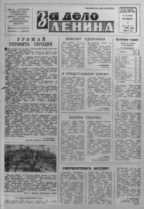 ОР ГАН С Е В Е Р НОГ О Р АЙК ОМА КПСС И Р АЙОННОГ О СОВЕТА НА Р О Д НЫХ ДЕ ПУ Т А Т ОВ НОВ ОС ИБ И Р С К О Й ОБЛАСТИ Выходит по вторникам, четвергам и субботам. Газета основана 20 июля I93S года № 26 (5622) Ч Е Т В Е Р Г 1 М А Р Т А 1984 г о д а Цена 2 кап. У Р О Ж А И ГОТОВИТЬ СЕГОДНЯ Щ * Не так далек уже тот день, когда полеводы района начнут важ- г , ю кампанию — весенний сев. Судьба будущего урожая будет зависеть не только от сроков и качества полевых работ, но и в равной мере от качества высеянных семян. Настоящую заботу о будущем урожае проявили в колхозе имени К. Маркса, где агрономом Т. Т. Гнутов. Здесь засыпаны семена яровых зерновых в полной потребности. Все они признаны кондиционными. Например, 7S0 центнеров пшеницы — первого класса. Это — 30 процентов засыпанного. 48,4 процента семян этой культуры — второго, а остальные — третьего класса. Хорошие семена засыпаны в колхозе «Путь к коммунизму». Главный агроном хозяйства М. Д. Ковшар и агроном - семеновод Г. Н. Акатьев позаботились о том, чтобы все 3240 центнеров семян соответствовали норме второго класса. В колхозе имени Калинина засыпанные семена признаны лишь третьим классом по примеси сорняков, но доводить их до более высокой кондиции главный агроном хозяйства А. Н. Панарин, видимо, и не собирается. В остальных хозяйствах есть семена и некондиционные по всхожести. Исправить положение тут можно лишь тем, что низковсхожие семена сдать на обмен. Мало уделяется внимания подготовке семян в колхозе «Восх о д » . Отсутствие контроля за качеством сортировки привело к тому, что 1200 центнеров пшеницы, имея первоклассную всхожесть, не очищены от семян других культур, а из - за этого аттестована лишь третьим классом. Партия овса 2640 центнеров очищена неравномерно: наряду с чистыми контрольными есть и такие, где сорняков насчитывается до 133 штук на килограмм, что в десятки раз превышает допустимую норму. А ведь всхожесть — 91 процент! Это — единственная партия семян в районе некондиционная по сорнякам. В течение пяти месяцев восходовцы собирались приступить к очистке семян, но дальше слов дело не идет. Хуже того, при хранении допустили порчу этих семян. Кладовщик Мищенко не заглянула в семенной склад до приезда работников Гос- семинспекции. Порча была обнаружена, но 750 центнеров добротных семян успели потерять всхожесть, и теперь их необходимо обменять. Что же помешало колхозу «Восход» своевременно, с хорошим качеством подготовить семена! Необходимая техника для этого есть, времени было достаточно. Самая серьезная помеха — равнодушие теперь уже бывшего агронома, бригадиров, председателя колхоза к судьбе урожая 1984 года. И' самое главное — слабый контроль со стороны правления колхоза за работой агрономической службы, кладовщиков. Получить урожай не менее 15 центнеров с гектара, продать государству 86 тысяч центнеров зерна — такие обязательства приняты тружениками района на текущий год. Но чтобы добиться намеченного, надо провести посев только семенами первого и второго класса. А для этого нужно в оставшиеся зимние дни закончить подработку семян, довести их до высших посевных кондиций. Л. НЕСТЕРОВА, начальник районной ГоссемиНспекции. Пермская область. На 310 тысяч рублей выпустит в текущем году запасных частей к сельскохозяйственным машинам коллектив производственного объединения «Пермсельхозремонт». Это на 25 тысяч б