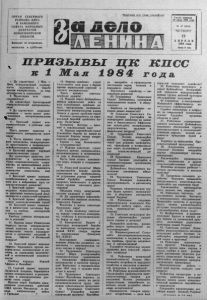 О Р Г А Н С Е В Е Р Н О Г О Р А Й К О М А К П С С И Р А Й О Н Н О Г О С О В Е Т А Н А Р О Д Н Ы Х Д Е П У Т А Т О В Н О В О С И Б И Р С К О Й О Б Л А С Т И Вы ход и т по вторникам, четвергам и субботам. Пролетарии всех стран, соединяйтесь! Газета основана 20 июля 1935 года N5 47 15643) ЧЕТВЕРГ 1 9 А П Р Е Л Я 1984 года Цена 2 коп. 1 Д а здравствует 1 М а я — День межд ун ар о дн о й солидар- ности т р у д ящ и х с я в борьбе против империализма, за мир, дем о кр а тию и социализм! 2. П ролетарии всех стран, соединяйтесь! Д а здравствует п р ол е та р ский1 социали стический интернациона- лизм! 3- Д а здравствует марксизм- ленинизм — вечно ж и в о е рево- « "юци о нн о е интернациональное чение! 4. Б р а т с к и й привет к о м мунистическим и рабочим п а р ти ям ! П у с ть крепнет единство и сплоченность комм уни с то в всего мира! 5. П у с ть крепнет союз м и р о вого социализма, м е ж д у н а р о д н о го проле та р иа та и н а ционально - освободительного д в и ж е н и я ! 6- Б р а т с к и й п ривет народам соци а ли с тиче ски х с т р а н ! Д а здравствует единство, с о т рудничество и сплоченность стран соци а ли с тиче ско го с о д р у жества , и х непоколебимая р е ш и мость у к р е п л я т ь и з а щ и щ а т ь завоевания социализма, мир на земле! 7- Б р а т с к и й п р ивет народам, освободившимся от ко л о н и а л ь ного и г а и и зб р авш им п у т ь социа л и с ти ч еско го р а з в и т и я ! 8- Б р а т с к и й привет народам, ведущим м уж е с т в е н н ую борьбу за упрочение н а ци он а л ь но й независимости и социальны й прогресс ! 9. Б р а т с к и й п ривет рабочему классу к а п и т а л и с т и ч е с к и х с т р а н ! 10. Б ра тс к и й привет т о м я щ и м ся в ф а ш и с тс к и х з а с те н к ах бор цам за свободу, д е м о к р а т ию и социали зм ! Свободу у зникам им п е р и а л и з ма и ре акц ии ! 11. Народы м ира ! Решительно боритесь п ротив и м п е р и а л и с т и ческой агр ессии и насил ия , за л и к в и д а ц ию оча гов н а п р я ж е н ности и кр и зи сны х с и т у а ц и й в Азии , Африке и Л а т и н с к о й Америке ! 12. Б р а т с к и й привет народам Аф рики , борющимся п р от ив им периализма, кол он и ал и зм а и р а сизма, за укрепление п о ли тичес кой и эконом ической независимости ! Свободу народам Ю ж н о й Аф р и к и и Н амибии ! 13. Горячий привет народам Л а т и н с к о й А м е р и к и , борющимся п р от ив империализма и ре акц ии , за мир и демократическое ра з витие своих стр а н ! Народы мир а ! Т р ебуй те п р е к ращения а гр е ссивны х дей ствий С Ш А против Н и к а р а г у а и в ы вода а м е р и к а н с к и х в о й ск с Гренады ! * Ц К 9 8 4 К П С С г о д а М а я 1 14. Народы а р а б с к и х с тр а н ! [ Сплачивайте свои р яды в борьбе против израильской агрессии и ди к т а т а империализма! П у с ть крепнет советско- арабская д р у ж б а ! 15. Народы мира ! Добивайтесь вывода и з р а и л ь с к и х войск со всех захваченны х а р а б с к и х земель, прекращения им периалистического вмешательства в д е л а Л и в а н а и д р у г и х а р а б с к и х с тр а н ! Крепите солидарность со с п р а ведливой борьбой а р аб с к о го на рода Палестины ! Б л и ж н е м у В о с т о к у — пр оч ный и справедливый м ир ! 16. Народы европейских с тр а н ! Усиливайте борьбу за вывод из Западной Европы н о вы х америк а н с к и х я дерных р акет ! Европе — мир, безопасность и сотрудничество! 17- Народы а з и а тс к и х с тран ! Боритесь п р от ив империализма, неоколониализма и гегемонизма, за мир и безопасность! П у с ть Азия станет к о н тин е н том мира, доверия и сотрудниче ства! 18. Л ю д и всей пл ан е ты ! Ш и р е