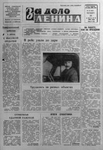 ОРГАН С Е ВЕ РН О ГО РАЙКОМА КПСС И РАЙОННОГО СОВЕТА Н А РО ДНЫ Х ДЕП У ТА Т О В Н О В О С И Б И Р С К О Й ОБЛАСТИ Выходит по вторникам, четвергам и с у б б о т а м . Пролетарии всех стран, соединяй тесь ! « ■ i i o i u Газета основана gQ июла 1935 года № 50 (5646) ЧЕТВЕРГ 26 А П Р Е Л Я 1 9 8 4 г о д а Ц е н а Я м п . Коммунистический субботник # в Рай° не с высокой О Т Д А Ч Е Й 21 а п р е л я , в 8 часов ут р а , после коротк ого митинга, все орг ан и зованн о р азош л ис ь по рабочим местам, 30 м е х а н и з а торов — в ремонтную м а с т е р скую. Всего в субботнике приняло участие 150 человек. Помимо выполнения св оих основных обязанностей, ж и вотноводы благоустроили т е р риторию фермы, убрали производственны е. и подсобные помещения. В э то т ден ь ими в о з в е д е н о 40 центнеров мо- Щ Ь .. 1,5 центнера мяса. н е о д н о к р а т н о мы у ж е говорили о наших п ередовик ах ,- и в п р азд ни к т р у д а они п р о явили инициативу по ор г ан и зации р а б о т , п о к а з а л и го су дарств енный подход к делу, И. Н. Слепцов, скотник м о л о д н я к а , ста бильно д о б и в а е т с я 600 гр ам м о в суточного привес а . Д о я р к а 3 . К. Ч е р но в а , ко в ал ер ор ден ов Л ен и на и Трудового Красного Знамени , д е п у т а т р а й с о в е т а , от з а к р е п ленной группы коров получает в сутки более д в у х цен тнеров молока, надой о т коровы с о с т а в л я е т по 11,5 ки л о гр амм а Д л я более продуктивной работы з а н я т ы е в мастерской механиза то ры, были р азд ел ены на п я т ь б р и г а д , которы е в о з . главили коммунисты Н . П . Б у г ае в , Н. И . Л ещинский , Н. В. Обухов, Н. М. П е р м я ков, Н. А. Архипов. И то г их работы : отрем онтиров ан т р а к тор К-7 00 , с обран о д в о е шир о к о з а х в а т н ы х гр а б л ей , одна тр е х б р у сн а я се нок осилк а, С высокой отдачей зд есь р аб о т а л и И. Б . Л ещинский , Н, В. Т а р а к а н о в , В , П . Хрущев, т о к а р ь Ф. Л . Хлус, с в арщ ик А. П. П о п о в , кузн ец Н . И. Вдовин. Коммунистический с у б б о т ник п о к а з а л высокую с о з н ательность наших т р у ж е ников, высокую о р г ан и з о в а н ность. Г. АЛЕНСКИЙ, се к р е т а р ь п а р т о р г ан и з ац и и к о л х о з а им, М, Горького. ^ V V W W \ A A A A A A A A A A A A \ A A A A A A A A A A A A A A A ^ ^ W W W W V W W W W V W W W W 4 A A A A A A A A A A A A A A A A A A A A A A A A A A A A A A A A A A A A A , \ I КОЛХОЗНИКИ , РАБОТНИКИ С О В Х О З О В ! АКТИВНЕЕ ВНЕДРЯЙТЕ НАУЧНО О Б О С Н О В А Н Н УЮ СИ С Т ЕМ У З ЕМ Л ЕДЕЛИ Я ! УВЕЛИЧИВАЙТЕ П РО И ЗВ О Д С Т В О З ЕР Н А , ТЕХНИЧЕСКИХ И ДРУГИХ С Е Л Ь С К О Х О З Я Й СТВЕННЫХ КУЛЬТУР! ВЕС ЕННИМ ПОЛЕВЫМ РАБОТАМ — ЧЕТКУЮ О РГАНИЗАЦИЮ И В Ы С О КО Е К А Ч Е С Т В О ) ( И з П р и з ы в о в Ц К К П С С к 1 М а я 1984 г о д а ) . ,J V W W V W W W W V \ A i V v M A A A / W W W \ A A A / W \ A A A A A / V W \ A A / W W i y W W W W W V W W ^ A A A / W \ A A A A A / W W V V \ A / \ A A A A / \ / W V W \ 5 В рейс ушли до зари • В шесть утр а еще и з а р я спит. А вот водители Северной «Тран сс ел ьхозтехники» А. Х а л я в а , В , Конышев, В , Костецкий, Л . Клещенко и еще д во е «бензо - возников» у ж е ушли в рейс: сейчас , в преддверии весенне- полевых р а б о т , в к о л х о з а х д о л ж е н быть с о з д а н н а д еж н ы й з а - пао горючего д л я т р а к т о р о в , ав том аш и н . Ушли в рейс и несколько с а м о с ва ло в , б ортовы х ав томашин: в Куйбышеве и Б а р а б и н с к е н ем а л о грузов , которых ж д у т на сельск их новос тройк ах . Д в а д ц а т ь восемь автомобилей, вернувшихся накануне с убботни ка из дальн его и тр удного рейса , с утр а н аправились на р а з г р у з ку по д еревн ям . В коммунистическом субботни ке принимал участие весь во дительский сос т а в . Один из участников п р а зд н и к а 
