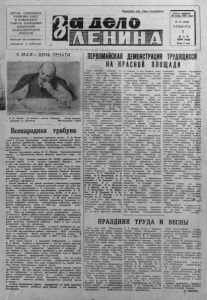 О Р Г А Н С Е В Е Р Н О Г О Р А Й К О М А К П С С И Р А Й О Н Н О Г О С О В Е Т А Н А Р О Д Н Ы Х Д Е П У Т А Т О В Н О В О С И Б И Р С К О Й О Б Л А С Т И Выходит по вторникам, четвергам и субботам. Пролетарии всех стран, соединяйтесь! / Газета основана 2 0 июля 1 9 3 5 года № 54 (5650) С У Б Б О Т А 5 М А Я 1984 года Цена 2 коя. 5 М А Я - Д Е Н Ь ПЕЧАТИ Б. 14. Ленин за чтением газеты «Правда». Автор рисунка — художник П. Васильев. (Фотохроника ТАСС1 ---------------------------- 4Р Всенародная трибуна Советская печать — подлинно ленинская печать. В .И. Ленин стоял у истоков зарождения пролетарской марксистской п р е с сы в далекие девяностые годы, Владимир Ильич созд ал со ветс кую прессу, был ее заботливым наставником, определил н азн ачение газеты как коллективного пропагандиста, агитатора и организатора. Фактом постоянной заботы В. И, Ленина, Коммунистической партии о строительстве печати являются документы ряда ее съездов. В 1922 году, согласно решению ЦК РКП(б), одобренному XI съездом партии, в 10 - летнюю годовщину «Правды» день 5 мая стал отмечаться как День печати ежегодно. Велико воздействие советской печати на массы. Сила е е влияния на умы и сердца трудящихся основана на тех основополагающих принципах, которые были заложены Великим Лениным. Открытое, сознательное служение идеалам и делу коммунистического строительства, ясность политической линии, кл ас со вый подход к явлениям и фактам действительности — говорят о глубокой партийности. Газеты делаются не только штатными работниками редакции, но и широким активом. В нашей районной г аз ете «За дело Л е нина» часты выступления Г. Е , Аленского — по вопросам воспитания), социалистического соревнования, дисциплины, А . М. Чуркина — по проблемам и перспективам РАПО, В. Й. Косс — о внедрении новых форм организации и Оплаты труда. О жизни Советов нам пишут Ф . Е. Филиппов, И. Ф . Косс. Используют газету , как общественную трибуну, специалисты различных о т раслей народного хозяйства, ответственные работники райкома партии, райисполкома. Всего за 1983 год редакцией получено около 600 писем трудящихся. Из года в год совершенствуется ма стерство работников п е чати. Реже на страницах нашей газеты встречаются серость , мелкотемье Если в работу журналиста закрались равнодушие и формализм, то и от читателя нельзя ждать ничего, кроме р а в нодушия к материалу. Требовательность к публикациям со с то роны читателей значительно выросла, вырос и сам читатель, расширился круг его интересов. Раньше на библиотеки и клубы в С о в е т е приходило по н е с колько номеров областной и районной газеты и одна «Правда». То на 1984 год читателями района подписано 19154 эк земпляра газет и журналов. Вырос авторитет и районной газеты . В 1964 году тираж ее составлял 1600, в 1982 — 2440, а в 1984 — 2867 экземпляров. «Нам нужна полная и правдивая информация», — отмечал В. И. Ленин. Полнота и правдивость — это не только призывы, победные реляции и рапорты, но и серьезные размышления о наших проблемах и трудностях, недостатках и неудачах. И мы говорим о них, стараемся привлекать к ним внимание о б щественности, мобилизовать массы, отыскивать пути и средс тва решения проблем, преодоления недостатков. Изменилось отношение к критике в печати. Тем не менее мы еще встречаемся с ма ссой отписок, неправильной реакцией на выступление, когда суть дела отодвигается на задний план, идут поиски приемлемого , гладког