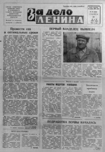 ОРГАН СЕВЕРНОГО РАЙКОМА КПСС И РАЙОННОГО СОВЕТА НАРОДНЫХ ДЕПУТАТОВ НОВОСИБИ РСКОЙ ОБЛАСТИ Пролетарии все» стран, соединяйтесь! Выходит по вторникам, четвергам и субботам. П р о в е с т и с е в в о п т и м а л ь н ы е с р о к и Нынче весна запоздала, и полевые работы начались позже, чем в минувшем году, да и весновспашки н е о б ходимо поднять 1150С гектаров, тогда как в прошлом году было всего 8200 гектаров. В 1983 году на 14 мая механизаторы вспахали 1300 гектаров пашни, а в этом — всего 232. В целях сохранения влаги было заборонено зяби 13000 гектаров из 14800. В текущем году этот агроприем проведен всего на 472 гектарах. Озимой ржи проборонено 55 гектзров, то гда как в прошлом году на данный период было проборонено 2500 гектаров и посеяно яровых зерновых 500 гектаров. Организованно приступило к весенне . полевым р а б о там б езн а р я д н о е звено Василия Алексеевича Шаурко из колхоза им. XXII съезда КП С С , где в первый день з а крыта влага на площади 200 гектаров. В колхозах «Заветы Ильича», «Борьба за мир», « V l i съезд Советов», имени К Мар кса также боронят зябь, сокращ ают до минимума потери влаги. Колхозы им. М. Горького, «Борьба за мир», «VI I съ е зд Советов» приступили к весновспашке в а г р е гате с боронами и следом боронят еще в два следа, что сокращает потери влаги, уплотняет почву. Всего один колхоз, им. М. Горького, начал боронование озимой ржи. К севу яровых культур еще не при ступило ни одно хозяйство, а задерживать е го не следует. В колхозах большой объем весновспашки и разрыв более ’ ^‘ х Дней между весновспашкой и севом допускать не следует, так как взрыхленная почва усиленно испаряет влагу, а если она б у д е т подработана , выравнена, засеяна, прикатана, то влага в основном сохранится В на стоящее время почва во всех хозяйствах на бол ьшинстве попей созр ела для закрытия влагн, вспашки и предпосевной обработки . Откладывать эту работу на поздние сроки — значит недополучить урожай Практикой установлено, что опоздание с закрытием влаги, п р е д посевной обработкой и севом на пять дней снижает урожай зерновых на 4 центнера с гектара. Поэтому надо весенне - полевые работы вести круглосуточно. Се в з е р новых необходимо закончить не позднее 25 мая, а кермовых культур к 1 июня. Надо установить строгий контроль за качеством п р е д посевной обработки и сева . Сем енны е участки сл е д у е т засеять в ранние сроки, причем семена необходимо обо греть на зерносушилках, протравить, чтобы не иметь в с е возможных заболеваний, снижающих урожайность С е а зерновых нельзя вести без одновременного внесения удобрений, особенно фосфоросодержащих, так как с е м е на ^во время прорастания и в первый период вегитации огооеНно нуждаются в ф о с ф о р е , а в последующий п е риод вегетации — в азоте . Если с семенами внесено оммофоса или нитроаммофоса 50— 60 килограммов на гектар, причем в хорошо обработанную почву с достаточным увлажнением, то можно ожидать неплохих р е з у л ь татов Нельзя забывать об уходе за посевами. Озимая рожь в ближайшие дни должна быть проборонена с тем, чтобы обеспечить лучшую аэрацию почвы, уничтожить о б р а з о вавшуюся корку и снежную плесень . При посеве силосных культур необходимо обратить о с об о е внимание на качество подработки, заделку семян, (подсолнечника не мельче 5— 6 см, кукурузы 7— 8 см( Прикатывание нужно считать обязательным агроприемом. Уход за площадям