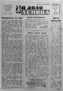 ОР ГАН С Е В Е Р Н О ГО РАЙ КОМ А КПСС И Р А Й О Н Н О Г О СОВЕТА НА РОДНЫ Х ДЕП У ТА ТОВ Н О В О С И БИ РСКО Й ОБЛАСТИ Выходит по вторникам, четвергам и с у б б о т а м . Пролетарии всех стран, соединяйтесь! Га з е т а основана 20 июля 1935 года № 62 (56591 ЧЕТВЕРГ 24 М А Я 1 9 8 4 г о д я Цена S кап. К омм уни с ты на севе , У каждой весны свои особенности. Нынешняя запоздавшая, заметно сместила, внесла коррективы в график п о левых работ. К массовым работам приступили труженики южных районов нашей области. Проведена подкормка минеральными удобрениями посевов озимых, закончено повторное боронование, идет сев зерновых культур Главное, на что ориентируются земледельцы, — о б е с п е чить получение запланированного урожая зерна, кормовых и других сельскохозяйственных культур. Основа этого урожая закладывается се годня Провести посевные р а б о ты в оптимальные сроки и с высоким качеством — во г первейшая задача хлеборобов. С е годня , как отмечал товарищ К. У Черненко на В с е союзном экономическом совещании по проблемам а гр о промышленного комплекса, п е ре д нами стоит задача — выйти на более высокие рубежи в производстве з ерновых, технических культур и обеспечении народа продуктами питания и, прежде всего, мясом, молоком, плодами и овощами. Труженики сел нашего района вплотную приступили к решению этих задач, о чем свидетельствуют сообщения с мест. Стр емясь внести в ус пешное выполнение Продовольственной программы С С С Р достойный вклад, в п е р вых рядах соревнующихся за образцовое проведение посевной идут многие коммунисты, увлекая за собой товарищей, создавая в коллективах атм осф еру дружной, творческой работы. Коммунисты колхоза им. XX II съезда КП СС стали инициаторами создания безнарядного звена на выращивании зерновых и они же задают тон в е г о работе. Новые ф о р мы организации труда наглядны, доказываются жизнью Они наиболее полно учитывают специфику сельско го т р у да, обеспечивают заметный ро с т его производительности, экономию трудовых и материальных ре сурсов . Настойчивостью членов партии В С . Безгина, А. И. Юркина, В. И, Мельникова обеспечена двухсменная работа трех тракторов К-700 на пахоте. Возглавил это звено известный в прошлом механизатор, ныне механик, коммунист В А. Шаурко. Выбор е го. как руководителя звена был сделан не случайно. В прошлую осеннюю страду он возглавлял звено на уборке силосных культур и первыми в районе оно ее закончило, не упустив сроки и при хорошем к а честве. Многое в высокопроизводительной работе звеньев зависит не только от настроя людей, но и о т отношения к ним руководителей бригад, хозяйств Опыт п ар тийно - советской работы Ю . П. Колязова, бригадира пер- Bofj комплексной бригады этого же колхоза, позволяет остро чувствовать и оперативно принимать необходимые меры для обеспечения высокопроизводительной работы. Предоставляется возможность агитколлективу повстречать- ся с тружениками,’ обеспечиваются выезды работников торговли на поля, организовано горячее .питание. Четкость и слаженность, как известно , предопределяют успех любого дела. На весеннем севе, где дорога каждая минута, высокая организованность необходима вдвойне. Поэтому коммунисты сами призваны служить примером дисциплинированности, исполнительности, обязательности и добиваться порядка во всех звеньях посевного конвейера. Механизаторы колхоз