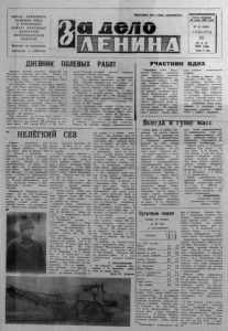 \ 26 мая 1984 года + № 63 (5 6 5 9 ) zaagazzzzzazzzaaaaaaaaaazzzz «ЗА Д Е Л О Л Е Н И Н А » ZZJCCCGCOZZZCCGCCCGGGGOCCCCCCCGOCZXZZZyOGC^ 3 В райкоме В Л К С М ДОЛГ КАЖДО ГО П р и д а в а я и с к л ю ч и т е л ь н о в а ж н о е з н а ч е н и е а к т и в н о м у у ч а с т и ю ю н о ш е й и д е в у ш е к р а й о н а в в е с е н н е - п о л е в о й к а м п а н и и 1 9 8 4 г о д а , б ю р о С е в е р н о г о р а й к о м а к о м с о м о л а п о с т а н о в и л о : к о м с о м о л ь с к и м о р г а н и з а ц и я м к о л х о з о в р а з в е р н у т ь с о ц и а л и с т и ч е с к о е с о р е в н о в а н и е с р е д и к о м с о м о л ь с к о - м о л о д е ж н ы х з в е н ь е в , м е х а н и з а т о р о в , ш о ф е р о в и в с е й м о л о д е ж и , у ч а с т в у ю щ е й в с е в е . У т в е р ж д е н ы у с л о в и я с о ц и а л и с т и ч е с к о г о с о р е в н о в а н и я , о с н о в н а я ц е л ь к о т о р ы х — д а л ь н е й ш е е р а з в и т и е т р у д о в о г о э н т у з и а з м а к о м с о м о л ь ц е в и м о л о д е ж и , м о б и л и з а ц и я м о л о д ы х т р у ж е н и к о в с е л а н а у с п е ш н о е п р о в е д е н и е с е в а - 8 4 , п о в ы ш е н и е и х п р о и з в о д и т е л ь н о с т и т р у д а , , к а ч е с т в а р а б о т Н е о б х о д и м о о б е с п е ч и т ь ш и р о к у ю г л а с н о с т ь с о р е в н о в а н и я , о п е р а т и в н о е п о д в е д е н и е и т о г о в , и н ф о р м и р о в а н и е м о л о д е ж и о т р у д о в ы х р е к о р д а х И т о г и п о д в о д и т ь п о п я т и д н е в к а м . П о б е д и т е л е м б у д е т с ч и т а т ь с я к о м с о м о л ь с к а я о р г а н и з а ц и я , д о б и в ш а я с я н а и л у ч ш и х п о к а з а т е л е й : в о р г а н и з а ц и и с о ц и а л и с т и ч е с к о г о с о р е в н о в а н и я ; в о п е р а т и в н о с т и п о д в е д е н и я и т о - г о в ; в р а б о т е ш т а б о в , п о с т о в « К П » п о к а ч е с т в е н н о м у п р о в е д е н и ю с е в а ; в п р о и з в о д и т е л ь н о с т и т р у д а м о л о д е ж и в п е р и о д п о с е в н о й к а м п а н и и ; в п о л и т и ч е с к о й , к у л ь т у р н о - м а с с о в о й р а б о т е ; в п о в ы ш е н и и т р у д о в о й д и с ц и п л и н ы с р е д и м о л о д е ж и П о и т о г а м с о ц и а л и с т и ч е с к о г о с о р е в н о в а н и я л у ч ш а я к о м с о м о л ь с к а я о р г а н и з а ц и я н а г р а ж д а е т с я " в ы м п е л о м и П о ч е т н о й г р а м о т о й р а й к о м а к о м с о м о л а , п р е д с т а в л я е т с я к н а г р а ж д е н и ю П о ч е т н о й г р а м о т о й о б л а с т н о г о к о м и т е т а В Л К С М . П о б е д и т е л я м и р а й о н н о г о с о ц и а л и с т и ч е с к о г о с о р е в н о в а н и я с р е д и к о м с о м о л ь с к о - м о л о д е ж н ы х з в е н ь е в м е х а н и з а т о р о в , ш о ф е р о в с ч и т а ю т с я у ч а с т н и к и с е в а , д о б и в ш и е с я н а и в ы с ш е й п р о и з в о д и т е л ь н о с т и т р у д а , э к о н о м и и Г С М , с о х р а н н о с т и т е х н и к и , п р и м е н я ю щ и е п е р е д о в ы е ф о р м ы о р г а н и з а ц и и т р у д а П о б е д и т е л и н а г р а ж д а ю т с я з н а к а м и Ц К В Л К С М , П о ч е т н ы м и г р а м о т а м и , з а н о с я т с я в к н и г у П о ч е т а р а й о н н о й к о м с о м о л ь с к о й о р г а н и з а ц и и , л ь г о т н ы м и т у р и с т и ч е с к и м и п у т е в к а м и в с о ц и а л и с т и ч е с к и е с т р а н ы , на п о е з д « Д р у ж б ы » . С думой об урожае В к о л х о з е « Н а ш а Р о д и н а » в е с е н н и е п о л е в ы е р а б о т ы в е д у т т р и м е х а н и з и р о в а н н ы х з в е н а О с о б о г о в н и м а н и я н ы н ч е т р е б о в а л а в е с н о в с п а ш к а , т а к к а к п о г о д а п р о ш л о й о с е н и н е п о з в о л и л а п о д н я т ь м н о г о з я б и Н е в с п а х а н н ы м и о с т а л и с ь 1360 г е к т а р о в з е м л и . П о э т о м у , д а ж е п р и н е х в а т к е м е х а н и з а т о р о в , м ы о р г а н и з о в а л и р а б о т у з в е н а в д в е с м е н ы . П о с т а в и л и в о д и т е л я м и на