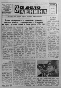 ОРГАН СЕВЕРНОГО РАЙКОМА КПСС И РАЙОННОГО СОВЕТА НАРОДНЫХ ДЕПУТАТОВ НОВОСИБ ИР СКОЙ ОБЛАСТИ Выходит по вторникам, четвергам и с у б б о т ам . Г а з е т а о с н о в а н а 20 и ю л я 1935 г о д а № 30 1567Я Ч Е Т В Е Р Г 5 и ю л я 1984 года Ц е н а 2 ш . В БЮ Р О Р А Й К О М А К П С С , И С П О Л К О М Е Р А Й С О В Е Т А , П Р Е З И Д И У М Е Р А Й К О М А П Р О Ф С О Ю З А , СОВЕТЕ Р А П О И Р А Й К О М Е В Л К С М * Условия социалистического соревнования тружеников сельского хозяйства, агропромышленного .. на период заготовки кормов и убокри урожая в 1984 году О с у щ е с т в л я я р е ш е н и я X X V I с ъ е з д а К П С С , п о с л е д у ю щ и х П л е н у м о в Ц К К П С С , т р у ж е н и к и а г р о п р о м ы ш л е н н о г о о б ъ е д и н е н и я п р и д а ю т б о л ь ш о е з н а ч е н и е у в е л и ч е н и ю п р о и з в о д с т в а з е р н а и к о р м о в д л я о б щ е с т в е н н о г о ж и в о т н о в о д с т в а . В ц е л я х у с п е ш н о г о п р о в е д е н и я у б о р к и у р о ж а я , з а г о т о в о к с е л ь с к о х о з я й с т в е н н ы х п р о д у к т о в , г р у б ы х и с о ч н ы х к о р м о в в 1 9 84 г о д у . б ю р о р а й к о м а К П С С , и с п о л к о м р а й о н н о г о С о в е т а н а р о д н ы х д е п у т а т о в , п р е з и д и у м р а й к о м а п р о ф с о ю з а р а б о т н и к о в с е л ь с к о г о х о з я й с т в а , б ю р о р а й к о м а В Л К С М о б ъ я в л я ю т у с л о в и я с о ц и а л и с т и ч е с к о г о с о р е в н о в а н и я . В с о р е в н о в а н и и у ч а с т в у ю т : — к о л х о з ы , з в е н ь я . в с е т р у ж е н и к и , в х о д я щ и е в с о с т ав п р е д п р и я т и й а г р о п р о м ы ш л е н н о г о о б ъ е д и н е н и я , з а н я т ы е на з а г о т о в к е к о р м о в и у б о р к е у р о ж а я П о б е д и т е л я м и б у д у т п р и з н а н ы : — к о л л е к т и в ы к о л х о з а , з в е на, д о б и в ш и е с я н а и в ы с ш и х р е з у л ь т а т о в п о н а к о п л е н и ю к а ч е с т в е н н ы х к о р м о в и д о с т а т к е и х к м е с т а м з и м о в к и о б щ е с т в е н н о г о с к о т а , з а в е р ш и в ш и е у б о р к у у р о ж а я 1984 г о д а в с ж а т ы е с р о к и и б е ' п о т е р ь . П р и п о д в е д е н и и и т о г о в с о ц и а л и с т и ч е с к о г о с о р е в н о в а н и я б у д у т у ч и т ы в а т ь с я р о с т у р о ж а й н о с т и з е р н о в ы х и с и л о с н ы х к у л ь т у р. в ы п о л н е н и е п л а н о в и з а д а н и й , р о с т п р о и з в о д и т е л ь н о с т и т р у д а , с н и ж е н и е с е б е с т о и м о с т и п р о д у к ц и и и е е к а ч е с т в о , т е м п р а б о т , э ф ф е к т и в н о е и с п о л ь з о в а н и е с е л ь с к о х о з я й с т в е н н о й т е х н и к и и и н в е н т а р я , в н е д р е н и е п е р е д о в ы х м е т о д о в и п р и е м о в т р у д а , с о б л ю д е н и е о х р а н ы т р у д а и т е х н и к и б е з о п а с н о с т и . п р о и з в о д с т в е н н а я д и с ц и п л и н а . С р е д и у б о р о ч н о - т р а н с п о р т н ы х з в е н ь е в п о б е д и т е л е м б у д е т п р и з н а н о з в е н о , н а м о л о т и в ш е е н е м е н е е 5 0 0 0 ц е н т н е р о в з е р н а на к а ж д о г о ч л е н а з в е н в1 100 г е к т а р о в л а ф е т а п р и р а в н и в а е т с я к н а м о л о т у 10 00 ц е н т н е р о в з е р н а . Е г о ч л е н а м п р и с в а и в а е т с я з в а н и е « Г е р о й ж а т в ы -8 4 » . З в а н и е « М а с т е р у б о р к и у р о ж а я » п р и с в а и в а е т с я ч л е н а м з в е н а . н а м о л о т и в ш и м н е м е н е е 4 0 0 0 ц е н т н е р о в з е р на н а к а ж д о г о е г о ч л е н а . П о р я д о к , п о д в е д е н и я и т о г о в с о ц и а л и с т и ч е с к о г о с о р е в н о в а н и я . И т о г и с о р е в н о в а н и я с р е д и х о з я й с т в б у д у т п о д в о д и т ь с я с о в м е с т н ы м п о с т а н о в л е н и е м с о в е т а Р А П О и п р е з и д и у м а р а й к о м а п р о ф с о ю з а р а б о т н и к о в с е л ь с к о г о х о з я й с т в а е ж е н е 