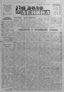 *22222222225222^^ «ЗА Д Е Л О Л Е Н И Н А » № 91 ( 5 6 8 7 ) ф 31 июля 1984 года &М5>аа омуа^шаш з а ш ш В С е в е р н о м с р е д н е м с е л ь с к о м п р о ф т е х у ч и л и щ е — ' в ы п у с к . Т р и д ц а т ь ш е с т ь м е х а н и з а т о р о в ш и р о к о г о п р о ф и л я п о к и д а ю т е г о с т е н ы . Т р и д ц а т ь ш е с т ь м о л о д ы х т р а к т о р и с т о в , ш о ф е р о в , с л е с а р е й в о л ь ю т с я в с к о р е в р а б о ч и е к о л л е к т и в ы . Э т о б у д е т ч е р е з н е с к о л ь к о д н е й , а п о к а — в у ч и л и щ е п р а ' з д н и к — п о с в я щ е н и е в х л е б о р о б ы . А к т о в ы й з а л С С П Т У п р и н и м а л г о с т е й . Н о на с е й р а з т у т го с т и о с о б ы е — р о д и т е л и этих т р и д ц а т и ш е с т и . П а п ы и м а м ы . О н и в о л н у ю т с я . Т и х и м и р а з г о в о р а м и с т р е м я т с я у н я т ь е г о , э т о в о л н е н и е . Н е х о т я т , ч т о б ы в ы п л е с н у л о с ь н а р у ж у у д и в л е н и е : к а к ? м о й с ы н у ж е в з р о с л ы й ? у ж е р а б о ч и й ч е л о в е к ? О к а з ы в а е т с я . да. У ч е н и ч е с т в о к о н ч и л о с ь . В п е р е ди н о в а я , т р у д о в а я ж и з н ь . И к а ж д о м у о т ц у . к а ж д о й м а т е ри х о ч е т с я , ч т о б ы в к а к о й - т о д е н ь , в к а к у ю . т о м и н у т у п о с ч а с т л и в и л о с ь п р о ч е с т ь « М о л н и ю » в ч е с т ь с ы н а . в р о д е то й . ч т о ч и т а л и о н и в к о р и д о р е у ч и л и щ а : « Ч е с т ь и с л а в а К о м с о м о л ь с к © - м о л о д е ж н о м у з в е ну к о л х о з а и м е н и X X I I с ъ е з да К П С С в с о с т а в е А л е к с е я Щ е р б а к о в а . Е в г е н и я Пи н т у со - ва. А л е к с а н д р а П и н т у с о в а . В а с и л и я Д о н ц о в а . В а с и л и я Ч е р - н о ш в е ц а , В и к т о р а Я к о в л е в а , П е т р а Л и з у н о в а » . С р е д и п р и г л а ш е н н ы х на т о р ж е с т в о з в е н ь е в о й к о л х о з а и м е н и X X I I с ъ е з д а К П С С , к о м м у н и с т , о п ы т н е й ш и й м е х а н и з а то р , и м е ю щ и й д в а о р д е н а Т р у д о в о й С л а в ы . В а с и л и й А л е к с е е в и ч Ш а у р к о . Е г о к о л л е к ти в у с п е ш н о п р о в е л в е с е н н и й с е в . д о б и л с я о т л и ч н о й в ы р а б о т к и , к а ч е с т в а в с е х р а б о т . О н п е р в ы й п р и в е т с т в у е т в ы п у с к н и к о в . В р у к а х v н е г о на р у ш н и к е к а р а в а й , с в я т а я с в я тых — хле б . В а с и л и й А л е к с е е в и ч . г о в о р и т о т о м , ч то т а к о е д л я в с е х нас х л е б . з е р н о . — В ы р а с т и т е вы е г о — б у д е т м о л о к о , м я с о . В с е от хл е б а . в с е о т з е р н а . И м и р б у д е т . и с ч а с т л и в а я ж и з н ь . К к а р а в а ю п о д х о д я т с т а р о с ты гр уп п С е р г е й Щ е г л о в и А н д р е й А л е ш к и н . В к у с е н хле б . П а х у ч . Ч ь е з е р н о б ы л о с м о л о т о д л я н е г о ? Ч е й пот п р о л и л с я на з е м л ю , п р е ж д е ч е м н а л и л о с ь о н о ? К т о в с п ах а л под н е г о з е м л ю ? Д о сих п о р — д р у г и е . Т е п е р ь и они б у д у т п р и ч а с т н ы к в е л и ч а й ш е м у ч у д у ж и з н и — к х л е б у . В и к т о р у В а л е н т и н о в и ч у - Де- т е ц к о м у , д и р е к т о р у у ч и л и щ а , с л о в о . О н ч и т а е т п р и к а з о б о т ч и с л е н и и у ч а щ и х с я в с в я -S зи с о к о н ч а н и е м С е в е р н о г о с р е д н е г о с е л ь с к о г о п р о ф т е х у ч и л и щ а и п е р е д а ч и их на р а б о т у в к о л х о з ы и на п р е д п р и я т и я р а й о н а . В о с е м ь р е б я т . с д а л и к в а л и ф и к а ц и о н н ы е э к з а м е н ь ? по с п е ц и а л ь н о с т и на « о т л и ч н о » . В о т их и м е н а : В а с и л и й В а н а г е л ь . Ю р и й К л е щ е н к о , В а с и л и й М а с л о в , А л е к с а н д р Т и ш е ч к о . О л е г Б а з а р о в , Ю р и й С и м а е в . А н д р е й Ч е р н о ш в е ц . А л е к с а н д р А н т и пин. П я т н а д ц а т ь — на «х о р ош о». Д л я п р е п о д а 