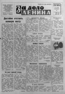 О Р Г А Н С Е В Е Р Н О Г О Р А Й К О М А К П С С И Р А Й О Н Н О Г О С О В Е Т А Н А Р О Д Н Ы Х Д Е П У Т А Т О В Н О В О С И Б И Р С К О Й О Б Л А С Т И Вы х од и т по в т о р н и к а м , четвергам и субботам. П ро л е та р и и всех стран, с о ед и н я й те с ь ! Газета основана 20 июля 1935 ХОД» № 95 156911 ЧЕТВЕРГ 9 А В Г У С Т А 1984 года Цена 2 ван. Достойно отстоять полевую вахту „ С О З Д А Н ШТАБ Д л я о п е р а т и в н о г о р у к о в о д с т в а х о д о м у б о р к и у р о ж а я и з а г о т о в к и к о р м о в с о з д а н р а й о н н ы й ш т а б , в о з г л а в и л а к о т о р ы й п е р в ы й с е к р е т а р ь р а й к о м а п а р т и и В. Т. Б о р о в с к а я . П р и ш т а б е с о з д а н ы о п е р а т и в н ы е г р у п п ы д л я р у к о в о д с т ва в с е м и з в е н ь я м и у б о р о ч н о г о к о н в е й е р а . Г р у п п у п о о р г а н и з а ц и и т р у д а и т е х н о л о г и и у б о р о ч н ы х р а б о т в о з г л а в и л п р е д с е д а т е л ь Р А П О А . М . Ч у р к и н . О т в е т с т в е н н ы м з а р а б о т у а в т о т р а н< -_ п о р т а н а з н а ч е н с е к р е т а р ь р а й к о м а К П С С А . В, Ф е д у л о в . К о н т р о л ь з а к а ч е с т в о м р а б о т и с д а ч е х л е б а г о с у д а р с т в у п о р у ч е н о в е с т и п р е д с е д а т е л ю р а й о н н о г о к о м и т е т а н а р о д н о г о к о н т р о л я Ф . А . С и м о н о в у . З а м а т е р и а л ь н о - т е х н и ч е с к о е о б е с п е ч е н и е о т в е ч а е т у п р а в л я ю щ и й р а й с е л ь х о з т е х н и к о й Г. Г. З ы р я н о в , ■ В т о р о й с е к р е т а р ь р а й к о м а п а р т и и В. М . М и х а й л е ц в о з г л а в л я е т г р у п п у п о и д е о л о г и ч е с к о м у о б е с п е ч е н и ю и с о ц и а л и с т и ч е с к о м у с о р е в н о в а н и ю . Р е к о м е н д о в а н о с о з д а т ь ш т а б ы и в к о л х о з а х . СЕЮТ Р О Ж Ь Т р и а г р е г а т а , — А л е к с а н д р а Л е г а ч е в а . И в а н а Ф о м и ш о в а , В я ч е с л а в а К а р п о в и ча — в е д у т с е в о з и м о й р ж и . И з п л а н а 4 1 0 г е к т а р о в п о с е я н о 200. К 10 а в г у с т а п л а н и р у е т с я з а в е р ш и т ь е е с е в . У с п е ш н у ю р а б о т у п о с е в н ы х т г р е г а т о в о б е с п е ч и в а ю т В л а д и м и р Х р у щ е в и Е в г е н и й Л и т я е в н а К - 7 0 0 , р а б о т а ю щ и е с о ш л е й ф о м и К П Ш - 9 , Н и к о л а й В а с и л ь е в и ч П е т у х о в и В а с и л и й Г р о м о в — н а Д Т - 7 5 с л у щ и л ь н и к а м и . А . А Н Т О Н О В , к о л х о з им. М . Го р ь к о г о. П Е Р В Ы Е У С П Е Х И В и ю н е ж и в о т н о в о д ы к о л х о з а « Н а ш а Р о д и н а » п е р е ш л и на к о л л е к т и в н ы й п о д р я д . Р а б о т а п о - н о в о м у п о к а з а л а , ч т о п о д н я л а с ь д и с ц и п л и н а . в ы ш е с т а л а о т в е т с т в е н н о с т ь . в з а и м о в ы р у ч к а . в з а и м о п о м о щ ь . В о т н е д а в н и й с л у ч а й . З а б о л е л а о д н а и з д о я р о к . П о л о ж и л и е е в б о л ь н и ц у . И о с т а л ь н ы е д о я р к и в з я л и э т у г р у п п у к о р о в . к а к п р и н я т о г о в о р и т ь , н а р а з д о й . А б ы в а л о р а н ь ш е . ' ч т о в с я г р у п п а о с т а в а л а с ь в т а к и х с л у ч а я х н е в ы д о е н н о й . П о к а п о м е т о д у п о д р я д а р а б о т а ю т в Б о л ь ш и х К у л и к а х . З д е с ь с о з д а н о д в а з в е н а . М е ж д у н и м и у ж е и д е т с о р е в н о в а н и е н е т о л ь к о з а л у ч ш у ю о р г а н и з а ц и ю т р у д а . н о и з а в ы с о к и е н а д о и . И э т о с о п е р н и ч е с т в о п р и н о с и т п е р в ы е у с п е х и . Т а к , и т о г и и ю л я в ы в е л и в п е р е д з в е н о м о л о д о й д о я р к и Н а д е ж д ы И л ь и н о й , в к о т о р о м р а б о т а ю т и з в е с т н ы е в р а й о н е м а с т е р а Н. В К о н о в а л о в а . О . Н Ш а ф и к о в а , 3 . А . А б д р а х м а н о в а , П. Т, К ы ш т ы м о в а , Н а д е ж д а К ы ш т ы м о в л и с к о т н и к и М и н и с - л а м И к с а н о в и Н и