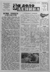 У С Т \ г о д а | 2 к о п . ОРГАН СЕВЕ РН О ГО РАЙКОМА КПСС И РАЙОННОГО СОВЕТА НАРО ДНЫ Х ДЕПУ ТА ТОВ Н О В О СИ Б И РС КО Й ОБЛАСТИ Выходит по вторникам, четвергам и субботам . П р о л е т а р и и в с е х с т р а н . ПАРТИЙНОЕ руководство комсомолом На н е д а в н е м В с е а р м е й с к о м с о в е щ а н и и с е к р е т а р е й к о м с о м о л ь с к и х о р г а н и з а ц и й т о в а р и щ К. У. Ч е р н е н к о о т м е т и л : « М а к с и м у м у б е ж д е н и я , т о в а р и щ е с к о г о в н и м а н и я , п р а к т и ч е с к о й п о м о щ и — т а к о в о о б я з а т е л ь н о е т р е б о в а н и е к с т и л ю п а р т и й н о г о р у к о в о д с т в а м о л о д е ж н о й о р г а н и з а ц и е й » . И м е н н о т а к и м п о д х о д о м п р о н и к н у т о п о с т а н о в л е н и е Ц К К П С С « О д а л ь н е й ш е м у л у ч ш е н и и п а р т и й н о г о р у к о в о д с т в а к о м с о м о л о м и п о в ы ш е н и и е г о р о л и в к о м м у н и с т и ч е с к о м в о с п и т а н и и м о л о д е ж и » , к о т о р о е д л я п а р т и й н ы х и к о м с о м о л ь с к и х о р г а н и з а ц и й с т а н о в и т с я п р о г р а м м н ы м д о к у м е н т о м . Д а л ь н е й ш е е у л у ч ш е н и е в о с п и т а н и я п о д р а с т а ю щ е г о п о к о л е н и я — в а ж н е й ш е е п а р т и й н о е , г о с у д а р с т в е н н о е и о б щ е н а р о д н о е д е л о . С л е д у е т и с х о д и т ь и з т о г о , ч т о в к о н е ч н о м с ч е т е э то в о п р о с н а д е ж н о г о о б е с п е ч е н и я б у д у щ е г о н а ш е й Р о д и н ы . Б о л ь ш о е в н и м а н и е в п о с т а н о в л е н и и у д е л е н о р о л и п е р в и ч н ы х п а р т о р г а н и з а ц и й в д е л е р а б о т ы с м о л о д е ж ь ю и, в ч а с т н о с т и , з а п и с а н о о б е с п е ч и т ь б е з у с л о в н о е в ы п о л н е н и е р е ш е н и й п а р т и и п о в о п р о с а м у с и л е н и я п а р т и й н о г о р у к о в о д с т в а к о м с о м о л о м . С ч и т а т ь г л а в н о й з а д а ч е й к о м с о м о л а , м о л о д е ж и — в п о л н у ю с и п у п о д к л ю ч а т ь с я к т о й н е л е г к о й м н о г о п л а н о в о й р а б о т е , к о т о р у ю п а р т и я о п р е д е л я е т к а к с о в е р ш е н с т в о в а н и е р а з в и т о г о с о ц и а л и з м а , в о с п и т ы в а т ь м о л о д ы х л ю д е й в д у х е б е з з а в е т н о й п р е д а н н о с т и д е л у к о м м у н и з м а , д о с т о й н ы м и г р а ж д а н а м и с о в е т с к о г о о б щ е с т в а . П а р т и й н о е р у к о в о д с т в о к о м с о м о л о м д о л ж н о н о с и т ь п л а н о м е р н ы й , с и с т е м н ы й х а р а к т е р . И м е н н о т а к , с и с т е м н о и к о м п л е к с н о , р а с с м о т р е н в п о с т а н о в л е н и и в е с ь м н о г о о б р а з н ы й к р у г а к т у а л ь н ы х п р о б л е м , с в я з а н н ы х с в о с п и т а н и е м м о л о д е ж и . И о ч е м бы н и ш л а р е ч ь — о ф о р м и р о в а н и и у м о л о д ы х м а р к с и с т - с к о - л е н и н с к о г о м и р о в о з з р е н и я и л и о б у ч а с т и и их в р е а л и з а ц и и п л а н о в х о з я й с т в е н н о г о и с о ц и а л ь н о - к у л ь т у р н о г о с т р о и т е л ь с т в а , о б о в л а д е н и и с о в р е м е н н ы м и з н а н и я м и , и л и о б о р г а н и з а ц и и д о с у г а , — в с ю д у к р а с н о й н и т ь ю п р о х о д и т м ы с л ь о н е о б х о д и м о с т и м а к с и м а л ь н о к о н к р е т н о г о , п р е д м е т н о - о п о д х о д а к э т и м п р о б л е м а м . П р а к т и к а п о к а з ы в а е т , ч т о п р о д у м а н н а я , с и с т е м а т и ч е с к а я р а б о т а с м о л о д е ж ь ю и к о м с о м о л о м д е л а е т б о л ь ш о е д е л о . Х о р о ш и е т р а д и ц и и в э т о м п л а н е в п а р т и й н ы х о р г а н и з а ц и я х к о л х о з о в и м . X X I I с ъ е з д а К П С С , « П у т ь к к о м м у н и з м у » , « З а в е т ы И л ь и ч а» , р а й п о , « С е л ь х о з т е х н и к е » и р я д е д р у г и х . З д е с ь з а м е т н а р о л ь м о л о д