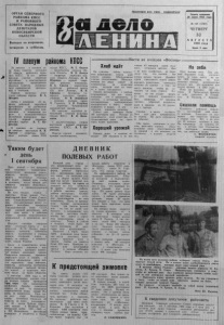 О Р Г А Н С Е В Е Р Н О Г О Р А Й К О М А К П С С И Р А Й О Н Н О Г О С О В Е Т А Н А Р О Д Н Ы Х Д Е П У Т А Т О В Н О В О С И Б И Р С К О Й О Б Л А С Т И Выходит по вторникам, четвергам и су б б о т ам . Пролетарии всех стран, соединяйтесь! года IV пленум райкома КПСС 28 авгу ста ле Д о м а Совето в в акт с о о в с о т м оял з с а я I V пленум тета К П С С . ра В йо е н г н о ого р к а о б м от и е приняли участие секретари партийных и комсомольских организаций, председатели сельских С о в е т о в , тели предприятий , ций и колхо зов . р о у р к г о а в н о и д з и а П л ен ум з а с л у ш а л отчет «чена райкома партии В. А . Шаурко. З атем с докладом д а ч а х районной пар « т Оийн з о а й организации по улучшению партийного сомолом и ру п к о о в в ыод ш с е т н в и а и к е о г м о роли в коммунистическом воспитании м о ло деж и » тупила первый секрет в а ы р с ь райкома партии В. Т. Боровск я. В прениях по д о к л а д у на пленуме выступили Н. В. Терехин — секретарь кома колхо за имени п X а X р I т I съезда К П С С , М. Е. Окунев —веты пре И д л с ь е и д ч а а т » е , ль к о л х о з а « З а Я. Д . Дьячук — секретарь хо за «П а м я т ь Л п е а н р и т н к а о » м , а ко лЛ . И. Шуршева — первый тарь райкома ком со с м е о к л р а е , П. А. Смелов — заместитель редактора районной газеты « З а дело Л е нин а» , В. Н. Ефимова — бу хгалтер верного сельского училища , проф т С е е х Н. И. Лещинский — механик колхоза имени М . Горького, 3 . Н. Голубева — директор Ч ув аш ин ской восьмилетней школы. Н а пленуме ведующий отдел вы ом сту к п у и л л ьту з р а ы обкома К П С С В. И. Велюханов. С заключительным словом выступила первый секретарь райкома К П С С В. Т. Боровская. П л ен ум принял вующее постановление с . оответстХ л е б и д ё т Н а сушилке ется напряжение: сей п ч о а ш с ел ч у в с х т л в е у б нового у р о ж а я . О б о р у д о в а н и е хорошо подготовлено. вающие его люди сле О дя б т с л у ж з и а нспраностью, за качеством з н е а р П н е и а р , в с а д я * а ч к а у о в т т о г о р о м о с а е у шд а и и р н д с а т ет в у . с на хле с б ем ом е , отправленная три дня н а за д , по к а за л а , что и в л а ж н о с т ь , и чистота, и остальные категории, предъявляемые хлебоприемным предприятием к зерну , живаются в н орме . А это выде —р гарантия хорошего качества . С е й ч а с у ж е вывезено более 100 центнеров рж и . И с х о д я из урожайности сударственный э п т л ой ан куль п т о уры с , да г ч о е зерна будет выполнен. Хороший урожай О з и м а я рожь нимает 500 гекта в ров ко и лхо и з з е н з и а х рировать агрегатами , проводить машины по одному и тому ж е месту д в а ж д ы , чтобы це тавлять на поле огреха . нечно, на это уходит но за то намолот повыш в а р е е т К м о с о я я с , . Во т , например, 47 гектаров «вятки» , убранной н апрям ую , дали в среднем ров с гектара . по 25 центнеСкошен в валки «чулпан». Этот сорт ржи предназначен на семена. Н а д н я х начинается их обмолот. О б а звена , хозе , работают со х з о д р а о н шн о ы . е в Люк о д л и понимают свою ответственность за у р ож а й и это помогает им трудиться с полной отдачей си л . . П о д уро- со гласно не ме- но если механизаторы что по лож е н о д л я в 1985 году , в сп а х а н о 140 гек- Ч е б а к о в с к о й бри гаде работают В . Т у г о н а - В . Н а з а р о в , Г . А ф а н а с ь - Оказали помощь Коллектив ц г з о ы ы ва — е о т л х о п з о а с н . т а о м янн Е з р ы а ж а м й й е е о г т н о н н д у о н ш ю й о б е ф ол о п ь н о н н м и а о о ш к щ а е ь в уборке сена. Во т и на этот раз 40 человек прибыло к н а м . М ы направили но, а 